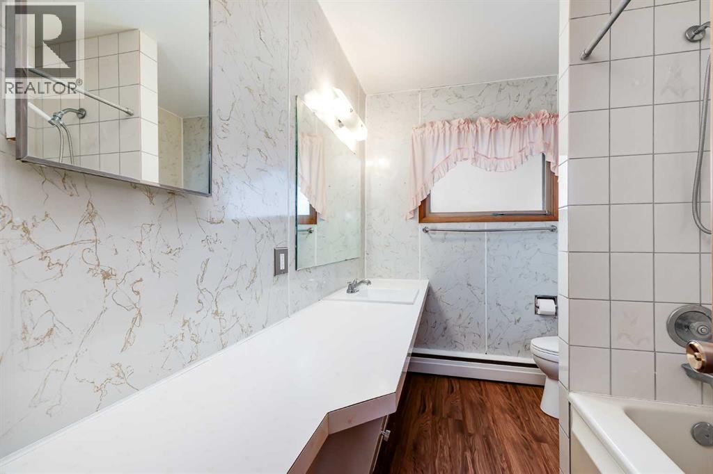 Park-front living and endless character come together in this well-maintained home offering over 2,000 sq ft above grade on a beautifully treed lot. Positioned directly across from green space with tennis courts, a playground and basketball courts, daily life here connects effortlessly to the outdoors. Original design elements introduce mid-century charm throughout, including beautiful curved architectural details and a distinctive front entry, while thoughtful updates support comfortable, move-in ready living. A spacious main level unfolds with upgraded vinyl flooring and an expansive living area where oversized picture windows frame park views and draw in natural light throughout the day. The seamless flow continues into the dining area where updated lighting enhances gatherings and direct access to the backyard encourages an easy indoor-outdoor lifestyle. A well-planned kitchen boasts abundant cabinet and drawer storage along with a functional peninsula featuring display shelving, while a window above the sink ensures clear sightlines to the yard, perfect for keeping an eye on kids or pets. Four very large bedrooms on the main level create a rare and highly functional layout for families, including a primary retreat with a walk-in closet and a private updated 2-piece ensuite, while a full 4-piece bathroom and updated lighting throughout complete the level. Additional living space continues in the basement where a fifth bedroom and two bathrooms, including an updated 4-piece with dual sinks and an oversized shower, add flexibility for guests or extended family, while the remaining areas grant excellent storage and future development potential. The outdoor living is equally inviting with a sunny southwest-facing backyard that encourages relaxation, gardening and play beneath mature trees, complemented by patio space for barbequing and unwinding. An oversized double detached garage with a new roof provides secure parking and additional storage for seasonal needs. Th is outstanding location places parks, recreation and open green space just steps from your door for a setting where both convenience and lifestyle are naturally elevated. Truly a phenomenal location for this beautiful character home that grows with you and adapts to every stage of life. (id:63190)