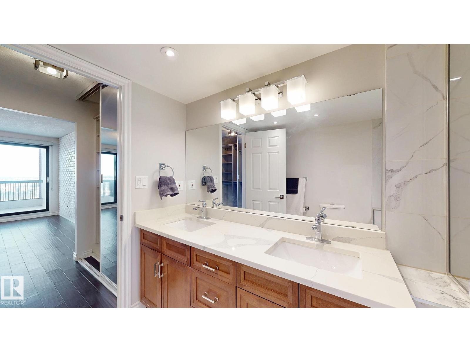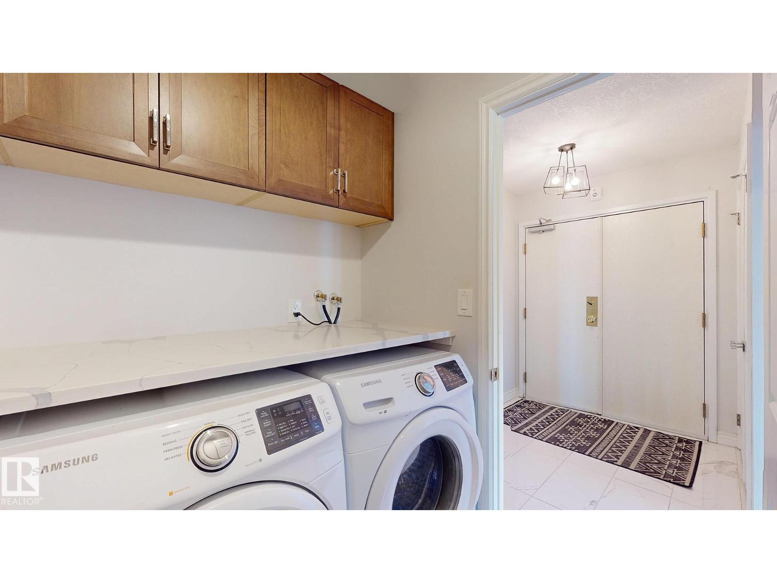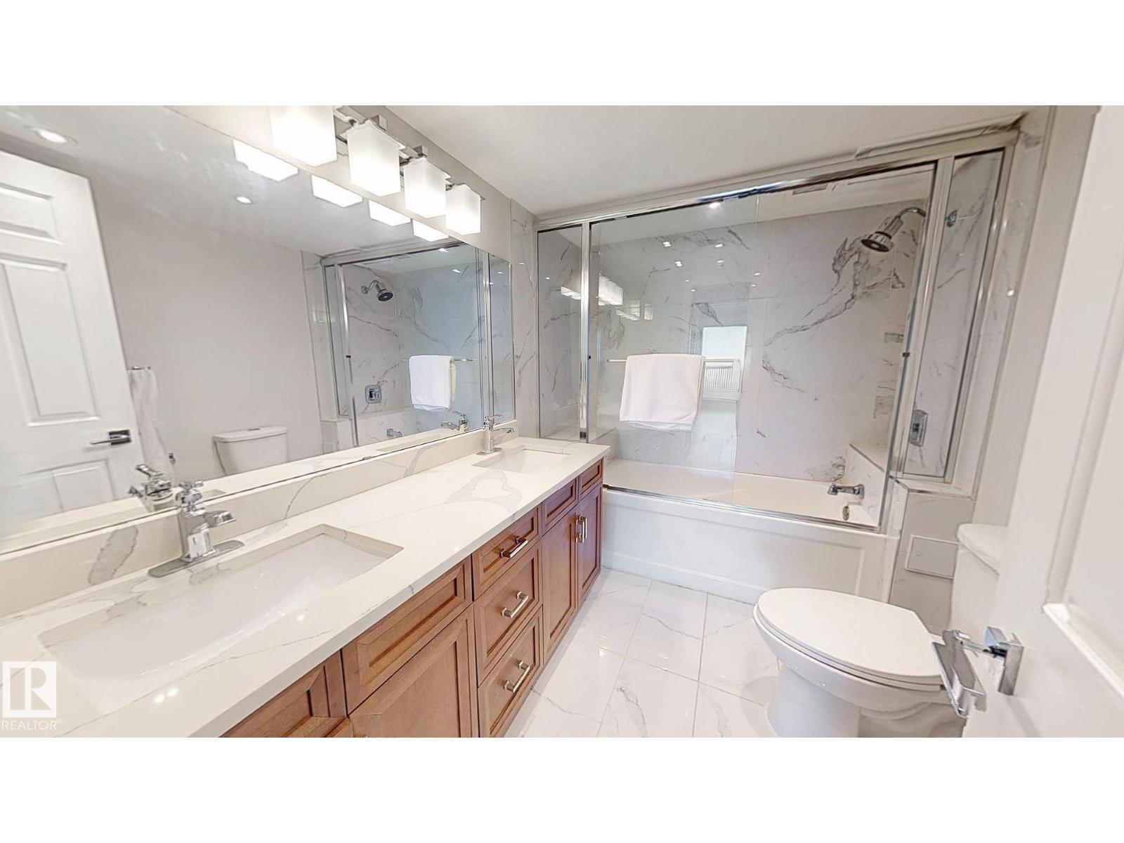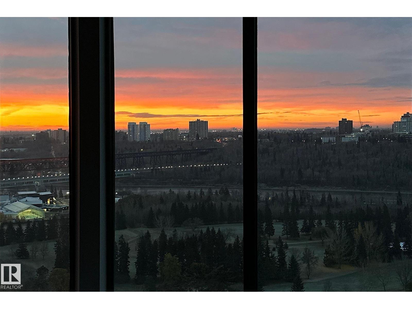 UNOBSTRUCTED SOUTH RIVER VALLEY VIEWS from this gorgeous 15th floor suite and its 2 balconies in the iconic LeMarchand Tower. Relax and enjoy the River Valley views year round. This beautiful 1,308 sq. foot condo features 2 bedrooms, 2 bathrooms & 1 underground heated parking stall. Raised dining area will accommodate your Family and friends. Your gourmet kitchen comes with stainless steel appliances, undermount sink, 2 person eating bar, quartz countertops, tile backsplash and unfettered views to the West. The sunken living room, with its engineered flooring, is the perfect place to unwind and enjoy the natural light and spectacular Riverscape. Step out to your private balcony where you can view vistas to the West, South and East. The Primary bedroom features its own private balcony, walk thru closet & luxurious 5 piece ensuite. The second bedroom is large with 2 closets, hardwood flooring & Valley views. Insuite laundry room plus a 3 piece bath. Steps from the Victoria Gold Course & River Valley trails (id:63190)