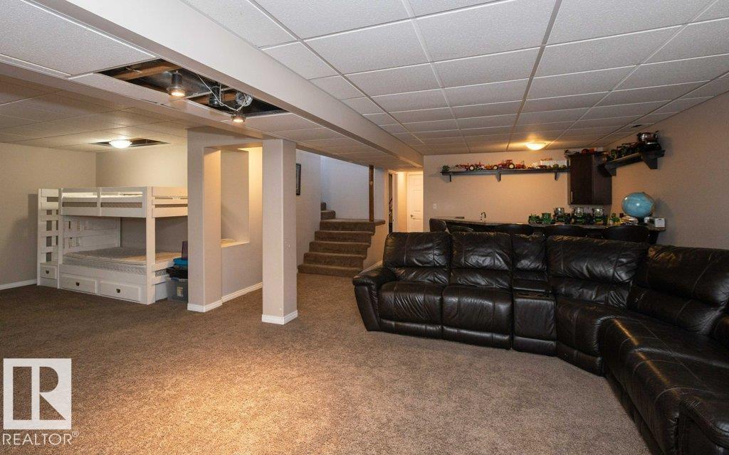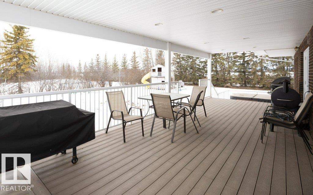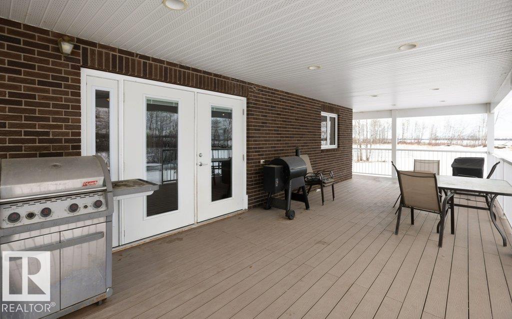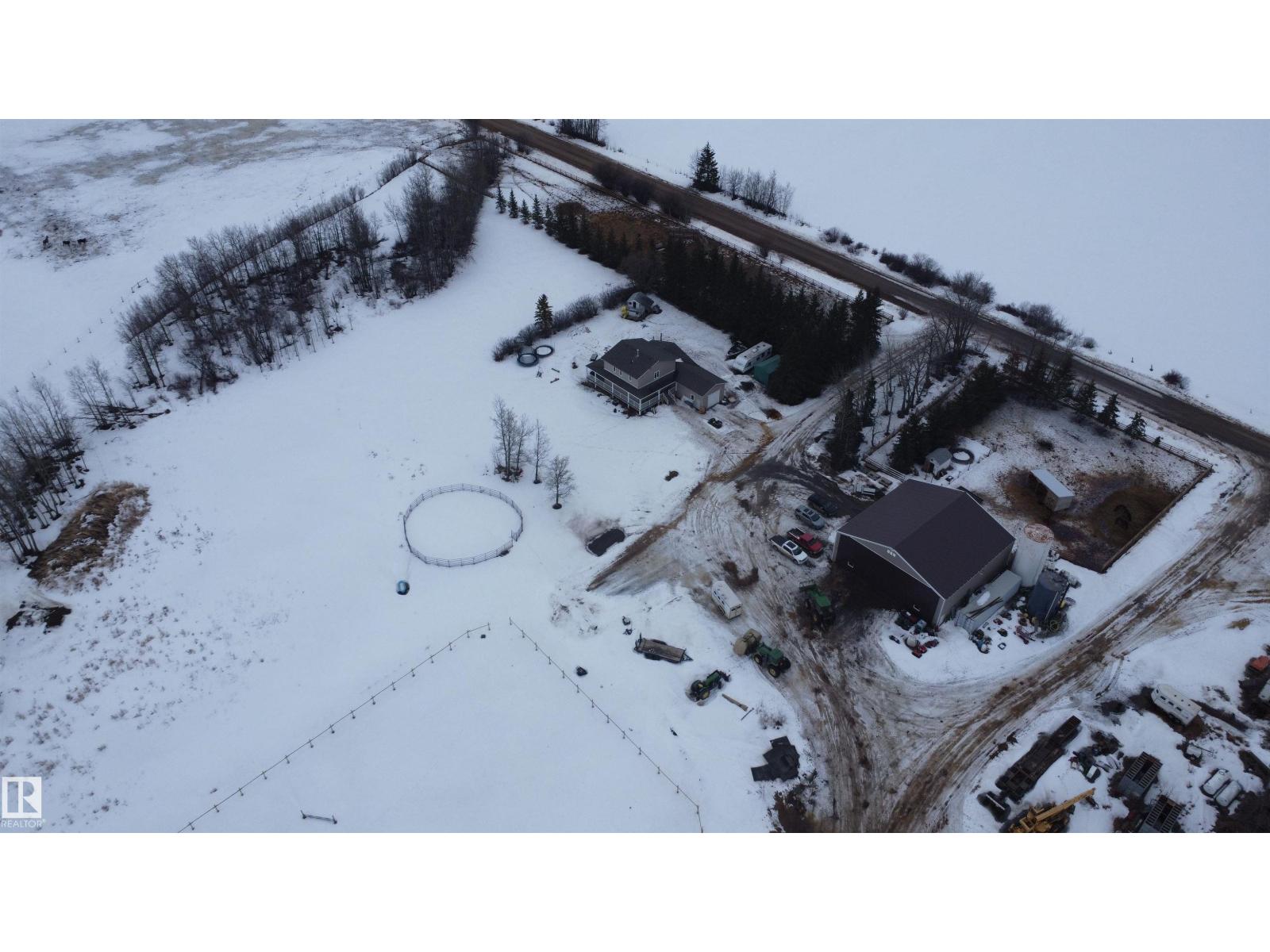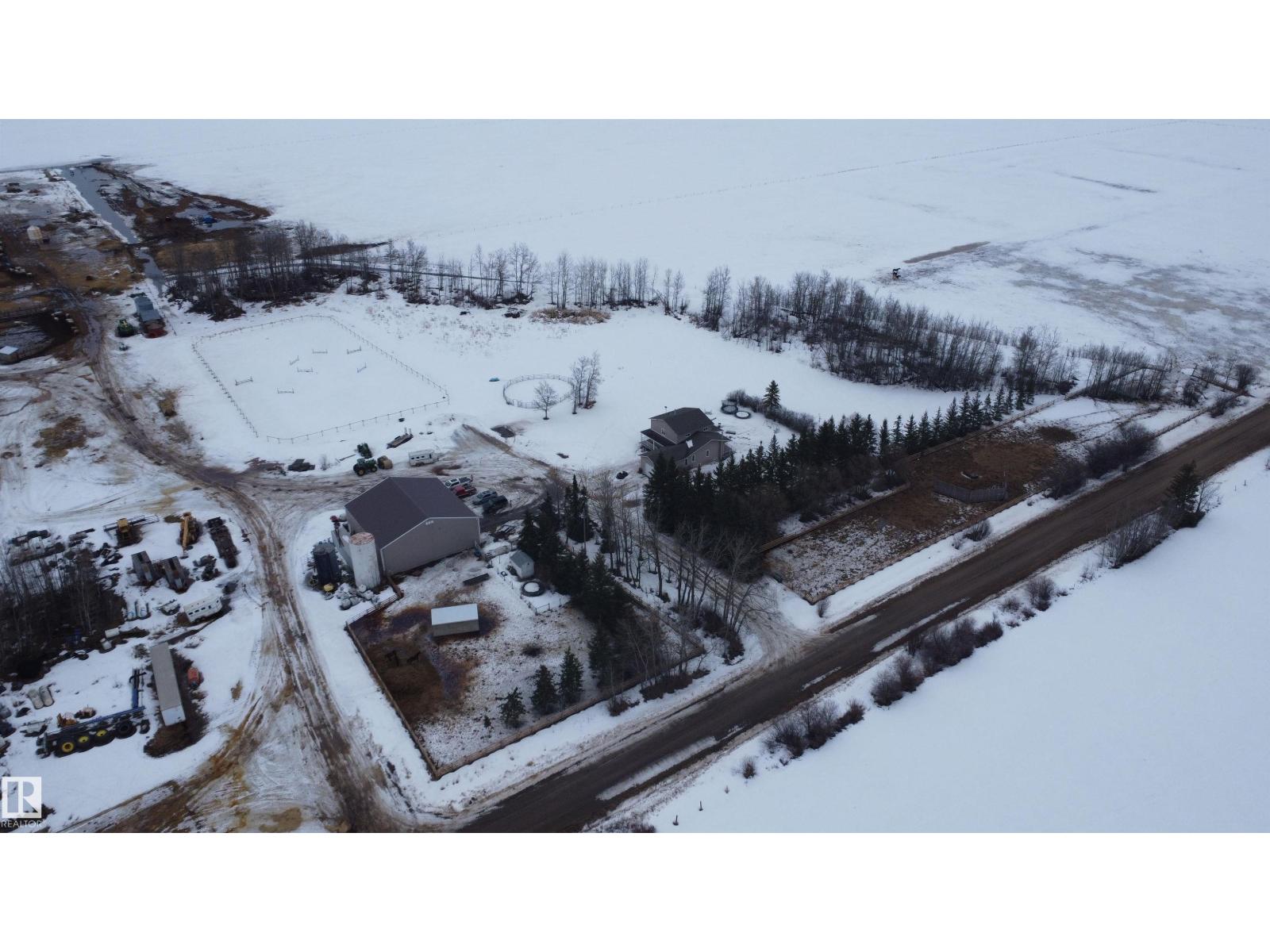 12.72-acre animal-ready acreage featuring a fully finished 2,186 sq ft two-story home with attached heated garage and impressive 60x60 shop/airplane hangar. The main floor offers a bedroom with Murphy bed, 3-pc bath, walk-in closet, laundry with wash tub and space for a deep freezer, and a large south-facing living room with hard wood floors. The massive kitchen with island and dining area open through garden doors to a wraparound composite deck with aluminum railing and hot tub (as is). Upstairs includes three bedrooms, a spacious primary suite with walk-through closet and 3-pc ensuite, plus a 3-pc bath with jetted tub. The fully finished basement features a family room with wet bar and wood stove, bedroom, 4-pc bath, mechanical room, and storage. Central A/C adds comfort. Upgraded vinyl windows. Outside boasts a new sand-based riding arena. The shop includes an overhead door, folding hangar door, office, 2-pc bath, and mezzanine. Located just one crossroad off pavement for convenient access. (id:63190)