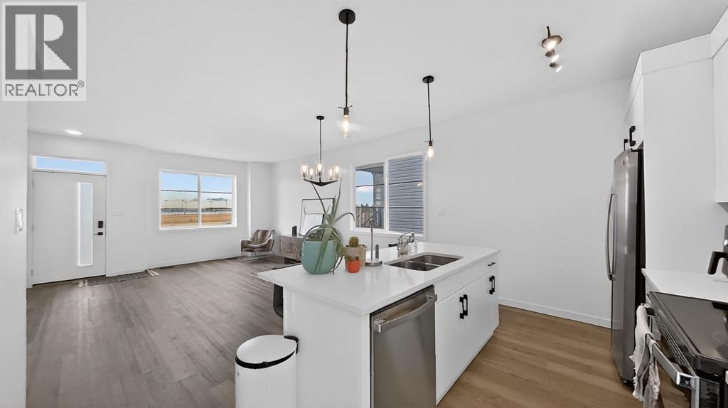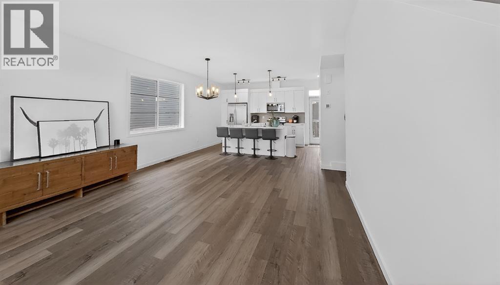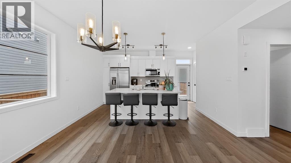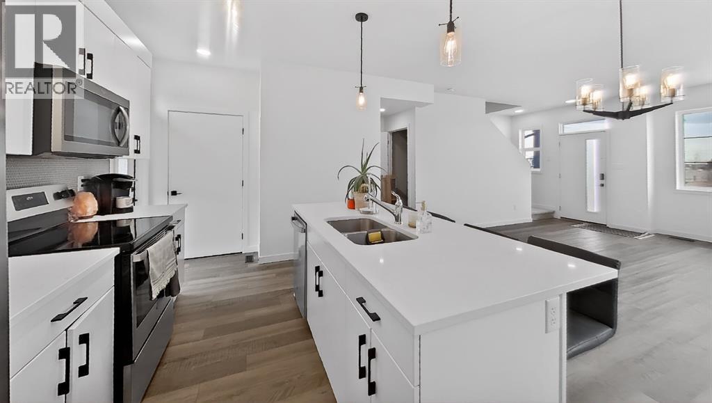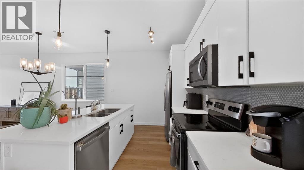 Welcome to modern living in Blackwolf — a 2021 Avonlea-built, two-storey detached home that blends contemporary finishes with practical design. Situated directly across the street from the community’s developing parks and close to schools and shopping, this bright, open-concept residence is in near new-conditions and move-in ready. Step into a great-room layout with freshly painted walls, brand-new main plank flooring and a show-stopping kitchen featuring sleek white cabinetry, quartz countertops and black iron light fixtures for a timeless, modern contrast. The main floor flows effortlessly for everyday living and entertaining.Upstairs offers a great primary suite with ensuite and walk in closet, and two more spacious bedrooms and a full bathroom. Even your laundry is handy on this upper floor. The unfinished basement provides a blank canvas for future development — playroom, home gym, or additional living space. Outside, low-maintenance landscaping and a paved backalley lead to a large double detached garage and a 9ft overhead door, built to fit your truck, complete with natural gas rough-in for a future furnace.This great community has several neighbourhood parks, many with water features, pathways and family-friendly amenities. Blackwolf Park with Lethbridge’s first official cricket pitch. Wolfridge Park, located in the heart of Blackwolf, with waterfalls, and pathways, and Wolfrun Park perfect for short walks and birdwatching. But the highlight is the expansive LEGACY PARK featuring large multi-use green spaces and naturalized areas, paved pathways, walking, cycling, and many family-friendly spaces for picnics and relaxation. Call your real estate professional and come see all the great things BLACKWOLF has to offer. (id:63190)