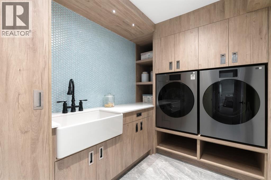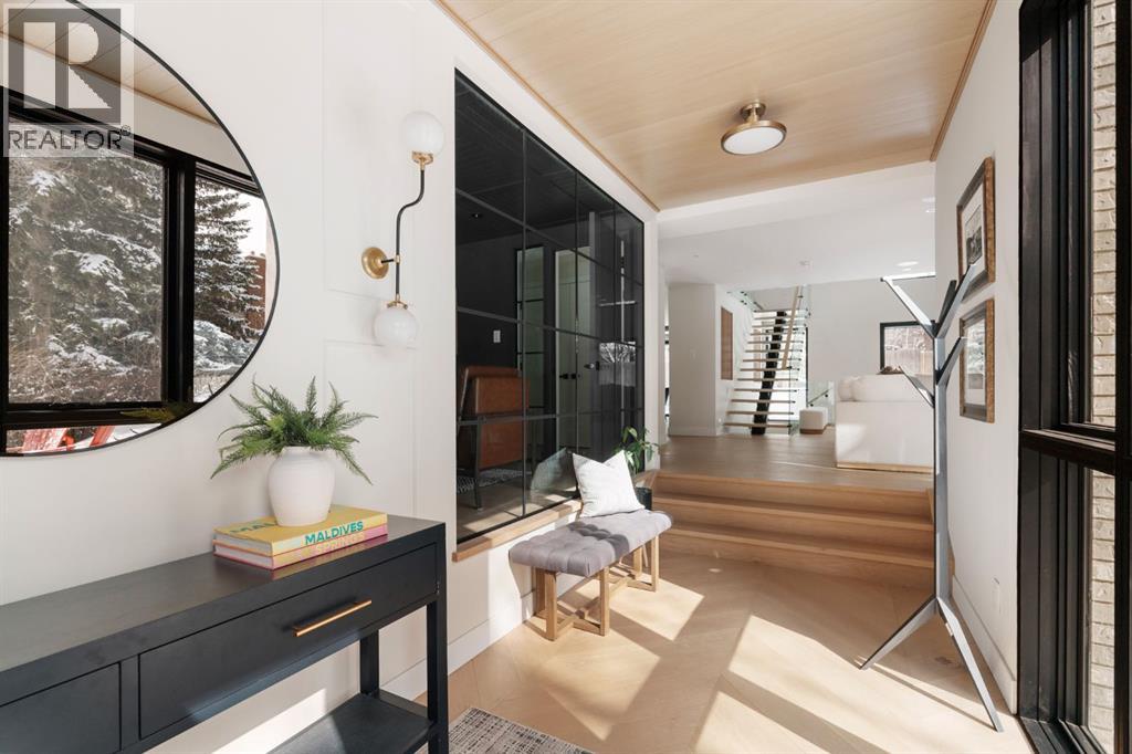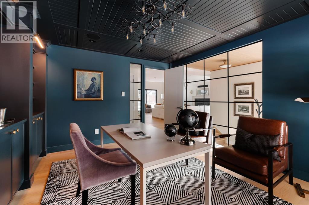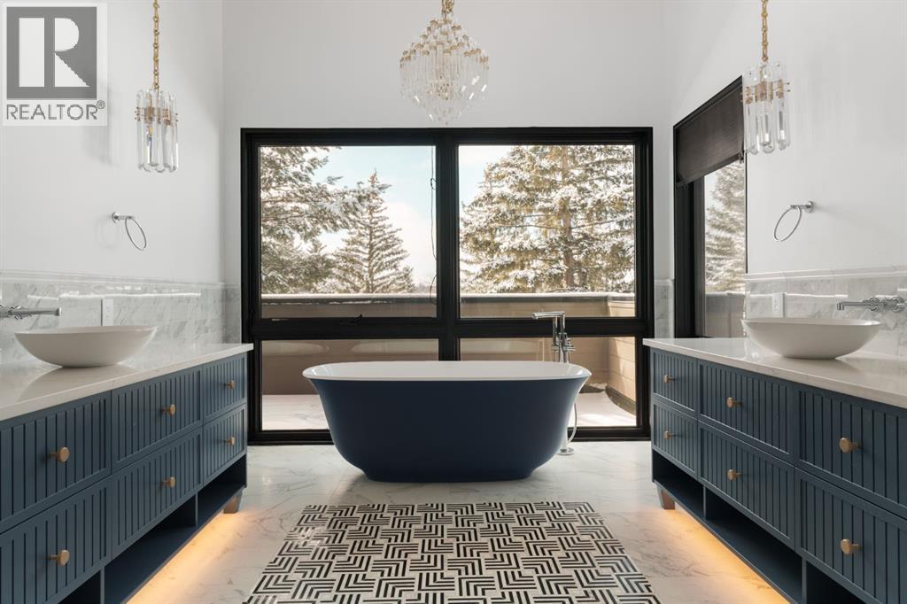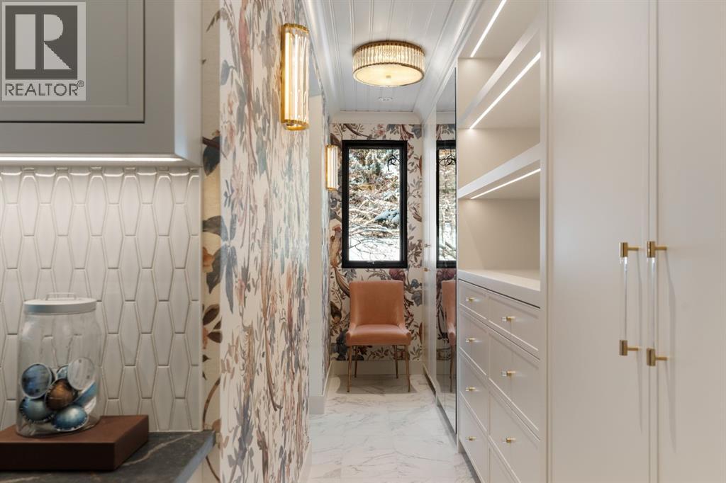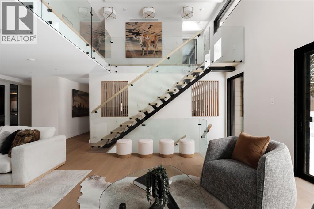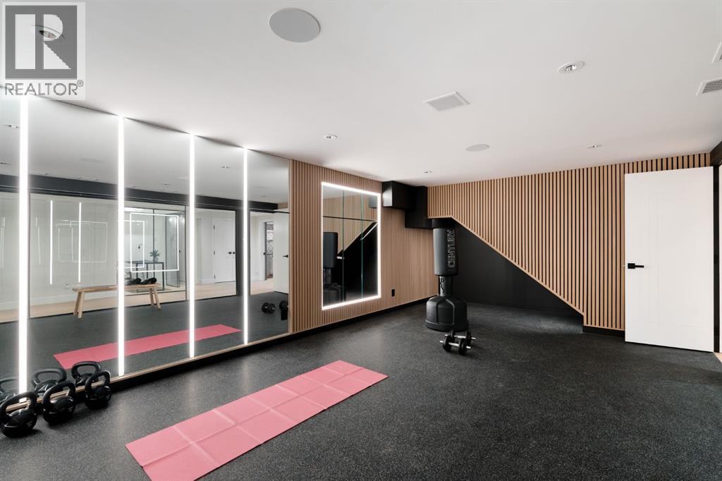 A rare offering in the heart of Pump Hill, this completely reimagined residence blends timeless design with modern luxury on an expansive 0.27-acre lot, tucked away on a private cul-de-sac along a quiet, tree-lined street. Taken down to the studs and meticulously rebuilt, this home offers over 5,000 sq.ft. of refined living space, showcasing a sophisticated West Coast aesthetic with an emphasis on light, flow, and exceptional craftsmanship. The main level is both elegant and highly functional, featuring wide-plank hardwood flooring, curated designer lighting, custom millwork, and thoughtfully selected wall treatments throughout. A stunning living room anchored by a gas fireplace flows seamlessly into the chef-inspired kitchen, complete with top-of-the-line appliances, including a built-in Miele coffee system, bespoke cabinetry, and an oversized island designed for gathering. The adjoining dining area overlooks the expansive backyard, creating the perfect backdrop for both everyday living and elevated entertaining. A standout feature of the main floor is the beautifully designed private office, enveloped in rich, moody tones and custom detailing, an inspiring space that evokes focus, creativity, and quiet sophistication. A well-designed mudroom with a dedicated dog wash station connects effortlessly to the attached heated garage, an ideal blend of luxury and practicality. Upstairs, a dramatic open-to-below family room with a second fireplace offers a warm and inviting retreat. Two generously sized bedrooms each feature their own walk-in closets and beautifully appointed ensuites. The primary suite is a true sanctuary, complete with a private balcony and a spa-inspired ensuite featuring premium finishes and a heated towel warmer. The fully developed lower level is designed for modern living, featuring a professional-grade home gym and a custom-built, sound-insulated room perfectly suited professional-grade Zoom and virtual meetings, offering privacy, clarity, and an e levated at-home experience. A sleek wet bar completes this level, making it ideal for both entertaining and everyday enjoyment. The outdoor space is equally impressive, with landscaping to be completed by the current owners, presenting a rare opportunity to enjoy a fully finished, turnkey property in one of Calgary’s most prestigious communities. An exceptional home where design, comfort, and location converge. (Exterior front image has been virtually staged to reflect one of Calgary’s many seasons) (id:63190)