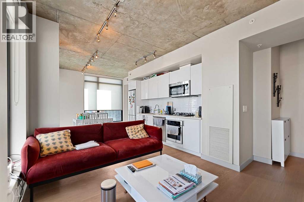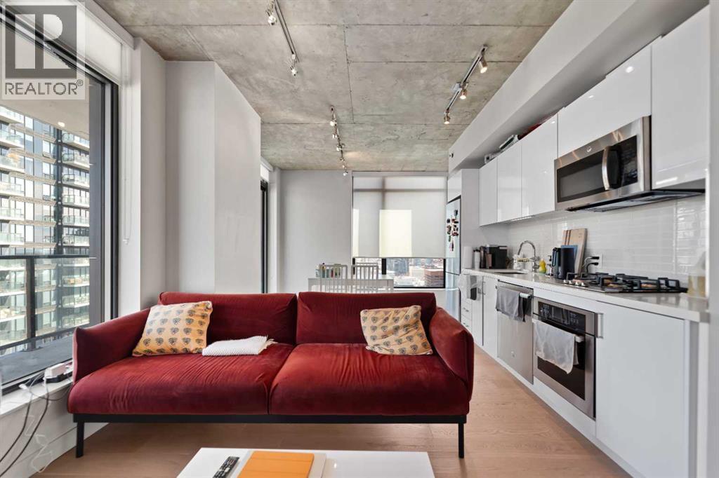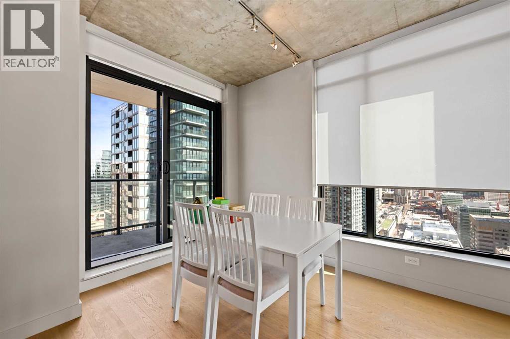 Experience elevated urban living in this stunning 2-bedroom, 2-bathroom corner unit on the 28th floor of the sought-after 6th and Tenth building in Calgary’s Beltline. Nearly floor-to-ceiling windows frame sweeping city and mountain views, filling the open-concept layout with natural light and highlighting its sleek industrial design.The modern kitchen features quartz countertops, a gas range, and stainless-steel appliances, seamlessly flowing into the living and dining areas. Step onto the large private balcony to unwind, entertain, or enjoy breathtaking sunsets over the skyline.Additional features include in-suite laundry, central air conditioning (for the hot summers), and one titled underground parking stall (near elevator). Residents enjoy premium amenities such as a fitness centre, outdoor pool, concierge service, and stylish recreation spaces. Each floor also offers a garbage chute—an uncommon convenience in most condo buildings.Located in the heart of downtown, you’re steps from top restaurants, shopping, entertainment, transit, and the Calgary Stampede grounds. The building is short-term–rental friendly, offering a rare turn-key opportunity for investors.Don’t miss your chance to own this exceptional high-rise home in one of Calgary’s most vibrant communities. (id:63190)