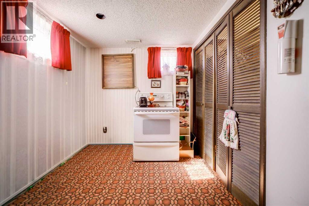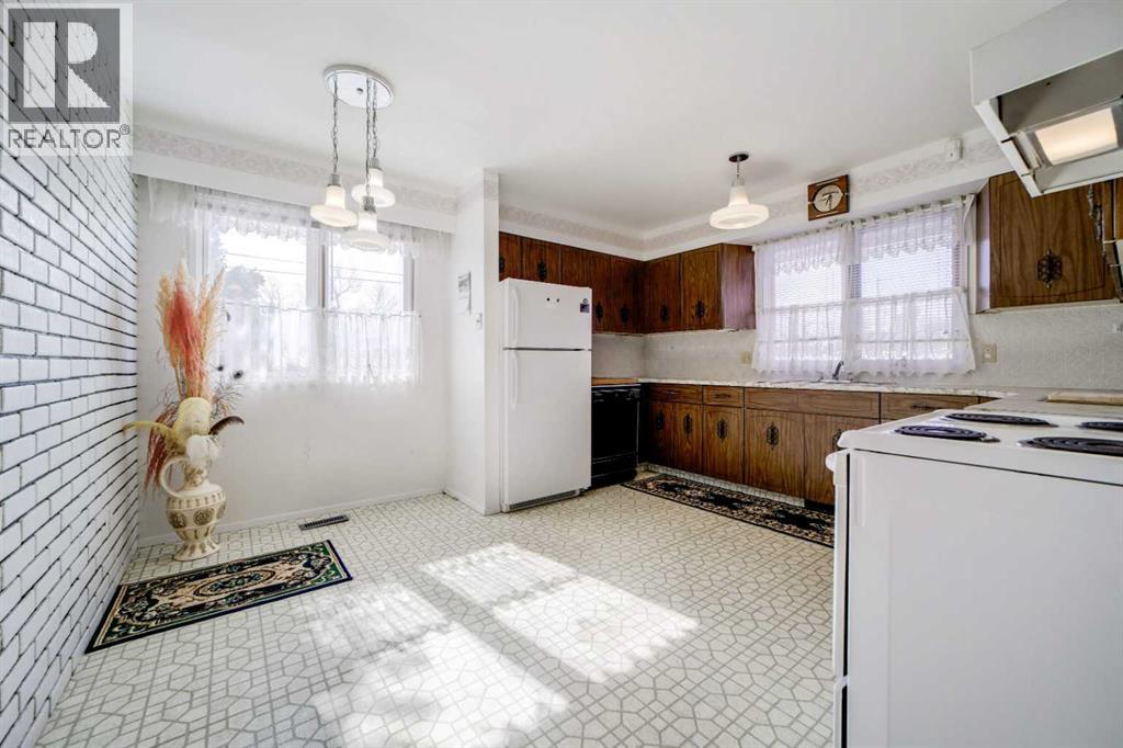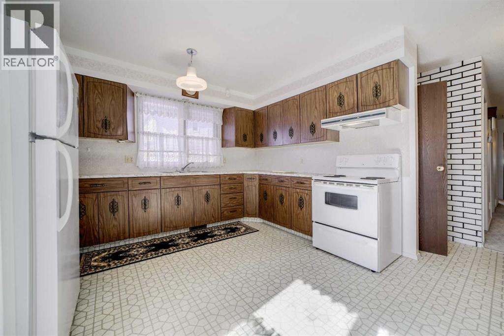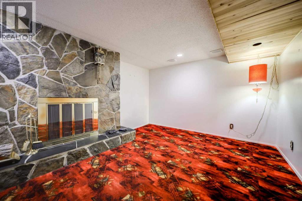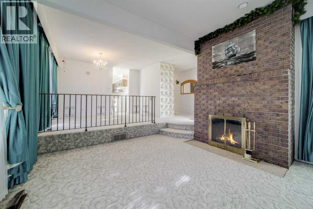 Step into a classic 1970s bungalow that feels like a time capsule, in the best way, where bold design choices and original finishes have been lovingly preserved! From the outside, this home has a low profile with a wide front lawn, accented by mature trees and a concrete walkway leading to the entrance. As you enter, you’re greeted by a spacious main floor with distinct yet connected living areas. The standout feature is the sunken living room - a signature 70s design -just a few steps down from the main level. It creates a cozy, defined space centered around one of the home’s fireplaces, finished in brick and stretching from floor to ceiling. Plush, white carpeting and linoleum adds to the retro charm of this estate. The kitchen and dining areas carry their original finishes with pride, complimenting wood cabinetry, laminate counters and patterned backsplash. The formal dining room is just off the kitchen, ideal for family gatherings with an open view into the living room that keeps everything feeling connected. Down the hall are 3 bedrooms, each with their own personality but tied together by the home's cohesive vintage feel. The bathroom has an updated vanity, but retains some of its original character. The basement is where this home truly leans into its retro identity. Fully developed, it features a second fireplace in another sunken living room, making it the perfect hangout space. The highlight is the built-in bar area, complete with a faux leather "quilted" look. An additional bedroom and tons of storage space complete the lower level. Just let this space take you all the way back to the 70's! This home is absolutely worth a look, located away from the busy-ness of Main Street, but ideally within walking distance to all the right amenities. (id:63190)