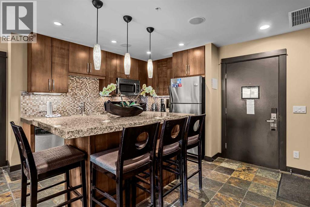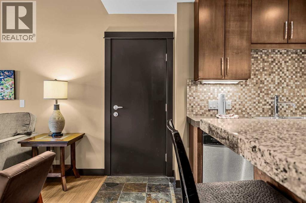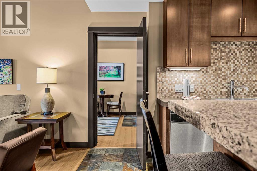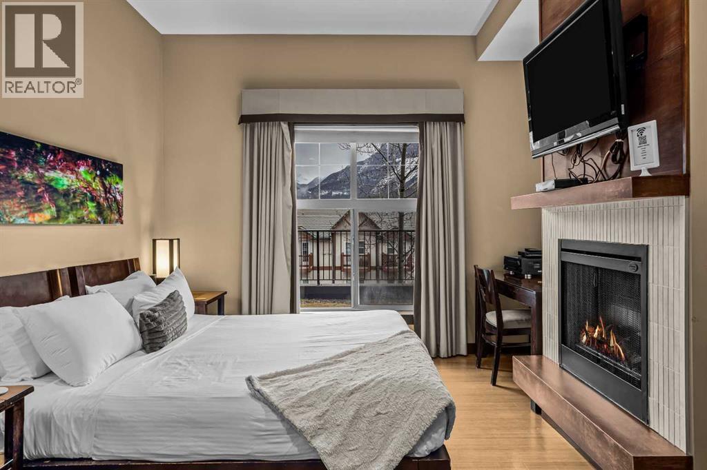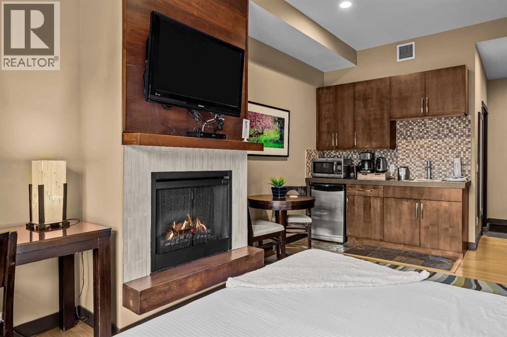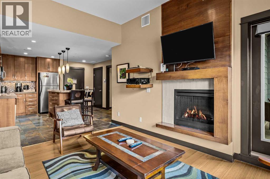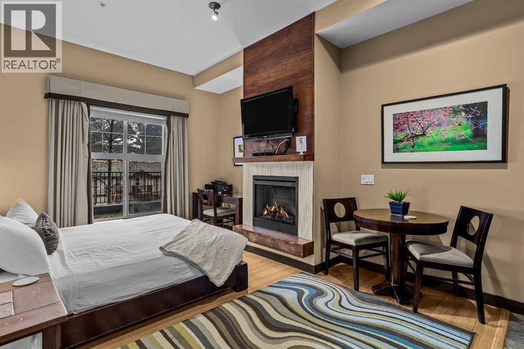 106 Rotation D -1818 Mountain Ave | Silver Creek Lodge. 12 weeks per yearYour Canmore Ownership at a Fraction of the Price. Well-positioned in Silver Creek Lodge, this 2-bedroom lock-off unit offers flexibility, functionality, and one of the most sought-after features in the building—ground floor access with pet-friendly convenience.This layout is ideal for both personal use and revenue generation, with a self-contained lock-off configuration that allows for separate rental of each side. Inside, the unit features a warm and inviting mountain aesthetic with stone countertops, stainless steel appliances, and a cozy fireplace, creating a comfortable space for guests and owners alike.What truly sets this unit apart is its direct walk-out to green space, providing easy outdoor access for pets and eliminating the need for elevators or common hallways—an increasingly desirable feature for both short-term guests and long-term stays.Silver Creek Lodge amenities include a fitness area, steam room, and outdoor hot tub, enhancing the overall guest experience and supporting strong rental appeal.Ground floor, lock-off, pet-friendly units are among the most desirable and limited opportunities in the building—making this a smart choice for investors and lifestyle buyers alike. (id:63190)