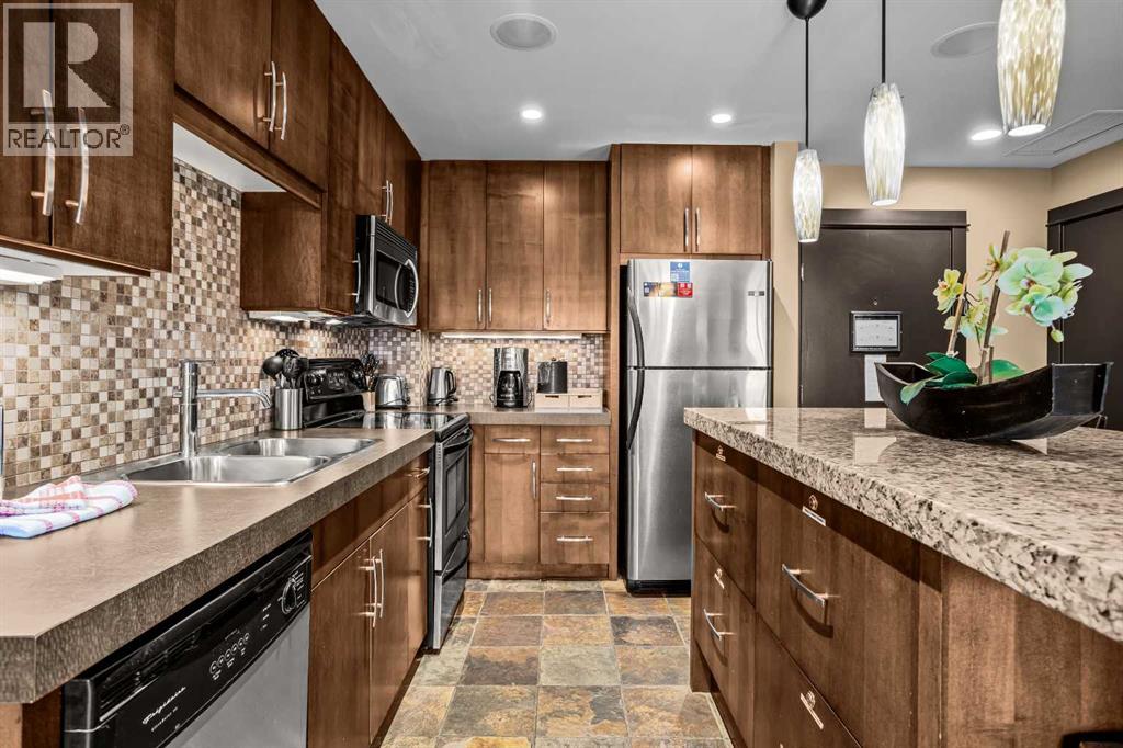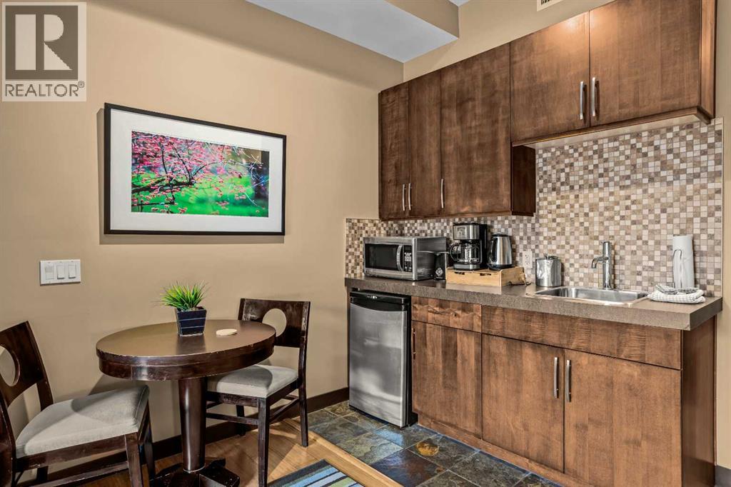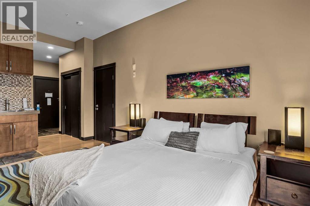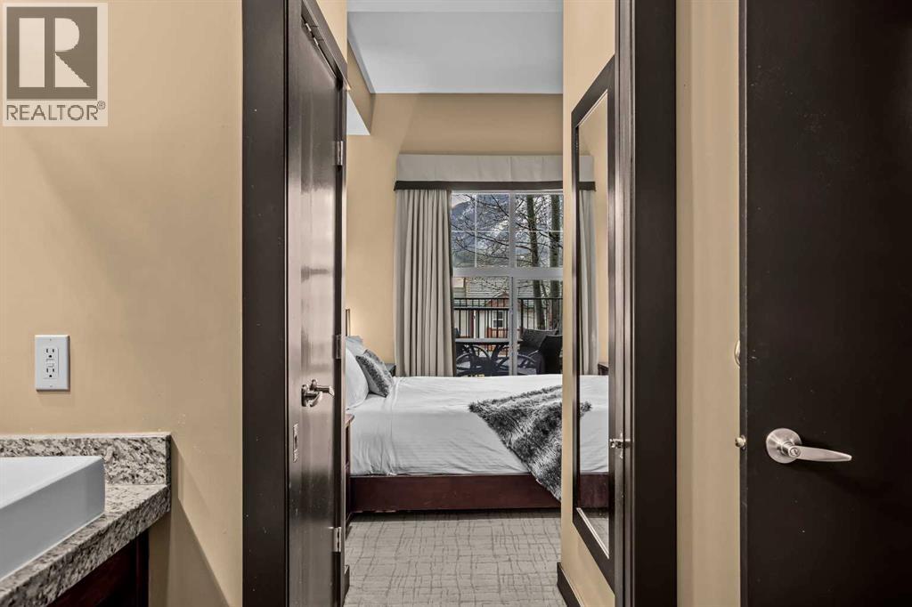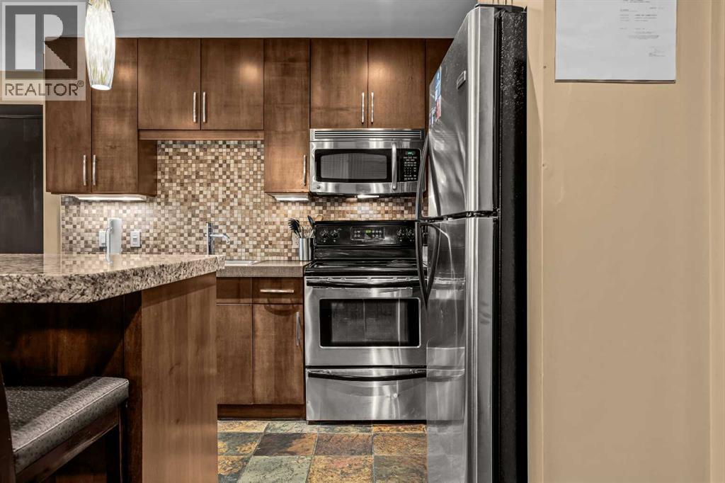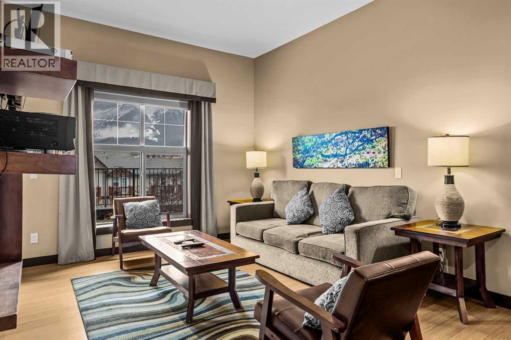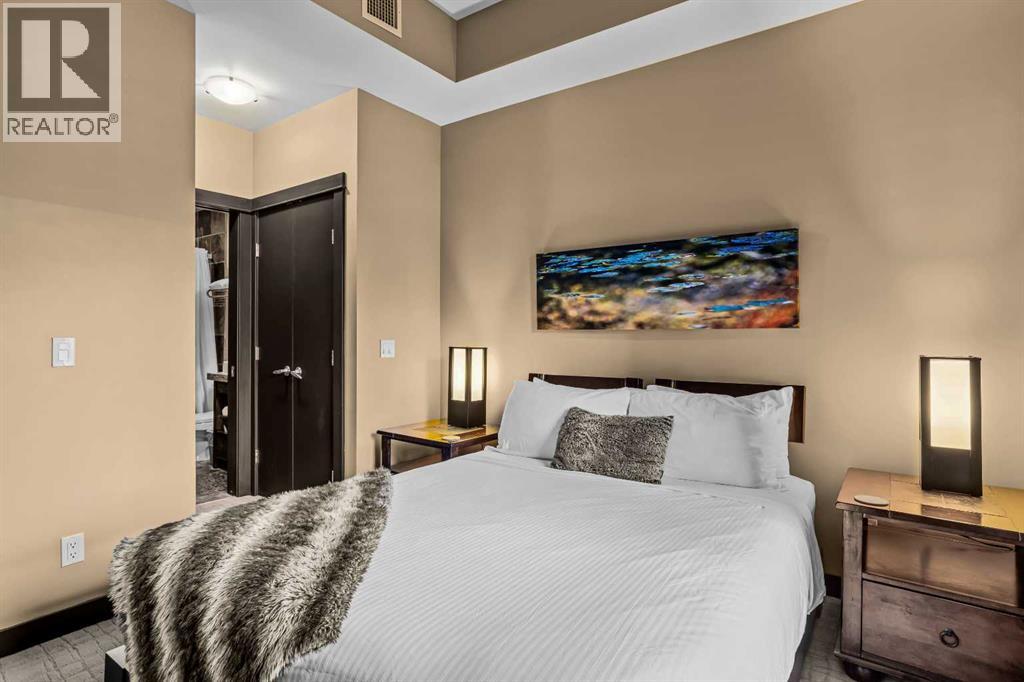 106 Rotation D -1818 Mountain Ave | Silver Creek Lodge. 12 weeks per yearYour Canmore Ownership at a Fraction of the Price. Well-positioned in Silver Creek Lodge, this 2-bedroom lock-off unit offers flexibility, functionality, and one of the most sought-after features in the building—ground floor access with pet-friendly convenience.This layout is ideal for both personal use and revenue generation, with a self-contained lock-off configuration that allows for separate rental of each side. Inside, the unit features a warm and inviting mountain aesthetic with stone countertops, stainless steel appliances, and a cozy fireplace, creating a comfortable space for guests and owners alike.What truly sets this unit apart is its direct walk-out to green space, providing easy outdoor access for pets and eliminating the need for elevators or common hallways—an increasingly desirable feature for both short-term guests and long-term stays.Silver Creek Lodge amenities include a fitness area, steam room, and outdoor hot tub, enhancing the overall guest experience and supporting strong rental appeal.Ground floor, lock-off, pet-friendly units are among the most desirable and limited opportunities in the building—making this a smart choice for investors and lifestyle buyers alike. (id:63190)