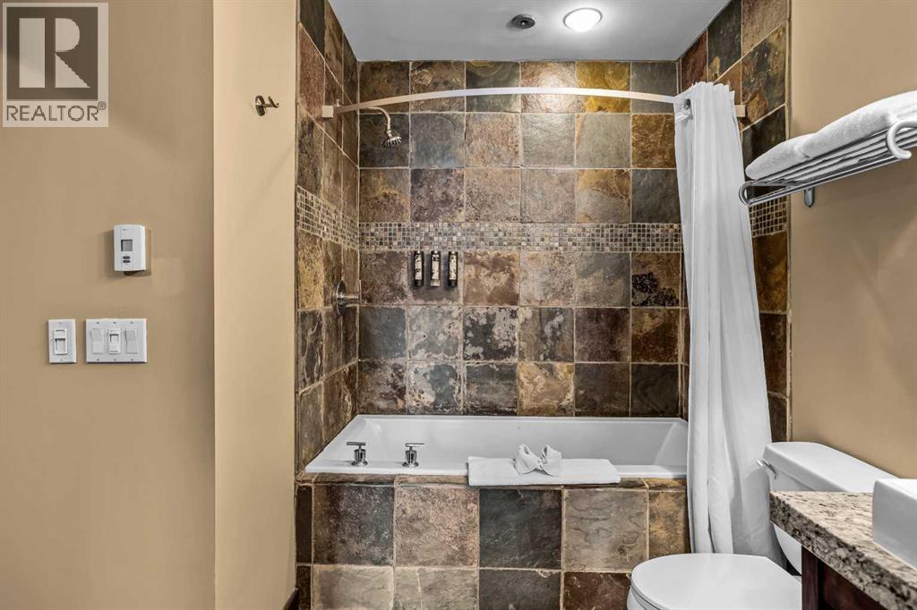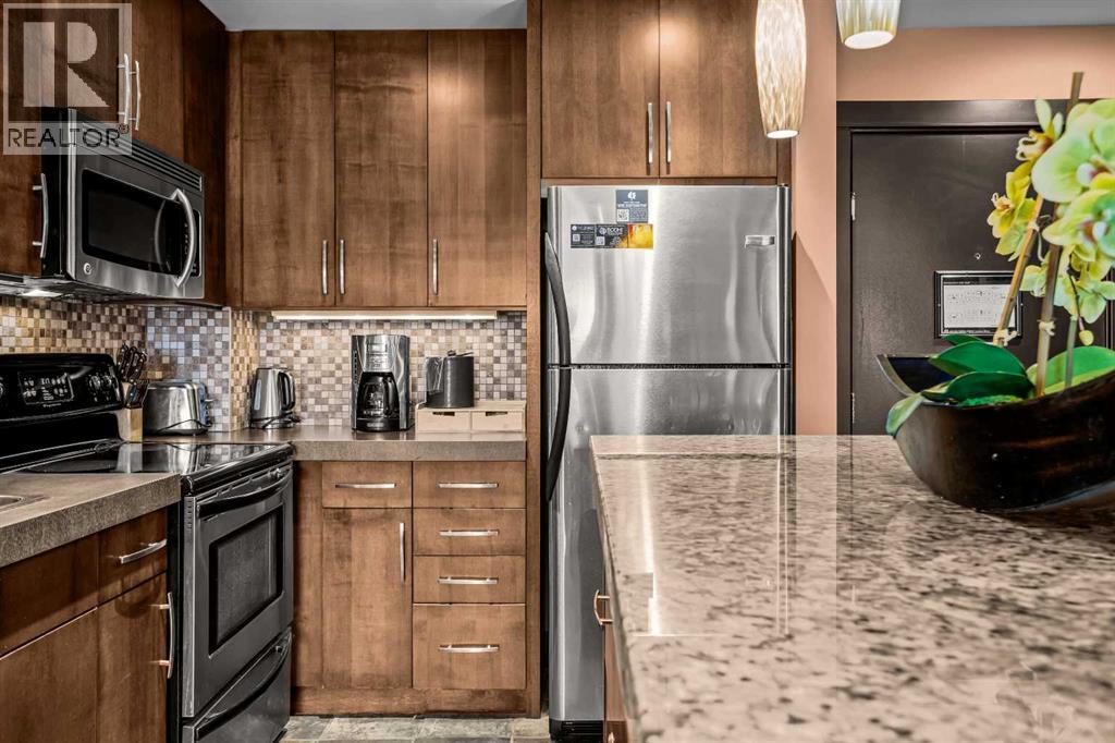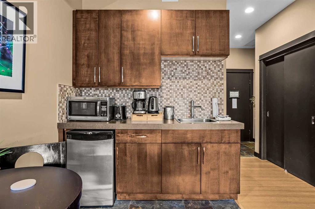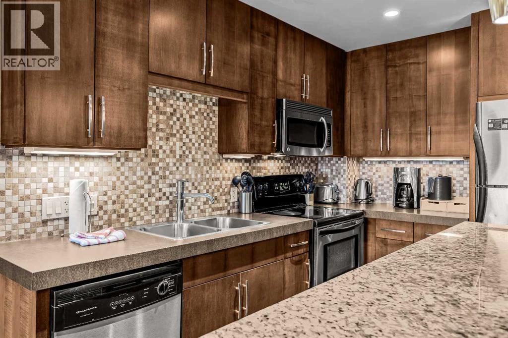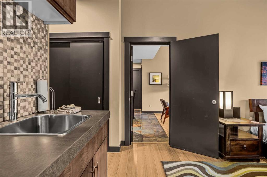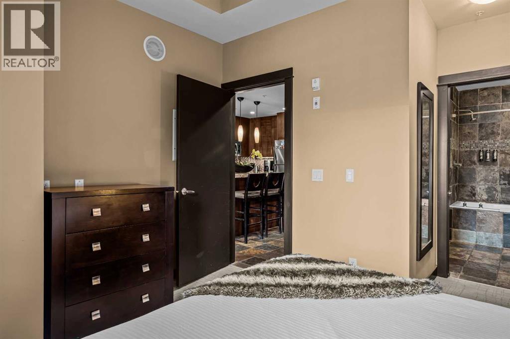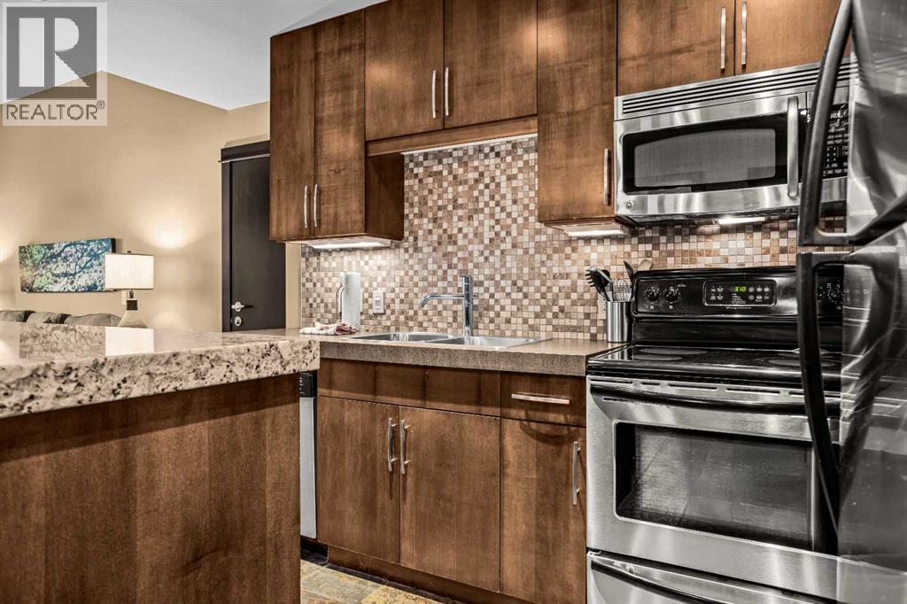106 Rotation D -1818 Mountain Ave | Silver Creek Lodge. 12 weeks per yearYour Canmore Ownership at a Fraction of the Price. Well-positioned in Silver Creek Lodge, this 2-bedroom lock-off unit offers flexibility, functionality, and one of the most sought-after features in the building—ground floor access with pet-friendly convenience.This layout is ideal for both personal use and revenue generation, with a self-contained lock-off configuration that allows for separate rental of each side. Inside, the unit features a warm and inviting mountain aesthetic with stone countertops, stainless steel appliances, and a cozy fireplace, creating a comfortable space for guests and owners alike.What truly sets this unit apart is its direct walk-out to green space, providing easy outdoor access for pets and eliminating the need for elevators or common hallways—an increasingly desirable feature for both short-term guests and long-term stays.Silver Creek Lodge amenities include a fitness area, steam room, and outdoor hot tub, enhancing the overall guest experience and supporting strong rental appeal.Ground floor, lock-off, pet-friendly units are among the most desirable and limited opportunities in the building—making this a smart choice for investors and lifestyle buyers alike. (id:63190)