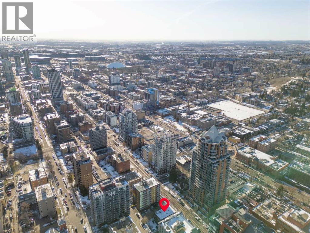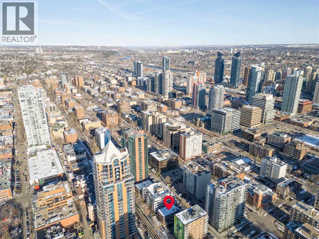 TOP-FLOOR CORNER UNIT - IN ONE OF DOWNTOWN'S BEST LOCATIONS - STEPS TO 17TH AVE! Set on one of the most desirable streets in the Beltline area, this location delivers unbeatable walkability. Just steps to 17th Avenue!! You will be surrounded by Calgary’s top restaurants, cafés, fitness studios and boutiques - all within a 5-minute walk. Quiet, tree-lined and incredibly central, this building is on a street that offers both energy and calm. Located in a well-maintained small (only 16 units!) CONCRETE building, this TOP FLOOR, corner unit offers added privacy with no neighbours above you. This 4-level walk-up is known for its solid construction and quiet living. Secure FOB access gets you in the building. Inside, you’ll find NEW HARDWOOD floors throughout, BIG closet at front entrance. This unit maximizes the space - 484 sq ft - and feels big and open! Functional 1 bedroom, 1 bathroom layout with TONS of natural light. Enjoy cooking in your kitchen with lots of counter space (GRANITE!) PLUS a great sized window above the sink! Open concept. BALCONY. Nice sized bedroom with AWESOME closet space and glass sliding doors. Barn doors, baseboards, lighting, handles and cabinet coloring - truly make this unit feel updated and modern! LAUNDRY IN THE UNIT! Brand new washer/dryer. Soaker tub. PET-FRIENDLY building (with board approval) - no size or breed restrictions - makes this a rare find for pet owners in the inner city!!! Condo fees include heat and water. An ideal opportunity for those seeking inner-city living with exceptional walkability, privacy and long-term value. Don't have a car? You can literally WALK/BIKE everywhere....But this unit comes with assigned parking! Work downtown? Enjoy the benefits of inner-city living - with reduced commute times = come home for lunch or take the dog out! Transit is close - 2 bus stops within a two min walk. Perfect for young professionals, first-time buyers or investors! STOP renting - pay your own mortgage i nstead!!!! NO POST TENSION CABLES! SHORT TERM RENTALS ALLOWED WITH BOARD APPROVAL! (id:63190)