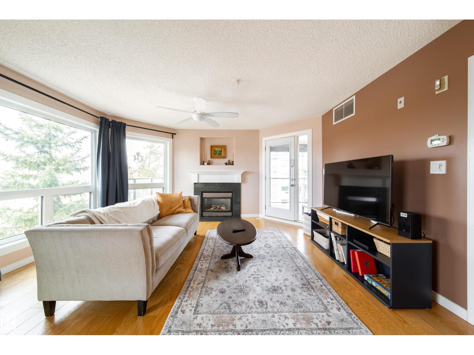 This bright 4th floor corner unit offers an open and spacious layout with beautiful hardwood floors and large windows that fill the home with natural light. The primary bedroom features a private 3-piece ensuite, while the second bedroom includes a built-in desk and Murphy bed, ideal for guests or a home office. Two full bathrooms, great functionality and comfortable living in a sought-after ravine-side building. Creekside Condominiums is a well-maintained 18+ building backing onto beautiful Mill Creek Ravine in the vibrant Ritchie community. Enjoy secure entry, elevator access, heated underground parking, guest suite, fitness room and social space. Surrounded by parkland and steps to scenic ravine trails, with quick access to Whyte Avenue’s cafés, restaurants, shopping and transit. Quiet, private setting with outstanding walkability in one of Edmonton’s most desirable mature neighborhoods. (id:63190)
