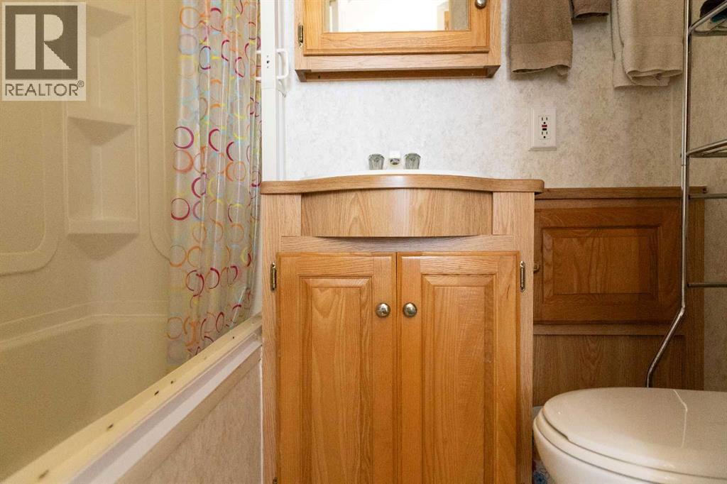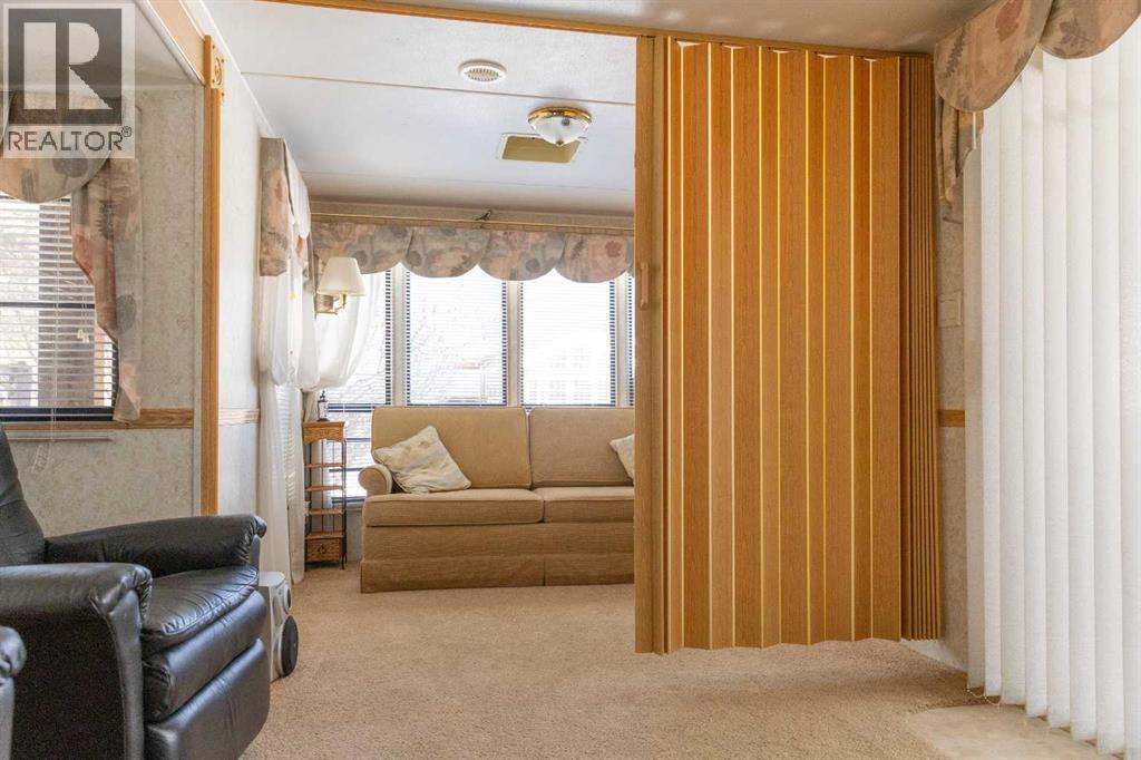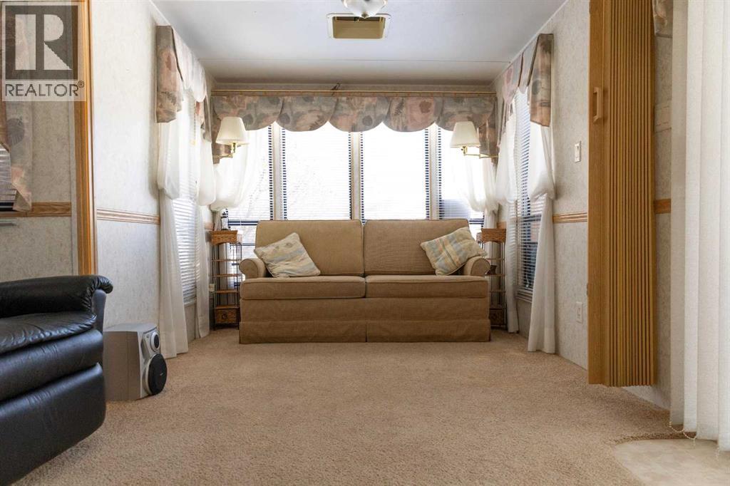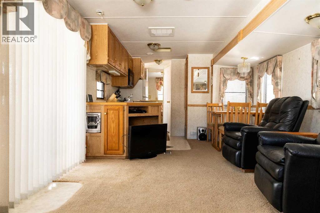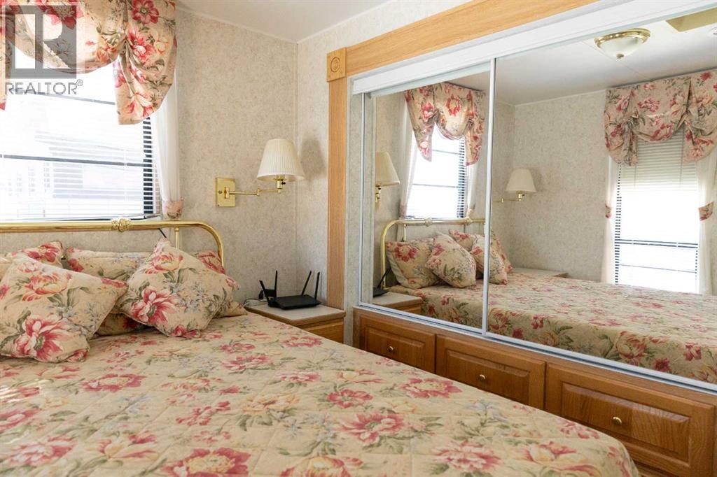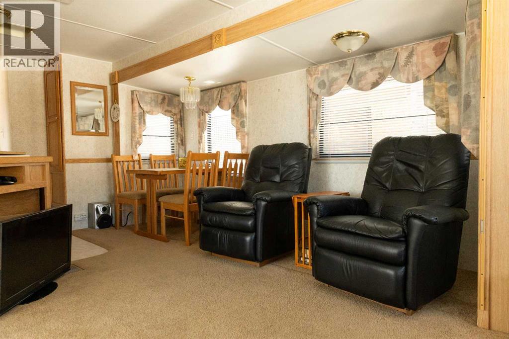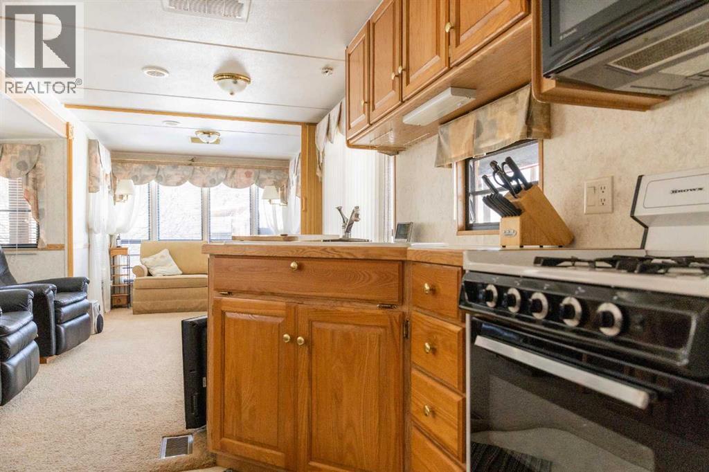 Lakeside, along the quiet edges of RV Heaven, find your tranquil summer retreat. Convenience meets full relaxation here featuring lake views, close proximity to the marina, low maintenance yard with private fire pit and spacious covered deck! The white vinyl picket fence welcomes your small family pet or young children. Outdoor hot and cold taps make coming off the beach a breeze. Landscaping shrubs and lilac trees create a breath of fresh air while you enjoy the sunshine or cozy up to the fire as the sun sets. Summer memories continue as you walk up to the deck and make it your own. Easily open up the sides to take in the lake view or keep enclosed, turn on those patio lights and listen to nature under the tin roof. The roof covering extends over the 38’ Citation Resort Park Model (2003 Den Model) by General Coach, boasting peace of mind from the elements and minimum upkeep. Settle in or just cool off with the A/C inside; this tiny home greets you with a very functionable floor plan. Easy access to the 4 piece bathroom near the main bedroom with HUGE closet, open concept living room and dining area, fully equipped kitchen and plenty of natural light. The best part? A bonus area that can be used for extra comfortable seating while entertaining or – pull back the privacy divider and conveniently add a second sleeping area with the quality hide-a-bed. Forgot something? Feeling social? Walk across to Jorgy’s Hot Spot and take in their licensed patio, community events, recreation offerings and convenience store! Walking trails, playgrounds, nature reserve, outdoor gym, sandy beach and Gull Lake Golf Course are all within reach, boutique shopping in Bentley and Rimbey are only minutes away and your new lake life could be only one call away!Condo amenities include playground, visitor parking, shower house, water and sewer. Power is on your own meter and billed by the condo board annually. Park is open seasonally (approx. May 1-Sept 30 depending on frost). Well kept! Orig inal owners! Turn key! All goods included! (id:63190)