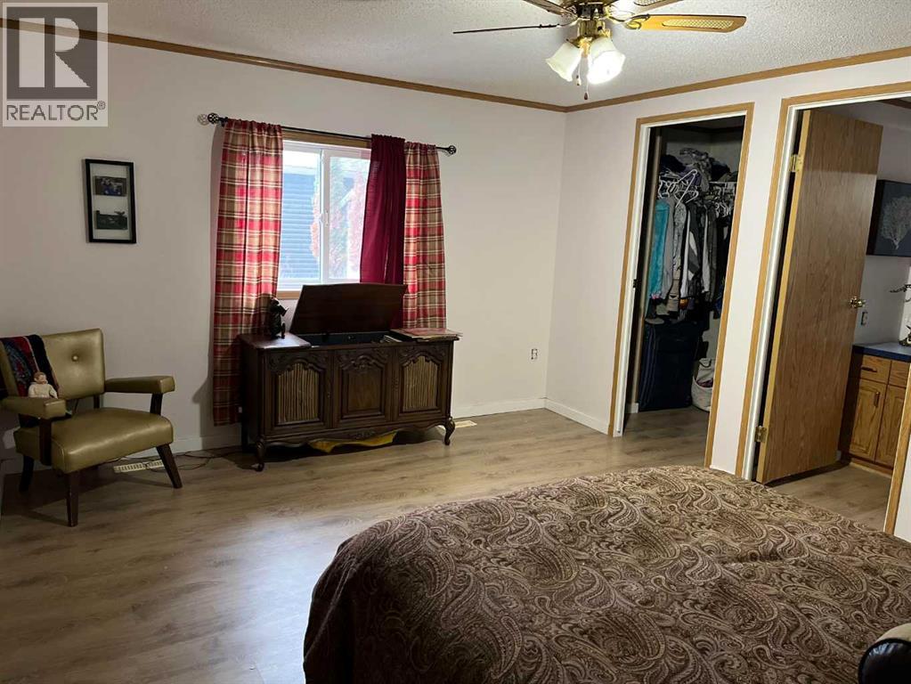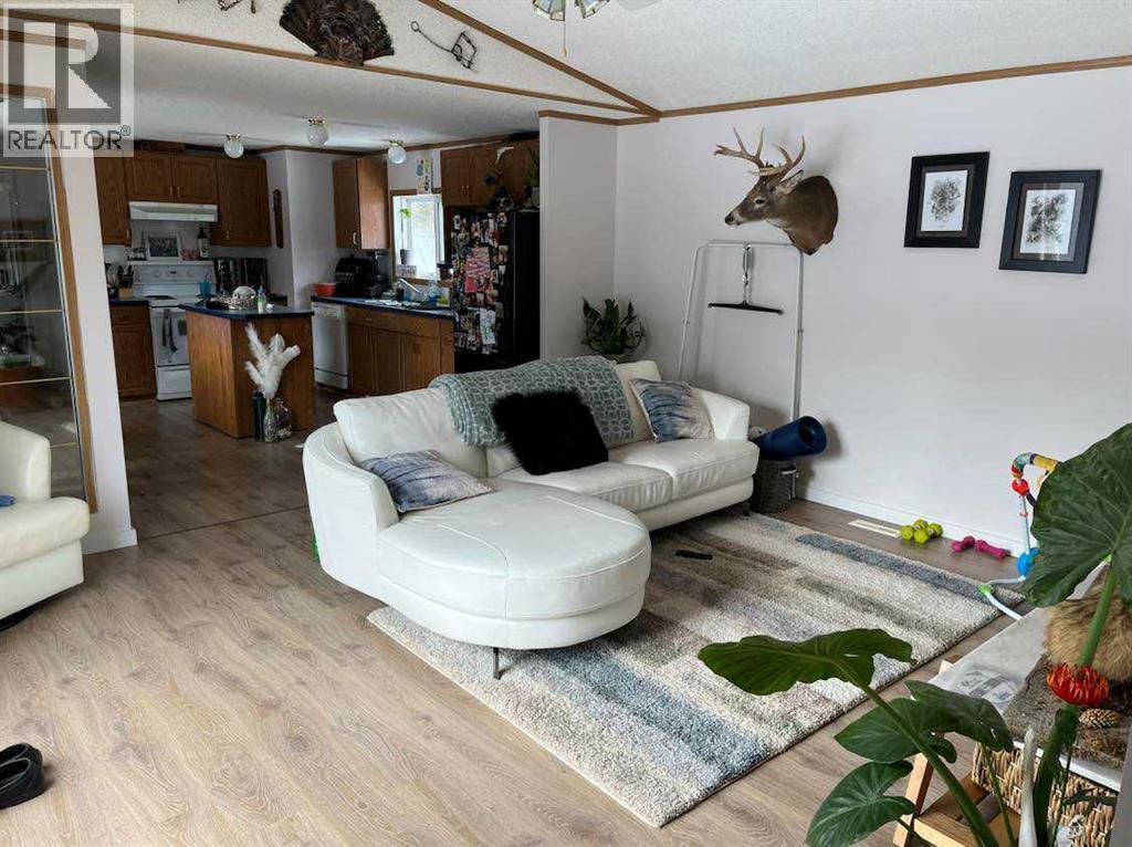 Spacious mobile home on a quiet street with beautiful mature trees, established perennials, and a matching shed. The living and kitchen area is a large open space with lots of light, and tons of cupboard space as well as a kitchen island. The master bedroom features a walk-in closet, 4 piece bathroom with a soaker tub, and enough room for a king bed. Another 2 fair sized bedrooms, a 4 piece bathroom, laundry room, and a large addition finish off the home with room for all of your extra belongings. Recent updates include shingles, flooring, paint, and baseboards in 2023. Approval by Pinecrest Estates must be a condition. (id:63190)