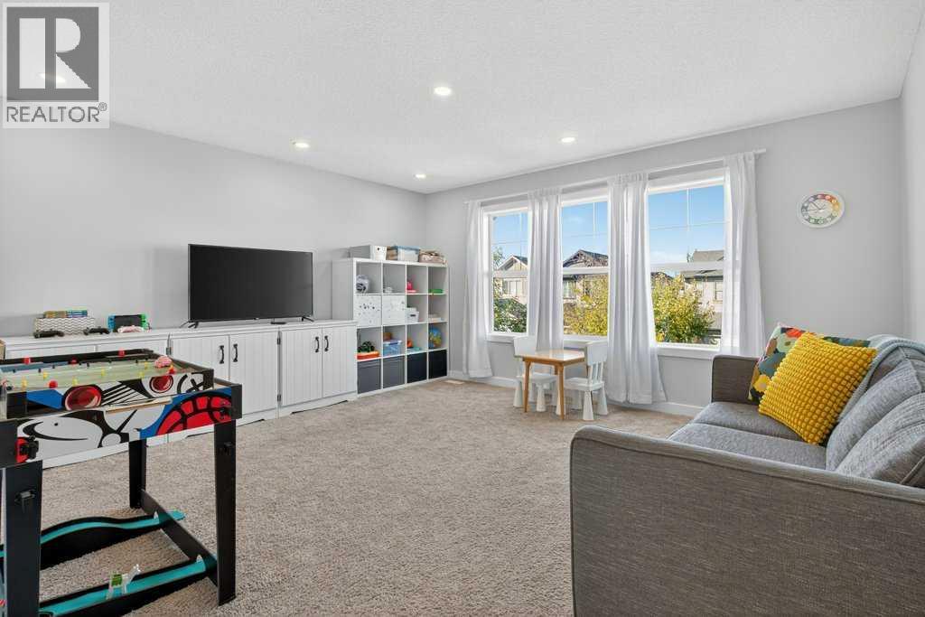 We are thrilled to present a truly exceptional property in New Brighton, one of Calgary's most sought-after neighborhoods. Thisfive-bedroom, Cardel-built home offers over 3,000 square feet of developed space and is designed to impress. From the moment you step inside, you'll be greeted by open and airy nine-foot ceilings and luxurious upgrades throughout. Updated vinyl plank flooring guides you past the tandem triple garage and mudroom into the spacious main living area. A stylish barn door provides privacy for the main floor office, perfect for those who work from home. The modern kitchen is a chef's delight, featuring an extended island, a walk-in pantry, and updated appliances. Adjacent to the kitchen is a generous dining area that opens onto a large composite deck, ideal for outdoor entertaining. The expansive family room, complete with a custom fireplace, ensures cozy gatherings during cooler seasons. The living space extends outdoors with a sunny, east-facing yard, newly decked to enhance your summer evenings. Exterior upgrades include a fenced dog run, a firepit gas line, and Gemstone lighting. Upstairs, a huge bonus room provides the perfect space for sports enthusiasts or movie buffs. The upper level also features convenient laundry facilities, three bedrooms, and two full bathrooms. The enormous primary suite boasts a walk-in closet and a separate shower and tub, bathed in natural light. For your comfort, the entire home is fully air-conditioned. The fully developed basement offers an additional two bedrooms and a generously sized bathroom, perfect forteenagers, guests, in-laws, or multi-generational families. There's also a closed-off craft room, currently used as an artist's studio, ready for your own vision. SOLAR PANELS are a huge bonus and are sold contract free. This is truly one of the most desirable homes in the area, complete with a rare triple tandem garage. New Brighton offers an abundance of amenities, including walking paths, skate park, sho pping centers, restaurants, schools, and water parks. Don't miss the opportunity to make this incredible home yours. (id:63190)