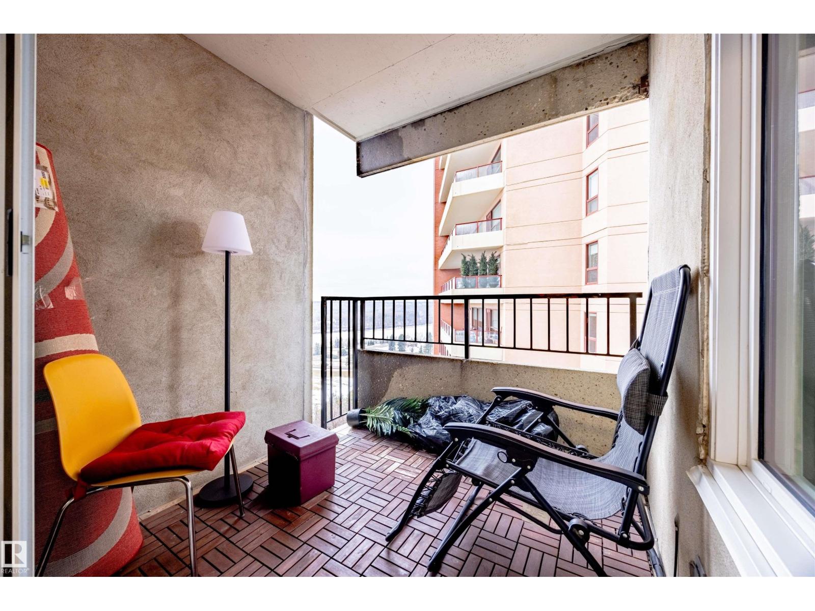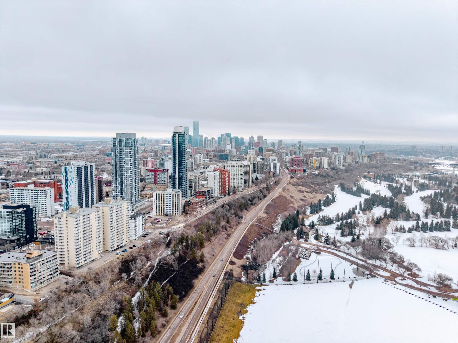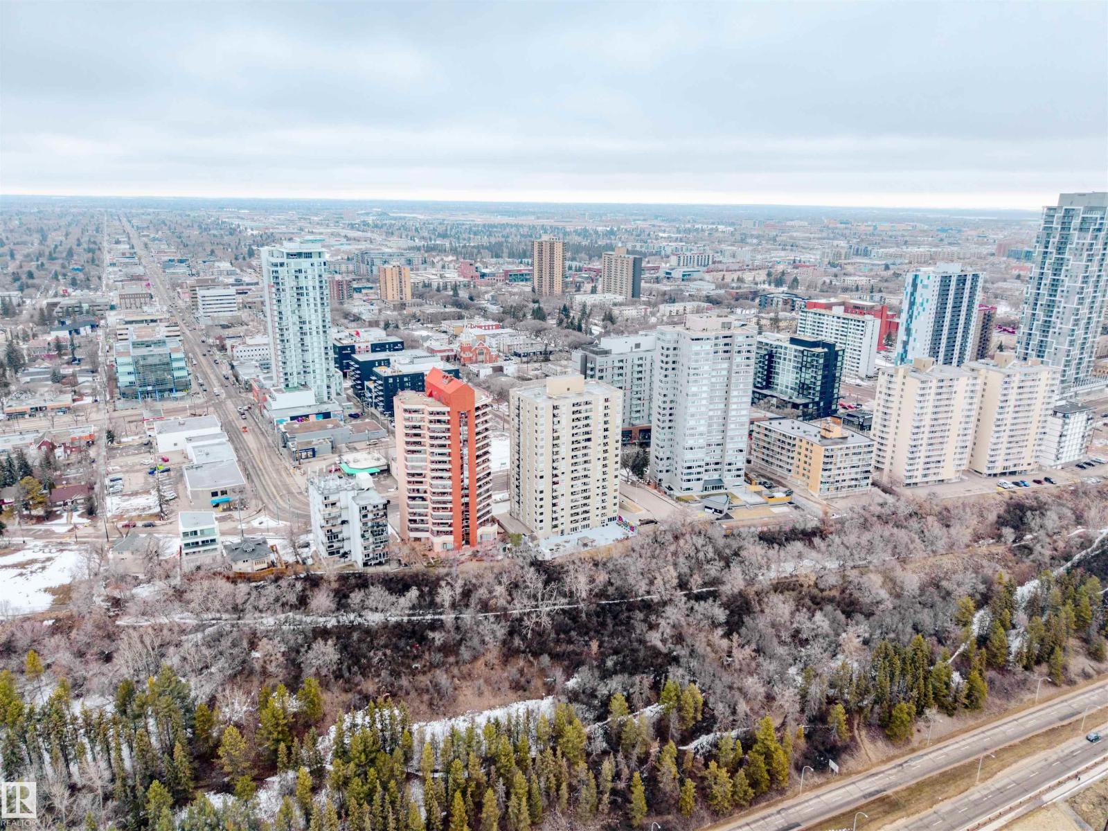 BEAUTIFULLY RENOVATED from top to bottom with RIVER VALLEY views, this 2 bed + 1 bath CORNER UNIT is sure to impress. Step inside and be WOWED by an abundance of NATURAL light, neutral colors and inviting decor! Kitchen is STUNNING with grey cabinetry, white QUARTZ counters, SS appliances with ceiling hood range, under mount sink and more. Large windows and light oak laminate floors grace this ideal living space, along with dining area large enough for 6 + AMAZING electric window coverings. Enjoy covered balcony overlooking the River Valley and 5th hole of Victoria Golf Course. Master bedroom is HUGE with large closet space, office area and views of downtown. Great sized second bedroom overlooks 124 st. Main bath is DIALLED with lifted sink, tile surround bath and rain shower head. Storage in-suite, 1 heated underground parking stall, workshop, car wash, rec facility, social room, SCENIC common area patio and more. A true must see unit! (id:63190)
