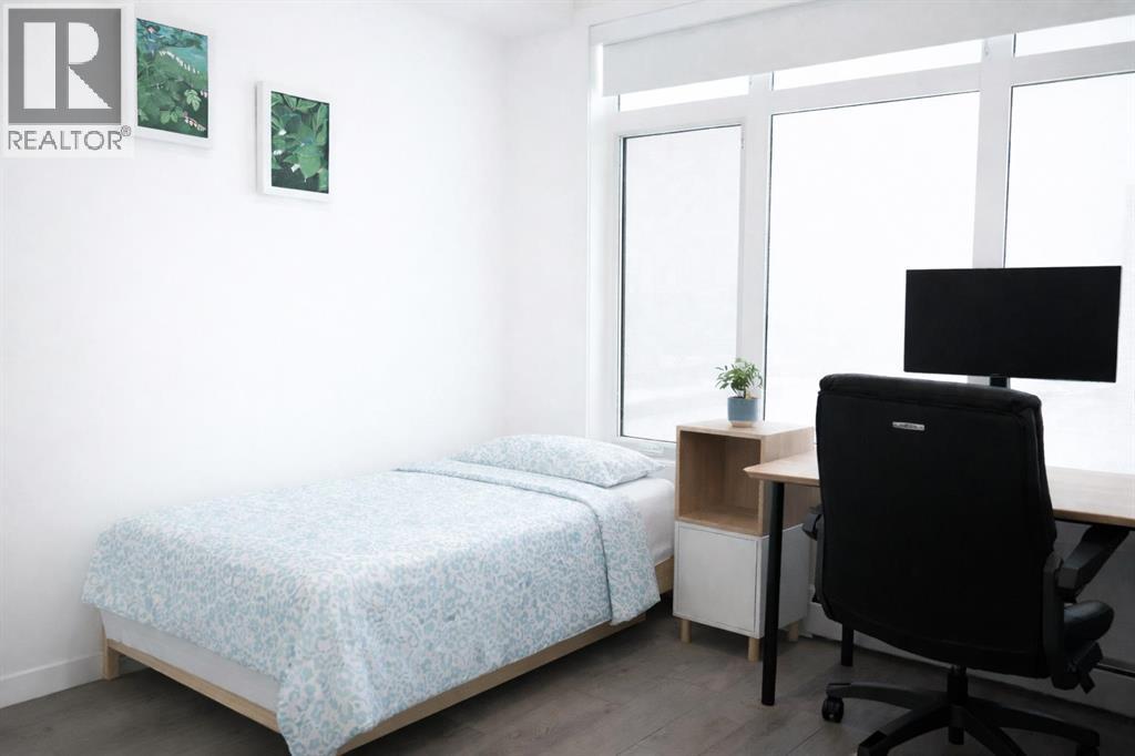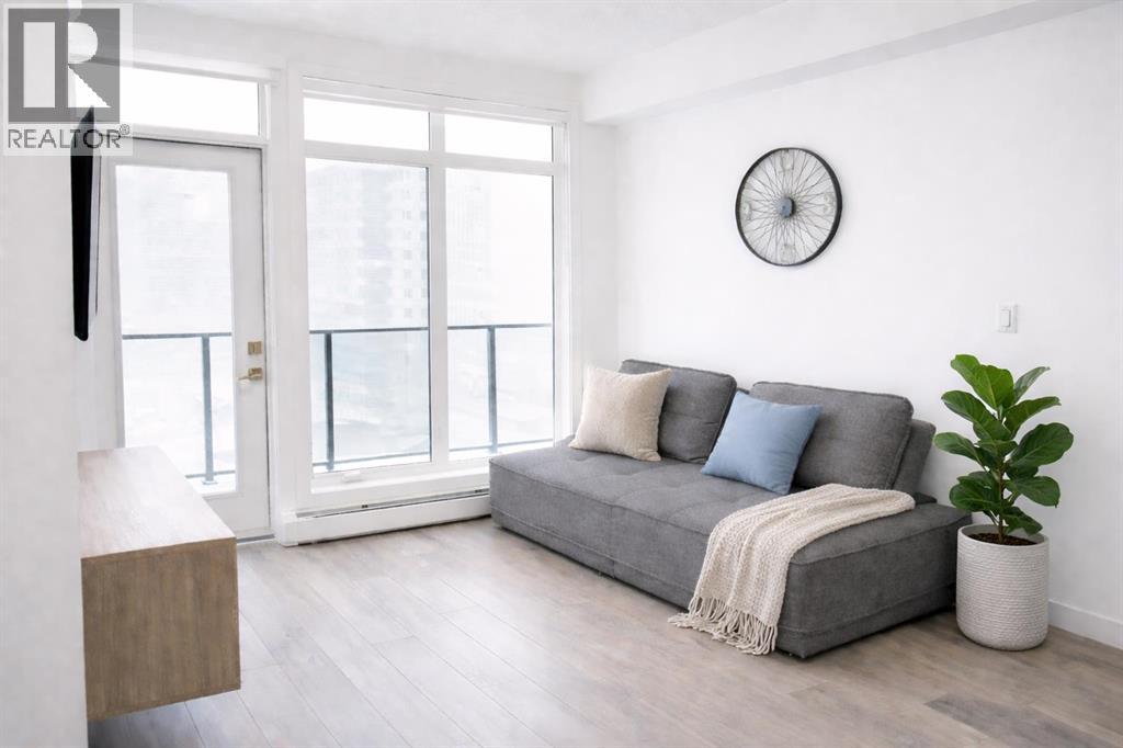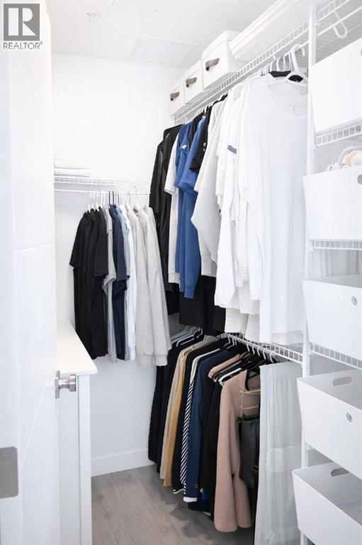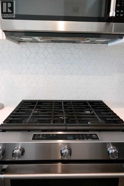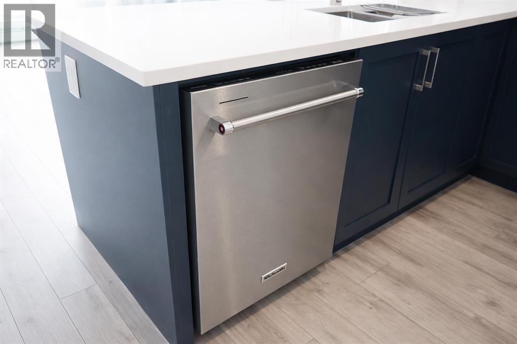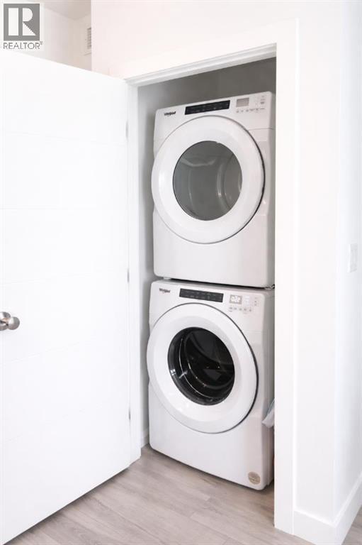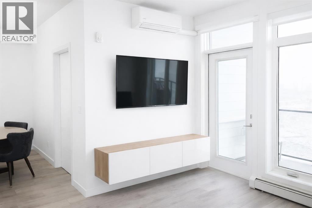 Welcome to the Springbank Hill community, known for its excellent schools and family-friendly environment. This beautiful area is bordered by a natural environmental reserve park with abundant walking trails and bike paths that connect throughout this vibrant and growing community. This new build condominium, Orion Condominium, is located at 85 Street and 19 Avenue SW. This fully upgraded open-concept TOP FLOOR unit is designed to highlight its large double balcony and double-pane windows. The home features a Lennox mini-split heating and cooling system, an efficient dual heating and air conditioning system professionally installed with permits. Luxury vinyl plank flooring with soundproof underlay runs throughout the living room, dining room, kitchen, bathroom, and primary bedroom. The European-inspired kitchen is finished with premium kitchen cabinetry, shaker-style cabinets throughout all bathrooms, soft-close drawers, marble quartz countertops, KitchenAid appliances (refrigerator, gas stove, microwave, dishwasher), stacked front-load washer and dryer, and a natural gas BBQ line installed on the balcony. Includes one titled parking stall and an oversized storage locker (75 sq. ft.) located beside the parking stall. Walking distance to Aspen Landing Shopping Centre with grocery stores, restaurants, cafes, clinics, and amenities. Quick access to Stoney Trail and Bow Trail, and close to 69 Street C-Train Station for easy downtown access, as well as Westside Recreation Centre. (id:63190)