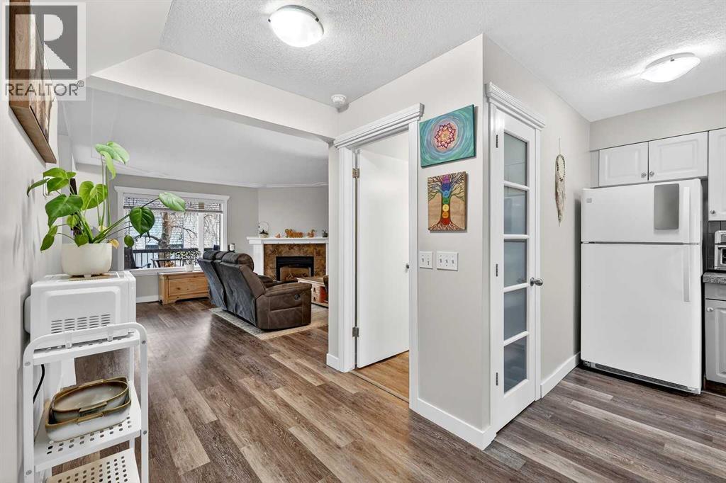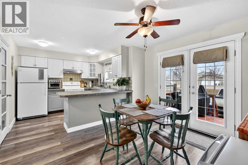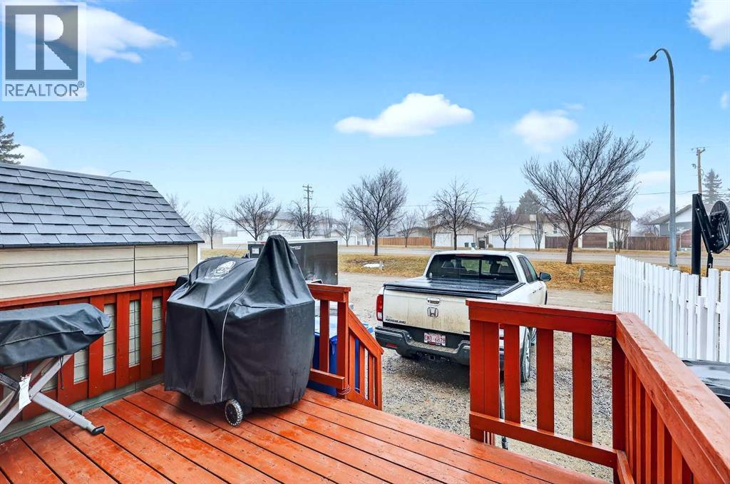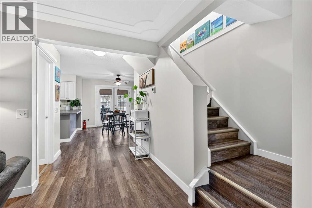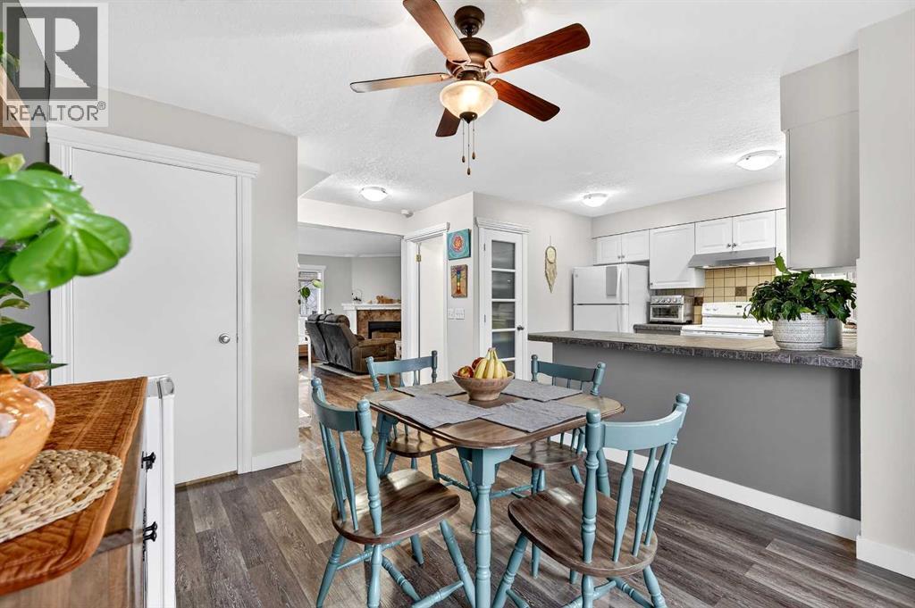 Welcome to this fully developed end-unit townhouse offering exceptionally low condo fees of just $49/month (for common area maintenance, insurance, and reserve fund) and outstanding pride of ownership throughout. This bare land condo means you own your land, providing added value and long-term peace of mind.Thoughtfully maintained with neutral décor and durable vinyl plank flooring, this home is truly move-in ready. Central air conditioning ensures you stay cool and comfortable during the summer months, adding to the overall ease of living. Recent upgrades include a new roof (2025), hot water tank (2022), and a complete replacement of Poly-B plumbing with PEX (2026)—so you can move in with confidence knowing this important upgrade is already done. Step inside to a bright and inviting main floor featuring a spacious living room centred around a cozy corner fireplace with mantle, creating a warm and welcoming focal point. Large windows allow natural light to pour in, enhancing the open feel of the space. The layout flows seamlessly into the kitchen and dining area, offering both functionality and comfort for everyday living and entertaining. The kitchen provides ample cabinetry and workspace, while the dining area is perfectly positioned for family meals or hosting guests. A convenient 2-piece bathroom completes the main level. Upstairs, you’ll find three bedrooms and two full bathrooms. The primary suite offers a relaxing retreat with its own private ensuite and walk-in closet, while the additional bedrooms are ideal for family, guests, or a home office setup. The upper level continues the home’s bright and well-kept feel throughout. The fully developed lower level adds even more versatile living space, perfect for a rec room, games area, or media space. A freestanding gas fireplace creates a cozy atmosphere, making it an ideal spot to unwind. This level also includes laundry, an additional 2-piece bathroom, and a large cold storage area, providing excellent functio nality and extra space for organization.Outside, enjoy the sunny, south-facing covered front deck—perfect for morning coffee or relaxing in the afternoon sun. The rear of the property backs onto a lane with two dedicated parking stalls and includes a convenient storage shed for seasonal items or tools. Ideally located near parks, playgrounds, and schools, this home is a great fit for young families, first-time buyers, or anyone looking for a comfortable and well-rounded community setting. A well-cared-for home that’s ready for its next chapter. (id:63190)