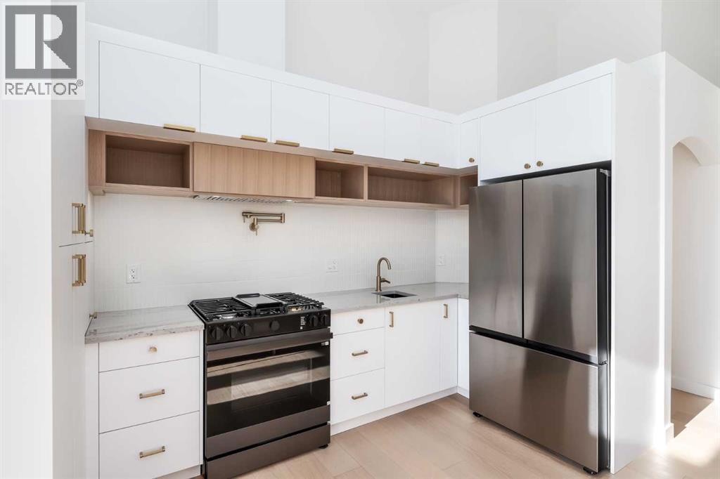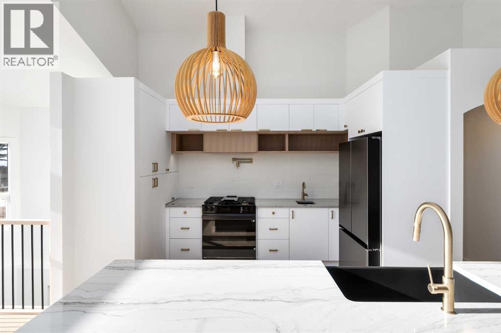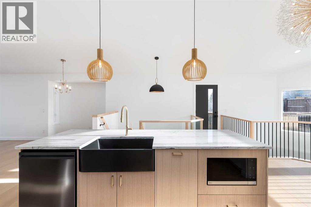 ** CHECK OUT THE VIDEO TOUR ** Welcome to a beautifully REIMAGINED BUNGALOW tucked into a peaceful, tree-lined setting backing directly onto a GREEN BELT in the highly sought-after community of Edgemont. Offering over 2,800 sq ft of developed living space, this FULLY RENOVATED home blends TIMELESS architecture with MODERN design in one of Northwest Calgary’s most established neighbourhoods. Step inside and you’re immediately greeted by soaring VAULTED FLAT CEILINGS & a dramatic wall of SOUTH-FACING windows that fill the home with NATURAL LIGHT all day long. The heart of the home is the STUNNING kitchen & living area, designed for both everyday living & effortless entertaining. The renovated kitchen features a large central island with QUARTZITE natural stone countertops, sleek cabinetry, modern lighting, and HIGH-END finishes that feel straight out of a design magazine. The open layout flows seamlessly into the dining & living spaces, with EXPANSIVE windows framing views of the lush backyard & green space beyond. On the main floor you’ll find a spacious PRIMARY RETREAT complete with a walk-in closet & a SPA-INSPIRED ensuite bathroom featuring a double vanity, quartz countertops, white oak cabinetry, luxurious wall & floor tiles, a beautiful soaking tub & a gorgeous glass shower framed with exquisite PORCELAIN SLABS. A conveniently located main-floor laundry/mud room sits just off the double attached garage, and a beautifully renovated full bathroom & large 2nd bedroom. The lower level has been professionally developed to include a gas fireplace & bright & spacious family/recreation room flooded with natural light from the same south-facing windows above. Two additional bedrooms, a gorgeous bathroom, 2ND LAUNDRY ROOM, an exquisite wet bar & generous storage complete this level, offering flexibility for guests, teens, or multi-generational living. The south-facing backyard is truly a PRIVATE RETREAT. Professionally landscaped, it offers a LARGE DECK, patio area, rais ed garden beds, and an extensive retaining wall that creates layered flower gardens & outdoor living zones. It’s the PERFECT setting for summer dinners, morning coffee, or quiet evenings surrounded by nature. The exterior has been completely refreshed with durable Hardie board siding (completed in 2020), new shingles, soffits, fascia, eavestroughs, a new garage door (all completed in Oct/Nov 2024), and upgraded south-facing windows — giving the home strong curb appeal and long-term peace of mind. All BRAND NEW mechanicals completed in 2025 (Furnace, Hot Water Tank, Electrical Panel, PEX Plumbing Pipes, Water Softener, Humidifier). LOCATION IS EXCEPTIONAL. Edgemont is known for its quiet streets, mature trees, and access to nature. You’re just steps from beautiful ravines & Nose Hill Park, with its endless walking & biking paths, and only minutes to Market Mall, the University of Calgary, Foothills Hospital, SAIT & more. Stylish, bright, and move-in ready — this is LUXURY LIVING at its BEST!! (id:63190)