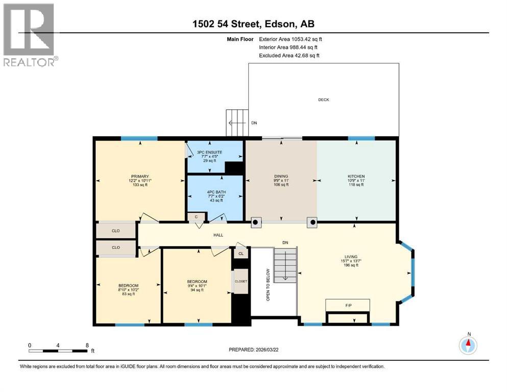 Solid bi-level home ideally located in the desirable Tiffin neighborhood of Edson. Offering a functional layout and generous living space, this home is perfect for families and those who love to entertain. Step inside to a bright and inviting main floor featuring large windows that fill the space with natural light and durable tile flooring. The living room offers a cozy wood-burning fireplace creating a warm and welcoming atmosphere. The spacious kitchen provides ample cabinetry, a convenient pantry cupboard, and flows seamlessly into the dining area—perfect for hosting family gatherings. From here, step out onto the back deck and enjoy easy access to the yard. The primary bedroom is generously sized and features a 3-piece ensuite and large closet. Two additional bedrooms and a 4-piece main bathroom complete the main level. Downstairs, the fully developed basement offers incredible versatility with a massive recreation room. Enjoy a dedicated TV area with a gas fireplace, along with additional space ideal for a pool table, home gym, or children’s play area. The lower level also includes a large 4th bedroom, a 3-piece bathroom, and a spacious laundry/storage room with direct access to the 24’ x 26’ attached garage. Recent updates include newly installed basement carpet (baseboards to be completed) and shingles replaced in 2025, providing added value and peace of mind. Outside, you’ll find a fully fenced backyard complete with a 10’ x 20’ deck and a 16’ x 12’ shed—perfect for outdoor living and storage. Double driveway and RV parking. Situated on a corner lot in a great neighbourhood, this home is conveniently located close to schools, parks, and all amenities. A fantastic opportunity to own a spacious family home in a prime location. (id:63190)