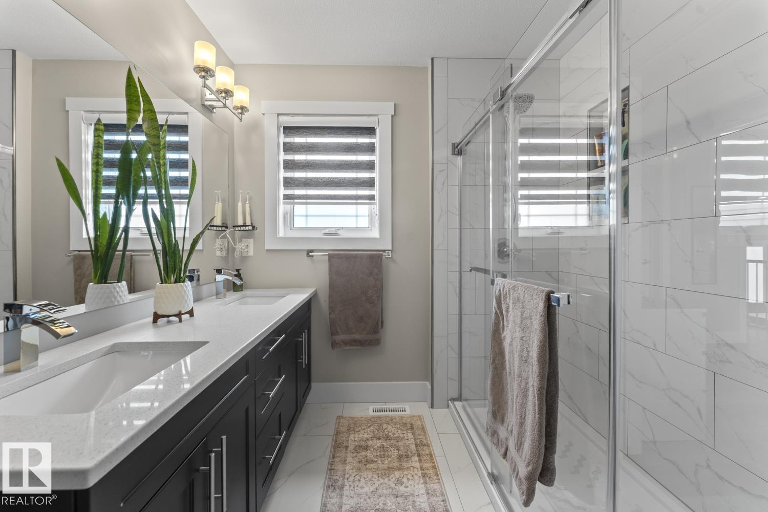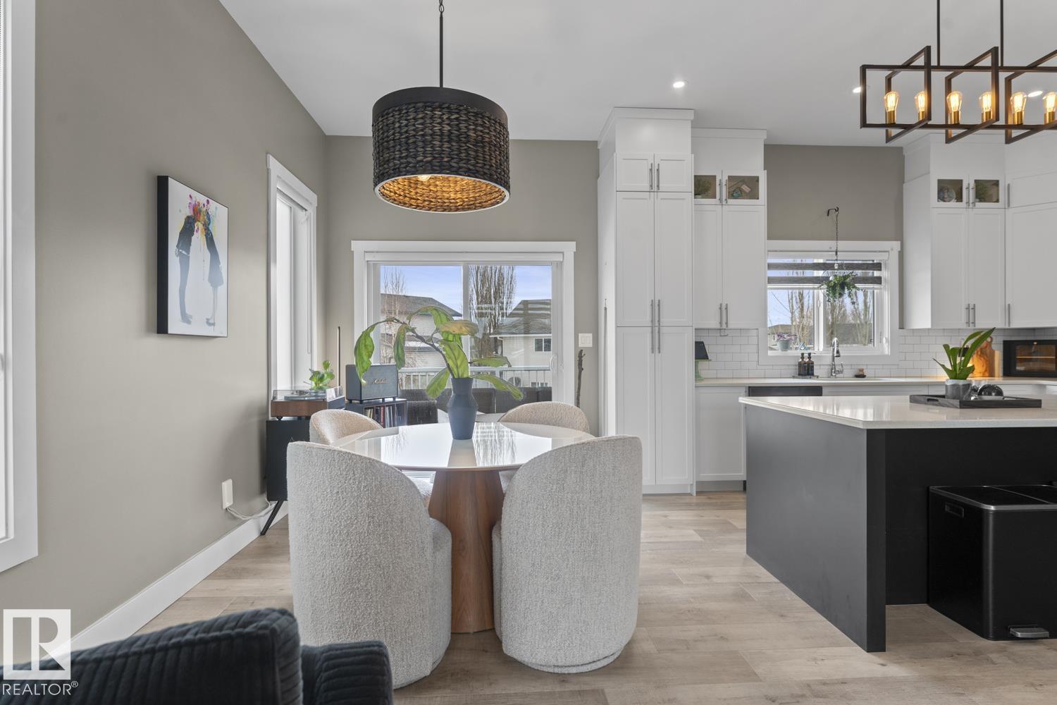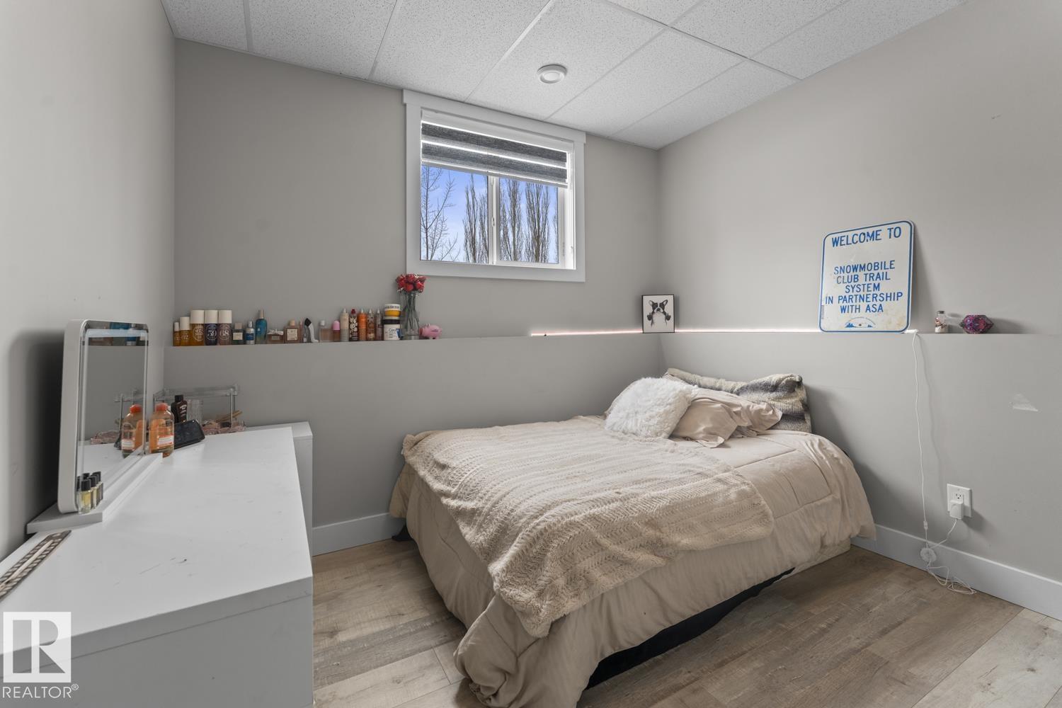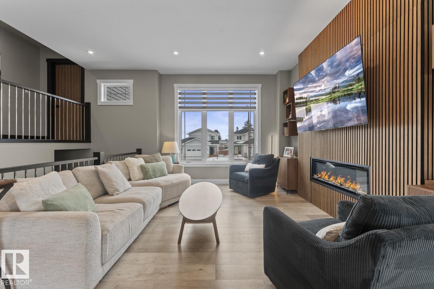 This modern 2021 bi-level in the sought out Nelson Heights neighbourhood has a fantastic location close to Kinosoo Beach & outdoor arena. Open concept with wood slat gas fireplace, spindle railings, custom window coverings, A/C and main floor laundry. 5 bedrooms, 3 bathrooms and a fully finished basement. Gourmet kitchen features a large centre island, quartz counters, SS appliances(gas stove) and chimney vent. Upper floor hosts the SPACIOUS primary bedroom with dual closets and a 4 piece ensuite with tiled shower and his/hers sinks .Lower level features a massive family room with heated floors. Upgrades to this home include NEW light fixtures, fireplace accent wall, custom window coverings, quartz counters throughout, no carpet, and central air. Outside you will find a nicely landscaped yard with trees, perennials & waterproof storage under the deck, fully fenced yard and back alley access. Attached heated double garage and oversized driveway. Basement will be painted before possession. (id:63190)