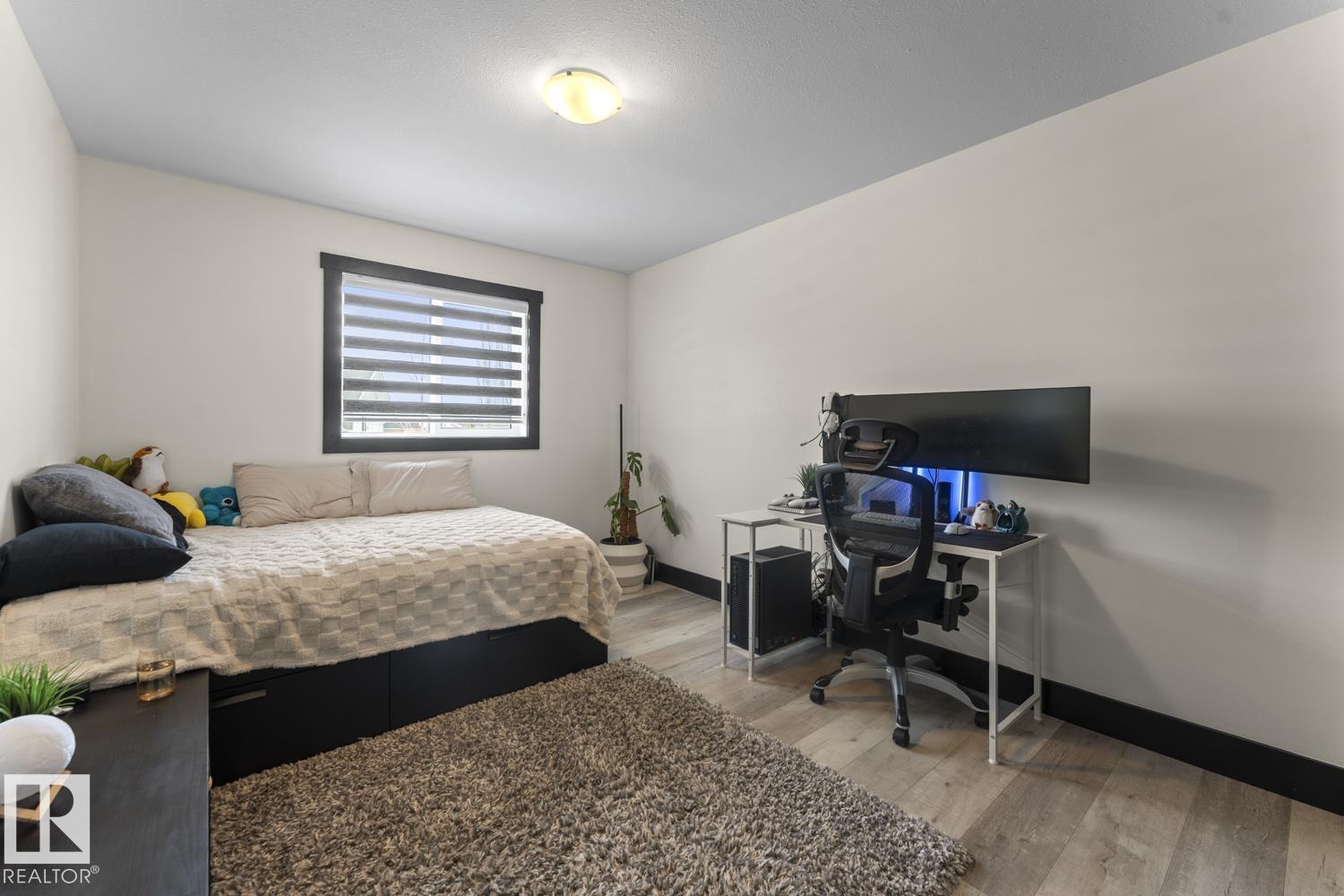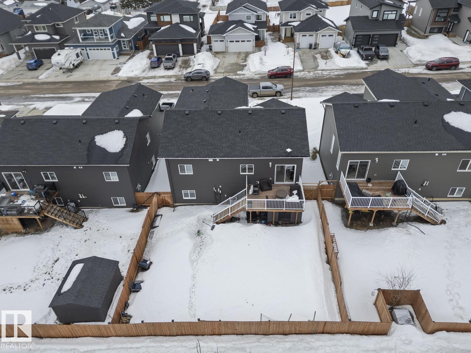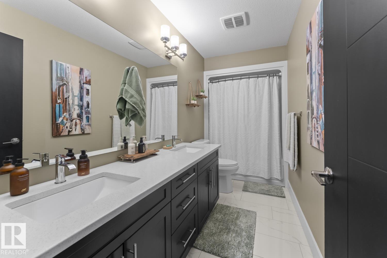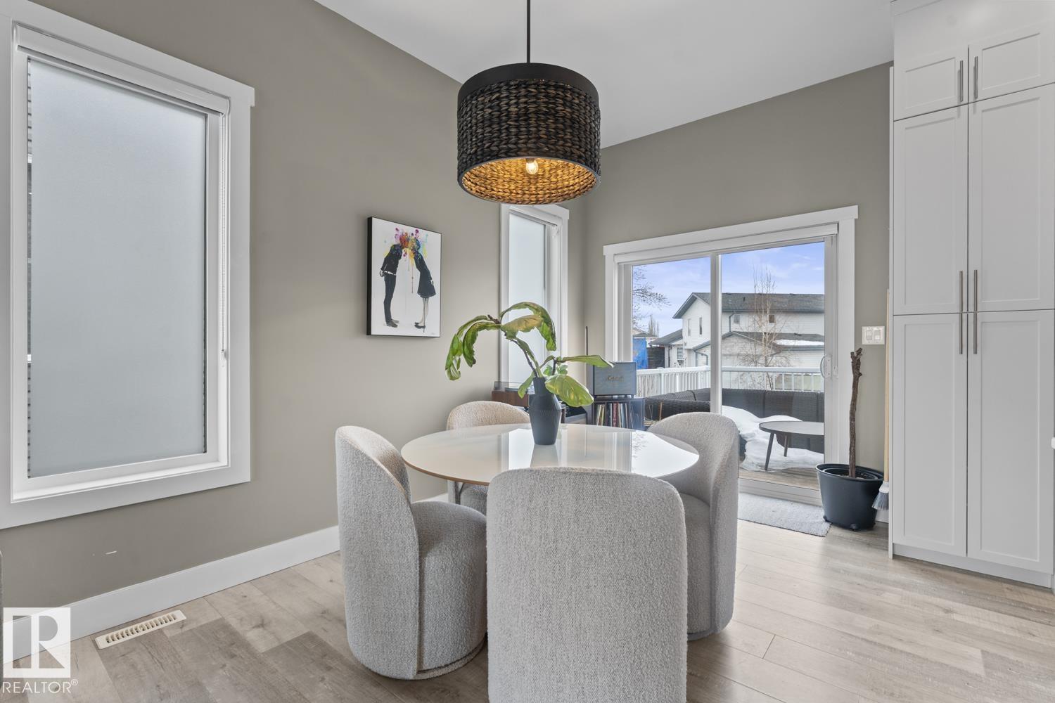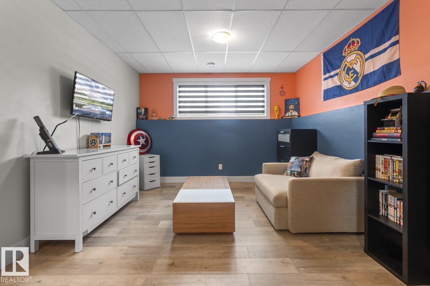 This modern 2021 bi-level in the sought out Nelson Heights neighbourhood has a fantastic location close to Kinosoo Beach & outdoor arena. Open concept with wood slat gas fireplace, spindle railings, custom window coverings, A/C and main floor laundry. 5 bedrooms, 3 bathrooms and a fully finished basement. Gourmet kitchen features a large centre island, quartz counters, SS appliances(gas stove) and chimney vent. Upper floor hosts the SPACIOUS primary bedroom with dual closets and a 4 piece ensuite with tiled shower and his/hers sinks .Lower level features a massive family room with heated floors. Upgrades to this home include NEW light fixtures, fireplace accent wall, custom window coverings, quartz counters throughout, no carpet, and central air. Outside you will find a nicely landscaped yard with trees, perennials & waterproof storage under the deck, fully fenced yard and back alley access. Attached heated double garage and oversized driveway. Basement will be painted before possession. (id:63190)