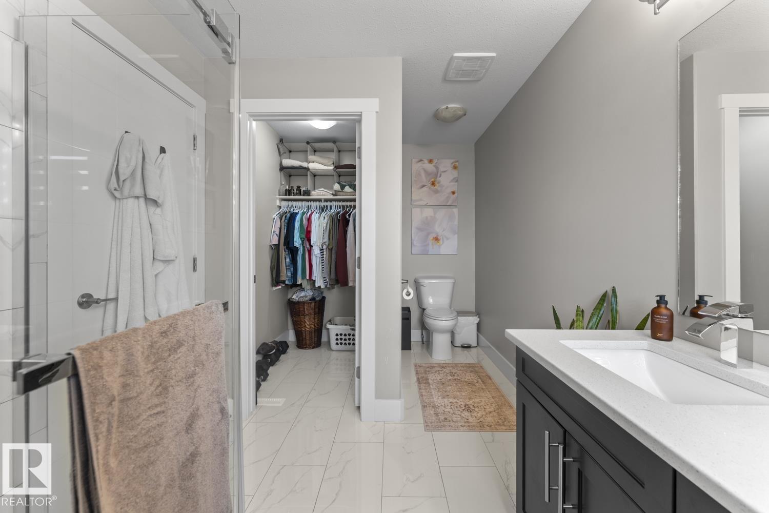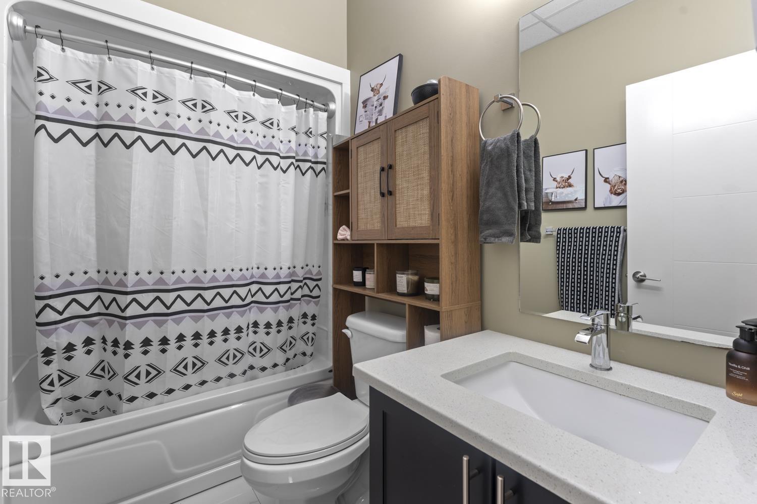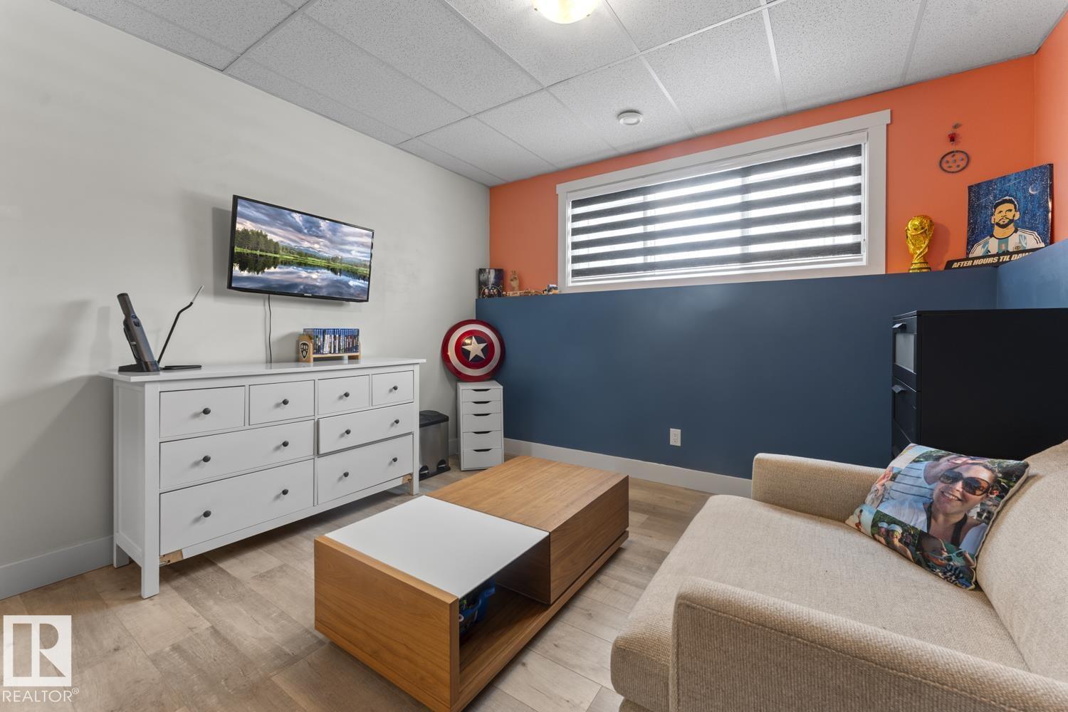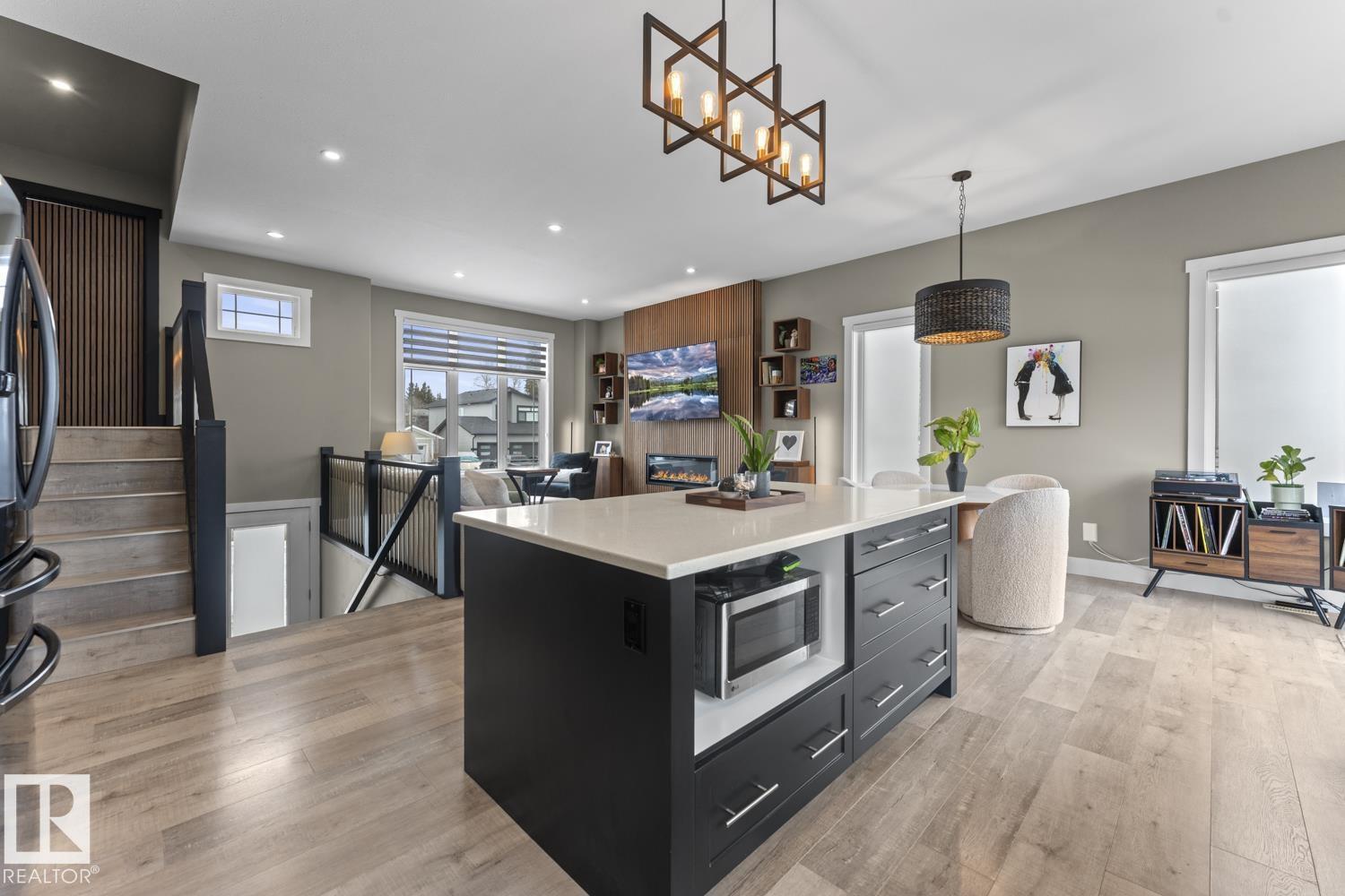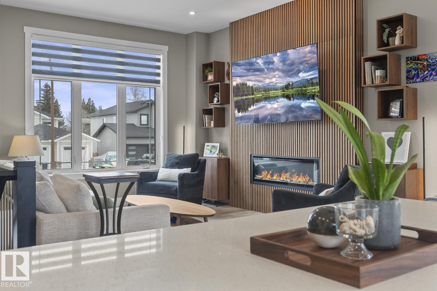 This modern 2021 bi-level in the sought out Nelson Heights neighbourhood has a fantastic location close to Kinosoo Beach & outdoor arena. Open concept with wood slat gas fireplace, spindle railings, custom window coverings, A/C and main floor laundry. 5 bedrooms, 3 bathrooms and a fully finished basement. Gourmet kitchen features a large centre island, quartz counters, SS appliances(gas stove) and chimney vent. Upper floor hosts the SPACIOUS primary bedroom with dual closets and a 4 piece ensuite with tiled shower and his/hers sinks .Lower level features a massive family room with heated floors. Upgrades to this home include NEW light fixtures, fireplace accent wall, custom window coverings, quartz counters throughout, no carpet, and central air. Outside you will find a nicely landscaped yard with trees, perennials & waterproof storage under the deck, fully fenced yard and back alley access. Attached heated double garage and oversized driveway. Basement will be painted before possession. (id:63190)