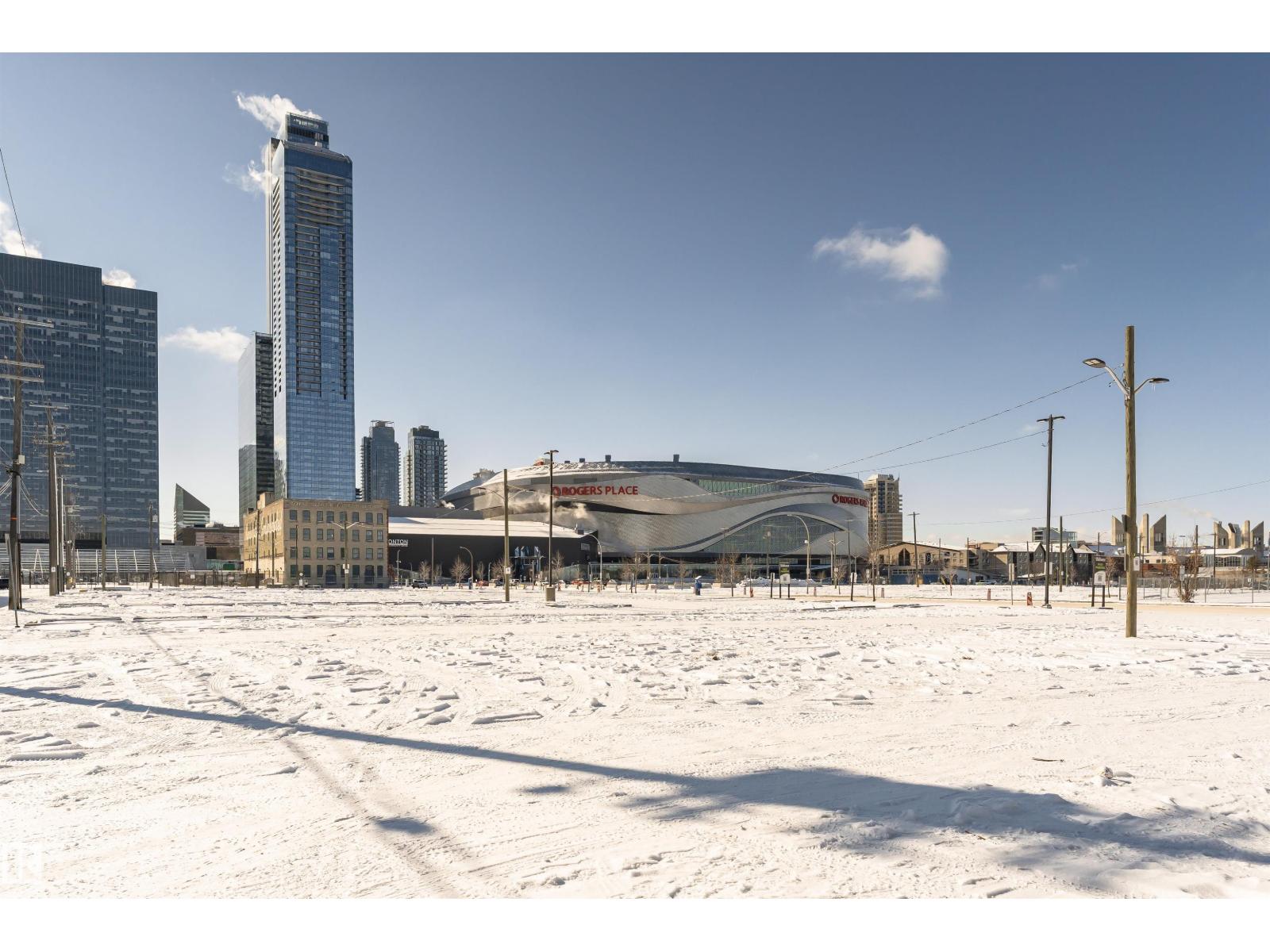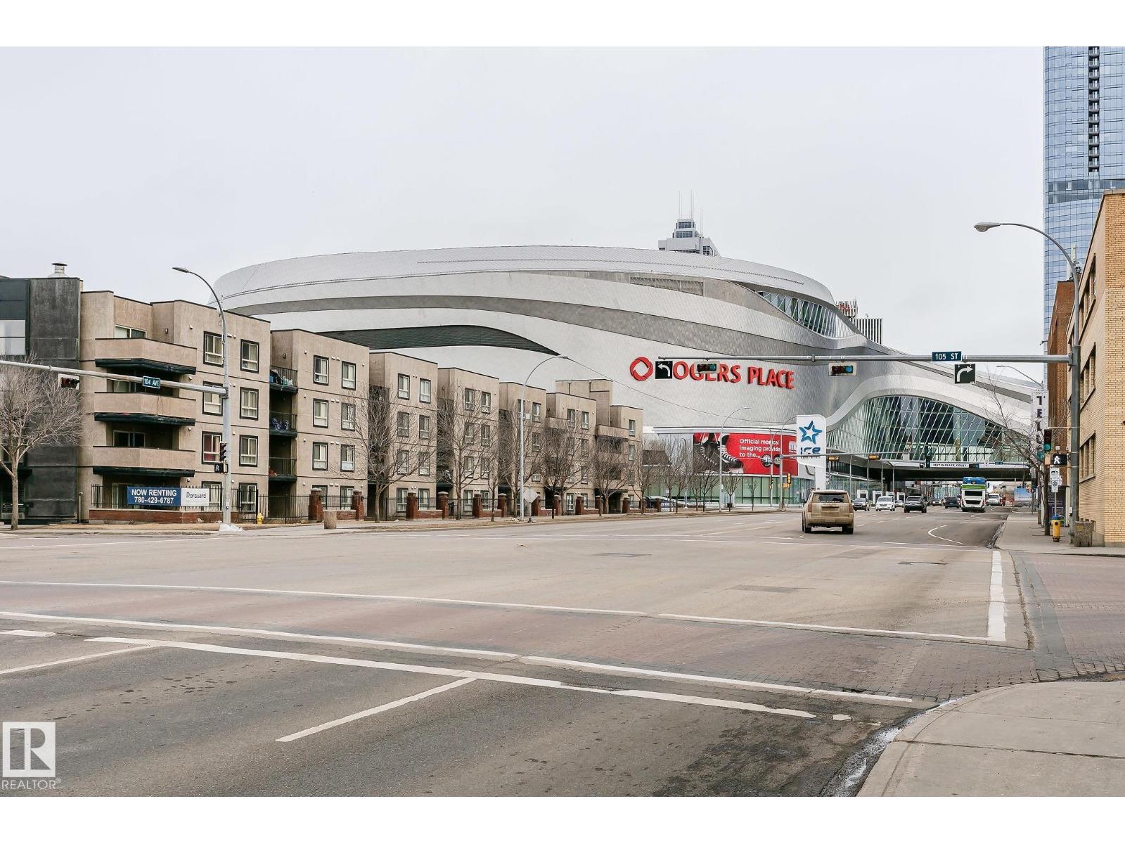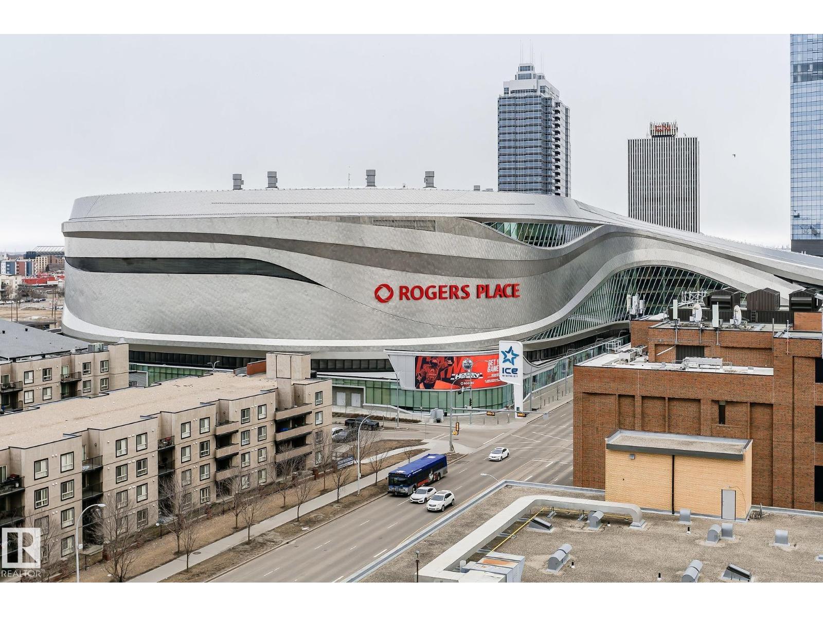 INVESTORS/AIRBNB,FIRST TIME BUYERS, STUDENTS ALERT ! Turnkey 2 bed, 2 bath condo located just steps away from Rogers Place and the ICE District then this unit is for you! This beautiful 1125sqft corner unit has an open concept design perfect for entertaining. Kitchen complemented with espresso cabinetry, large island, and S.S. appliances. Spacious dining room! Living room with corner gas fireplace and sliding glass door to your large patio complete with gas line for summer BBQs. Primary room offers walk-in closet and 3pc en-suite. Great size 2nd bedroom and 4pc main bath. In-suite laundry and storage room, central AC, and HEATED underground parking. Secure entrance to the building. NY style courtyard. Close to downtown core, City Center, LRT station, EPCOR Centre, Grant McEwan University, and Royal Alex Hospital. Great VALUE ! (id:63190)