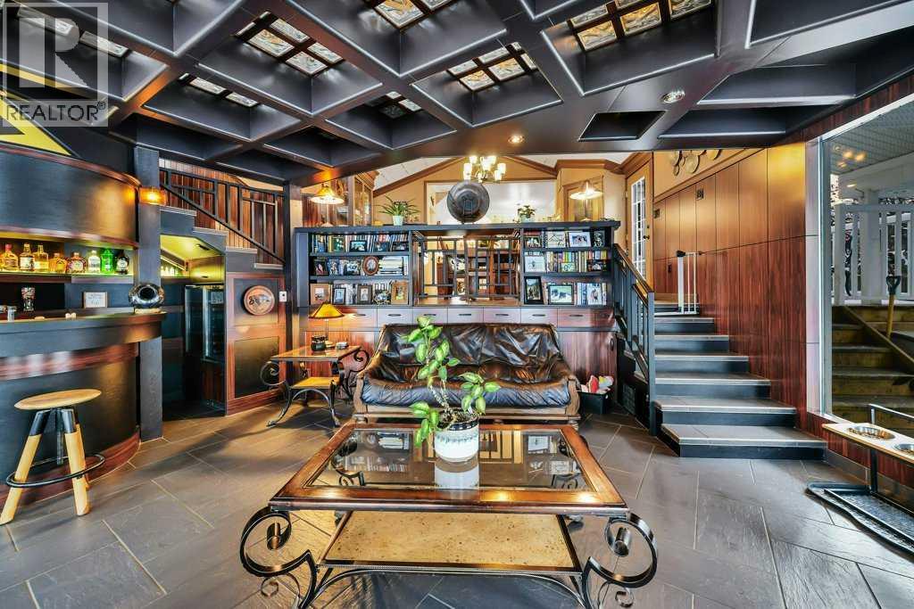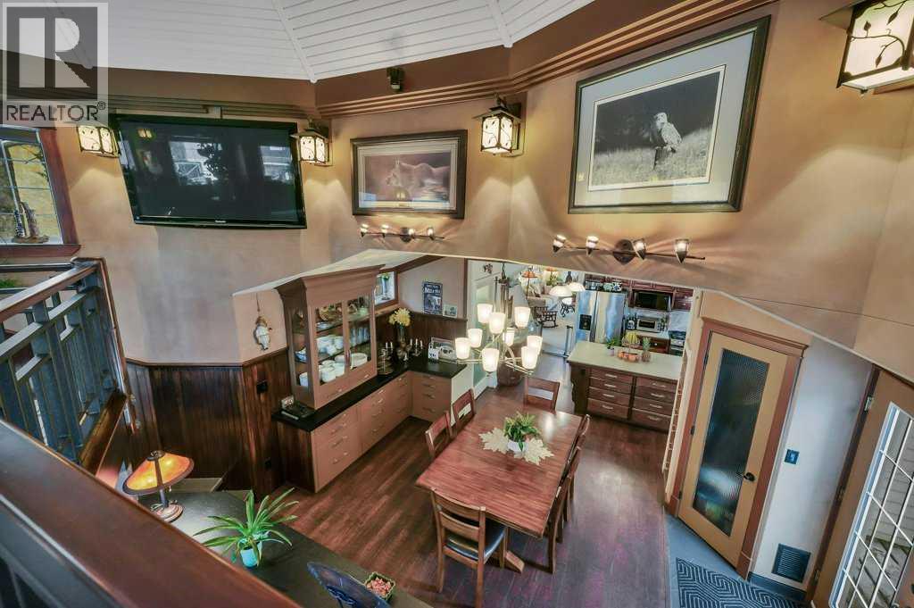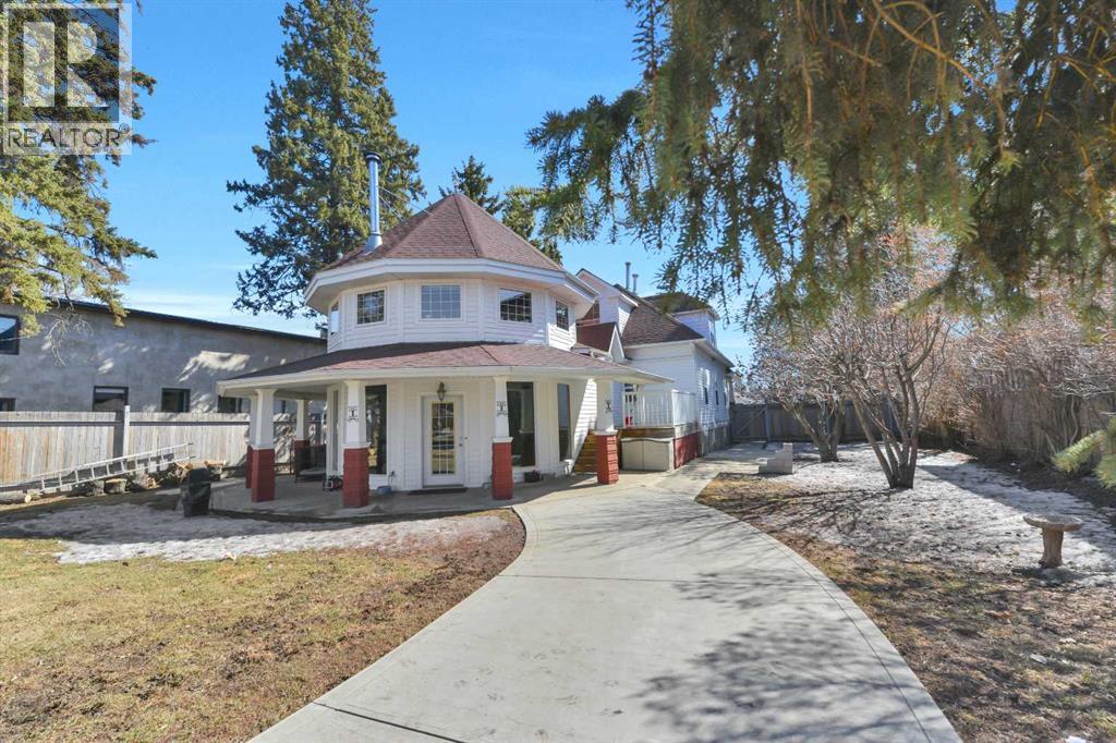 Welcome to this beautifully restored century home along the heart of Lacombe! Guaranteed you’ve never laid your eyes upon such a unique and incredible property such as this. The classic features of bold crown molding and sophisticated wainscotting in this turn of the century home have been preserved and yet modern upgrades make this home truly one of a kind. The warm kitchen features a downdraft gas stove and provides an amazing amount of storage with plenty of counterspace. The adjacent dining room opens over to the “turret” section of this home which features a lower den/sitting area with in-floor heat and a built in wet bar. Up above supports a loft area with glass flooring blocks for added ambiance to this multi-media room. The entirety of the original second story of this home has been renovated to host the primary bedroom and living area, complete with a 4 piece bath, integrated dressing table, and workout room. As well, there are two walk-in closet areas with an abundance of storage and “cubbies” and even a laundry chute for your convenience!!! Out back along the ally is another amazing feature of this property. A 3 bay (one is a pass-through) 25x40 garage with in-floor heating run approx 18” outside the walls, lower cellar section, dry sump, water feed from the house, and an upper mezzanine level. It isn’t difficult to imagine what you can make of a place like this! The property itself is a whopping 0.4 acres and allows for two RV or trailer parking spots on either side of the garage and more parking outside the garage doors. Outdoor lighting on both the garage and the house have been upgraded to LEDs and two power points have been run into the yard for future lighting post considerations. A new hot tub has been installed outside along the turret where the in-floor heat has been run approx 18” outside the walls to keep your path clear and warm in the winter months. There are so many amazing details and features here that it simply cannot be entirely detailed in this description. (id:63190)