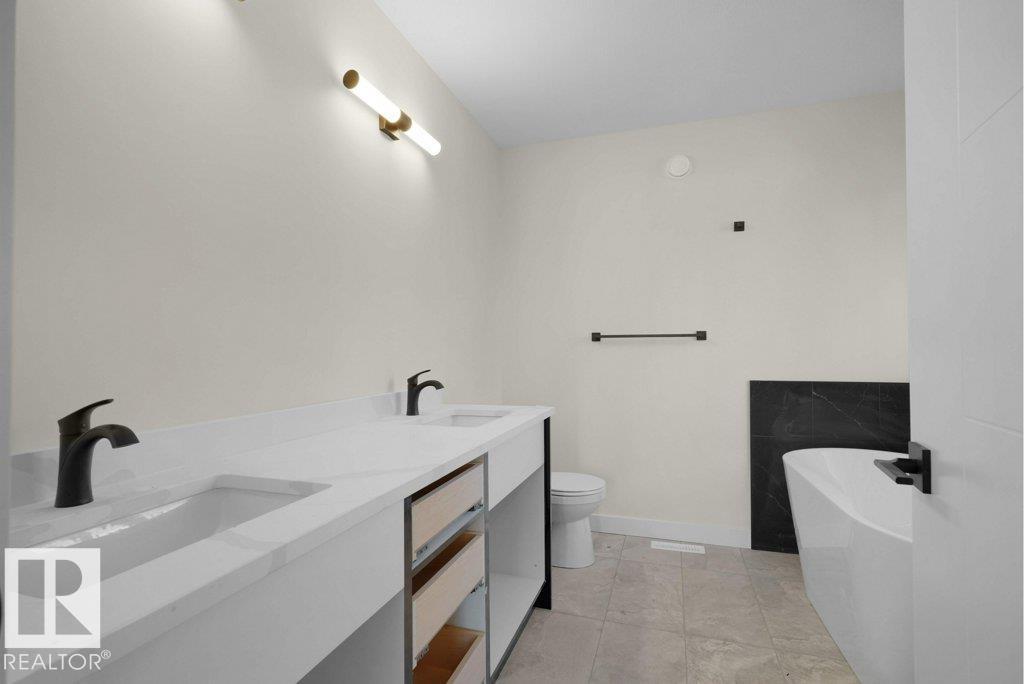 Welcome to brand new detached single family home with very good floor plan, lot of upgrades and SIDE ENTRANCE. The main floor has open concept plan with Living Room, Kitchen and dining. The large living room has big windows and fireplace. The kitchen has lot of counter space with Quartz Countertops, large island, tiled back splash and upgraded cabinets. The 9’ main floor comes with wall and ceiling features and lot of pot lights. The upper floor has 3 spacious bedrooms. The Master Bedroom is large and has walk in closet and ensuite with double sink, bathtub and shower. The other two bedrooms are good size and also a full washroom and laundry room on upper floor. The legal suite basement has big family room with 2 bedrooms and full bathroom. It is located close to University of Alberta and hospital and with easy access to transit station. The house is under construction and expected to finish by June 2026. Photos from the similar house built by the same builder. (id:63190)