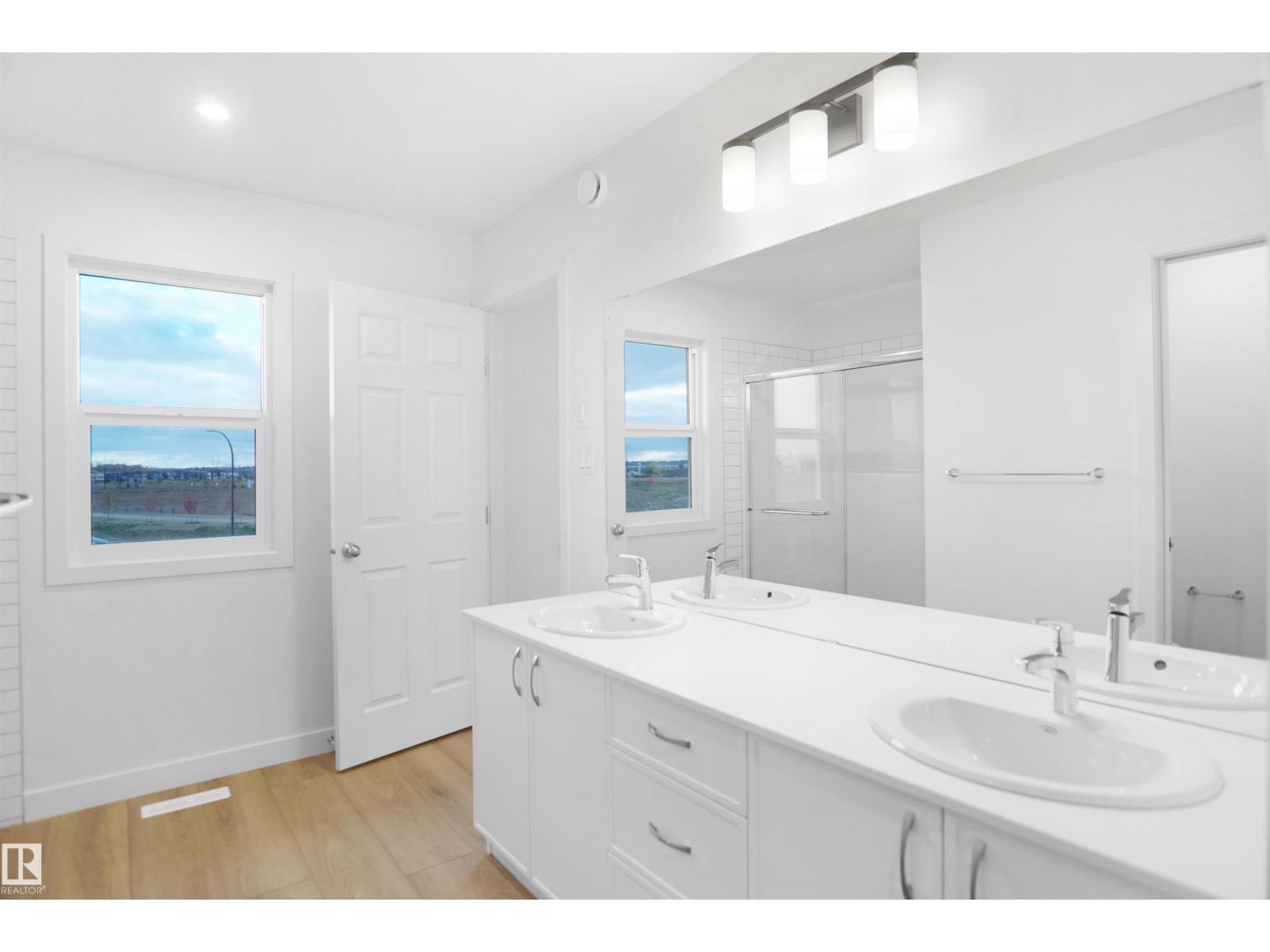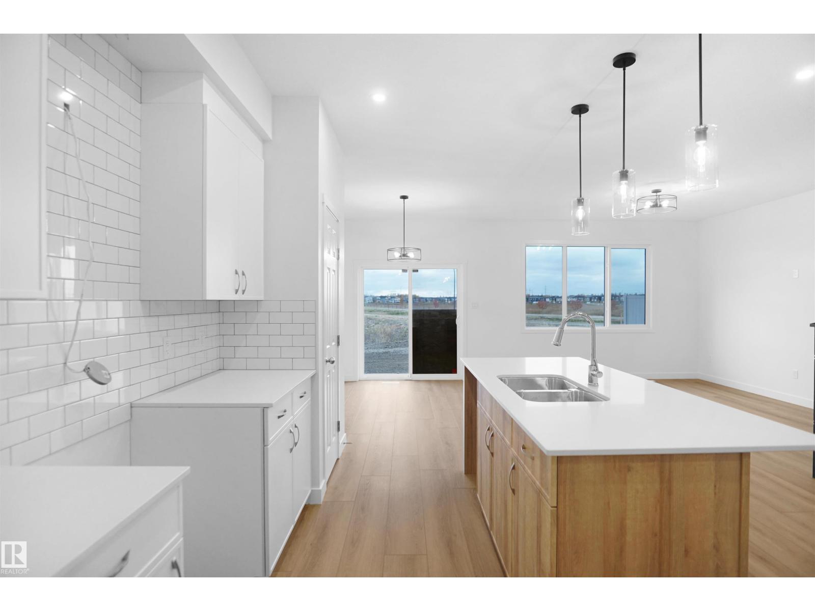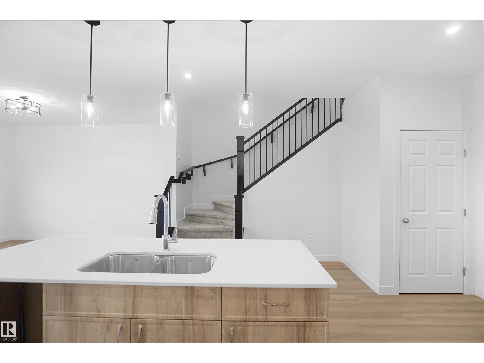 Welcome to the Kaylan built by the award-winning builder Pacesetter homes and is located in the heart of Rivers Edge and just steps to the neighborhood parks and walking trails. As you enter the home you are greeted by luxury vinyl plank flooring throughout the great room, kitchen, and the breakfast nook. Your large kitchen features tile back splash, an island a flush eating bar, quartz counter tops and an undermount sink. Just off of the kitchen and tucked away by the front entry is a flex room which could be used as a bedroom and a 4 piece bath. Upstairs is the primary retreat with a large walk in closet and a 4-piece en-suite. The second level also include 2 additional bedrooms with a conveniently placed main 4-piece bathroom and a good sized bonus room. Close to all amenities and easy access to the Henday. This home is now move in ready ! (id:63190)