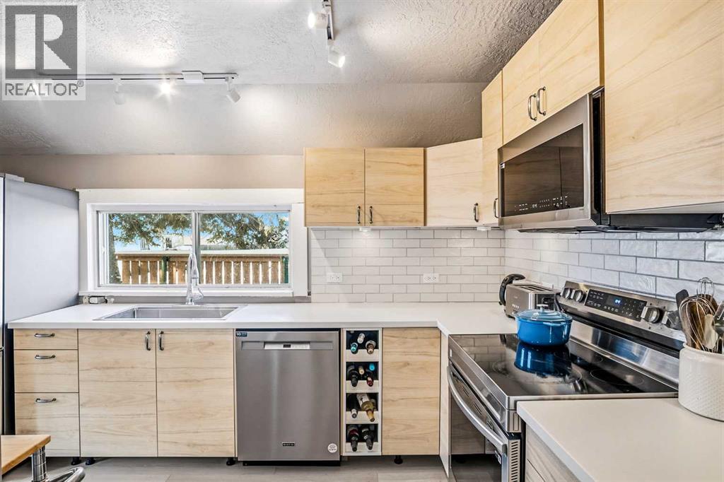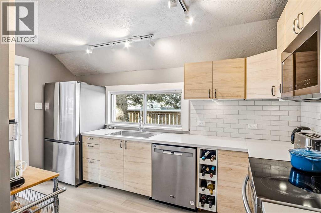 UPDATED BUNGALOW | HEATED GARAGE | METAL ROOFS ~ MOVE IN READY 924 sq ft 3-bedroom bungalow with recent updates! The bright, functional layout features a fully renovated kitchen and bathroom and is complemented by new flooring throughout. Enjoy peace of mind with a newer furnace and hot water tank. Step outside to a large rear deck overlooking a spacious, fully fenced yard—perfect for relaxing or entertaining. The impressive 26’ x 28’ garage is insulated and heated, ideal for year-round use, storage, or a workshop. Both the home and garage feature durable metal roofs for long-term value. Located in a desirable area close to schools, parks, and shopping, this property offers excellent convenience for families, first-time buyers, or downsizers. A great opportunity to own a updated home with a standout garage! (id:63190)