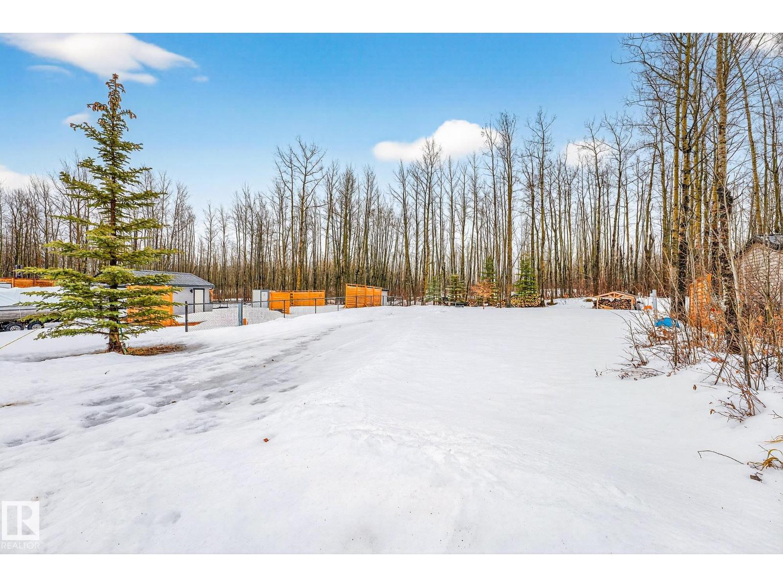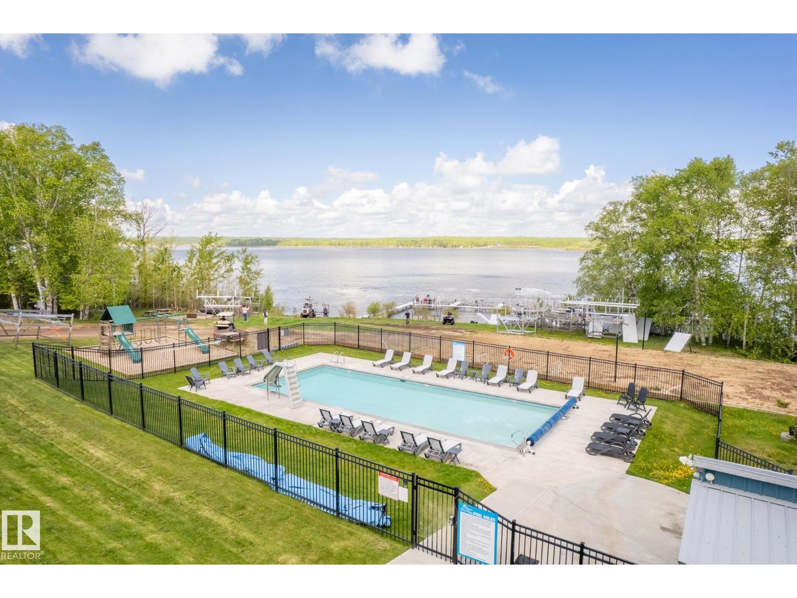 Looking for a stellar place for 5 star camping or living? Only 45 mins west of Edm, Sunset Shores RV Resort offers full & part-time living for all ages. These titled strata lots are separately metered for power (30 & 50 AMP service) + direct hookups for CITY water/sewer incl. in the condo fee. This highly popular, RARE TREED PIE LOT is a whopping 6604 sq.ft plus backs onto a forested area. Has been professionally graded, several mature spruce have been planted via tree spade incl. a shade Elm tree. A building site has been prof. packed & prepped for a future garage! 30 second walk to the showers/washrooms & laundry facility, perfect when entertaining guests! Take the golf cart path/walking trails that cut to the lake/marina & be there in less than 5 mins! Condo fees include the use of all the amenities including boat launch/ resort dock, clubhouse w/ media rm & gym, tennis, pickleball & basketball courts, heated outdoor pool, beach volleyball & nature trails! This is such a fun resort & community! (id:63190)