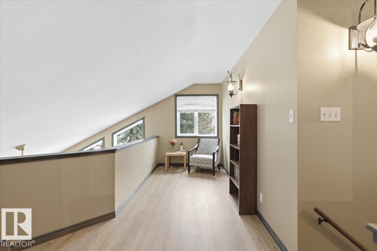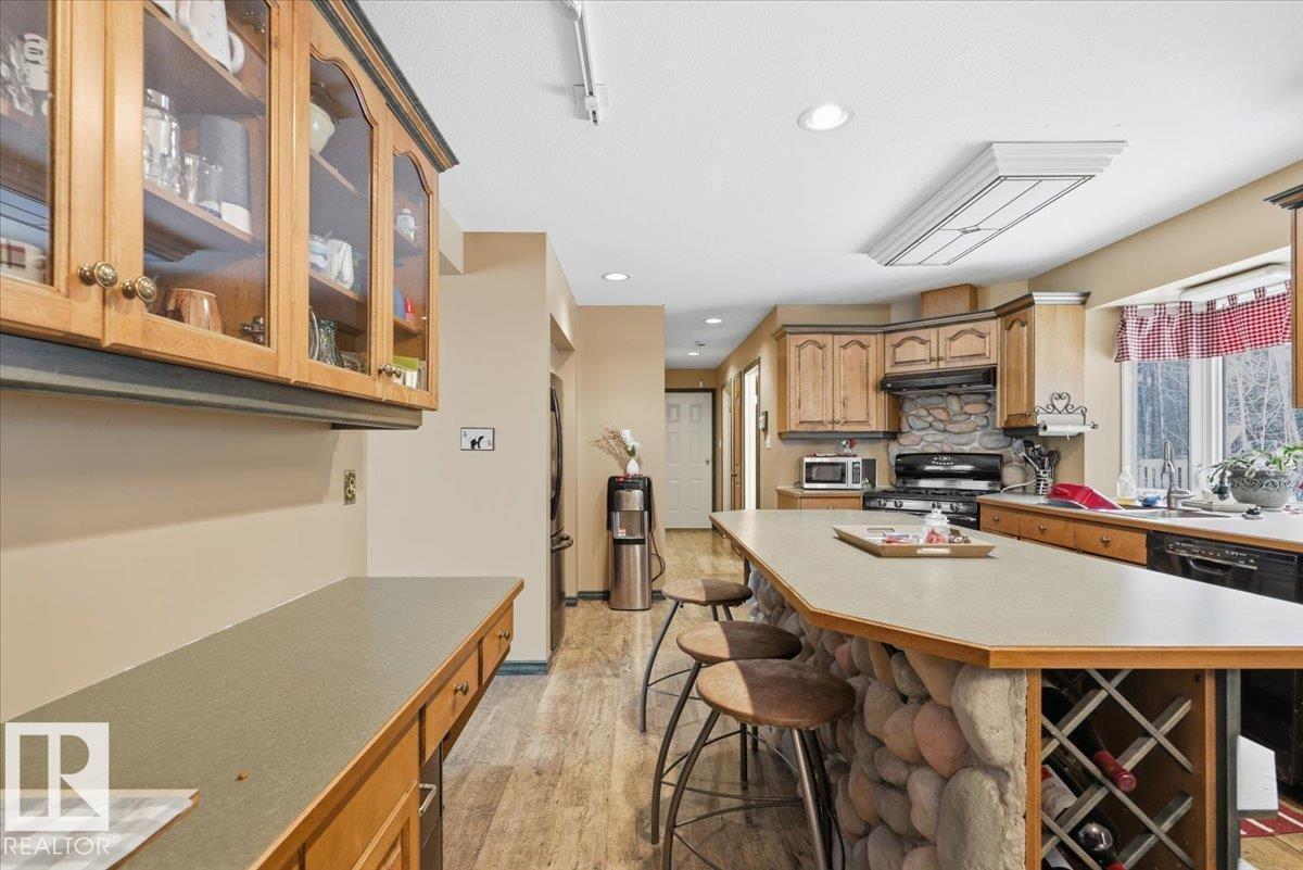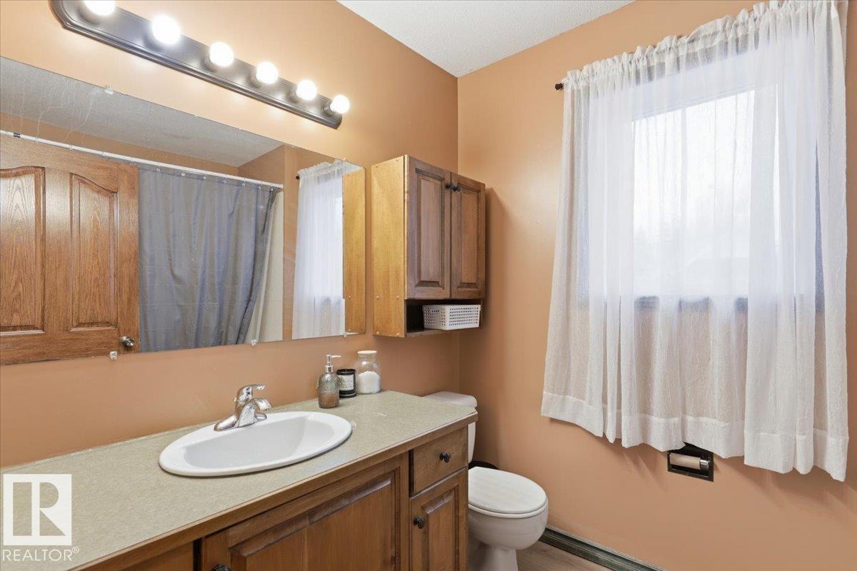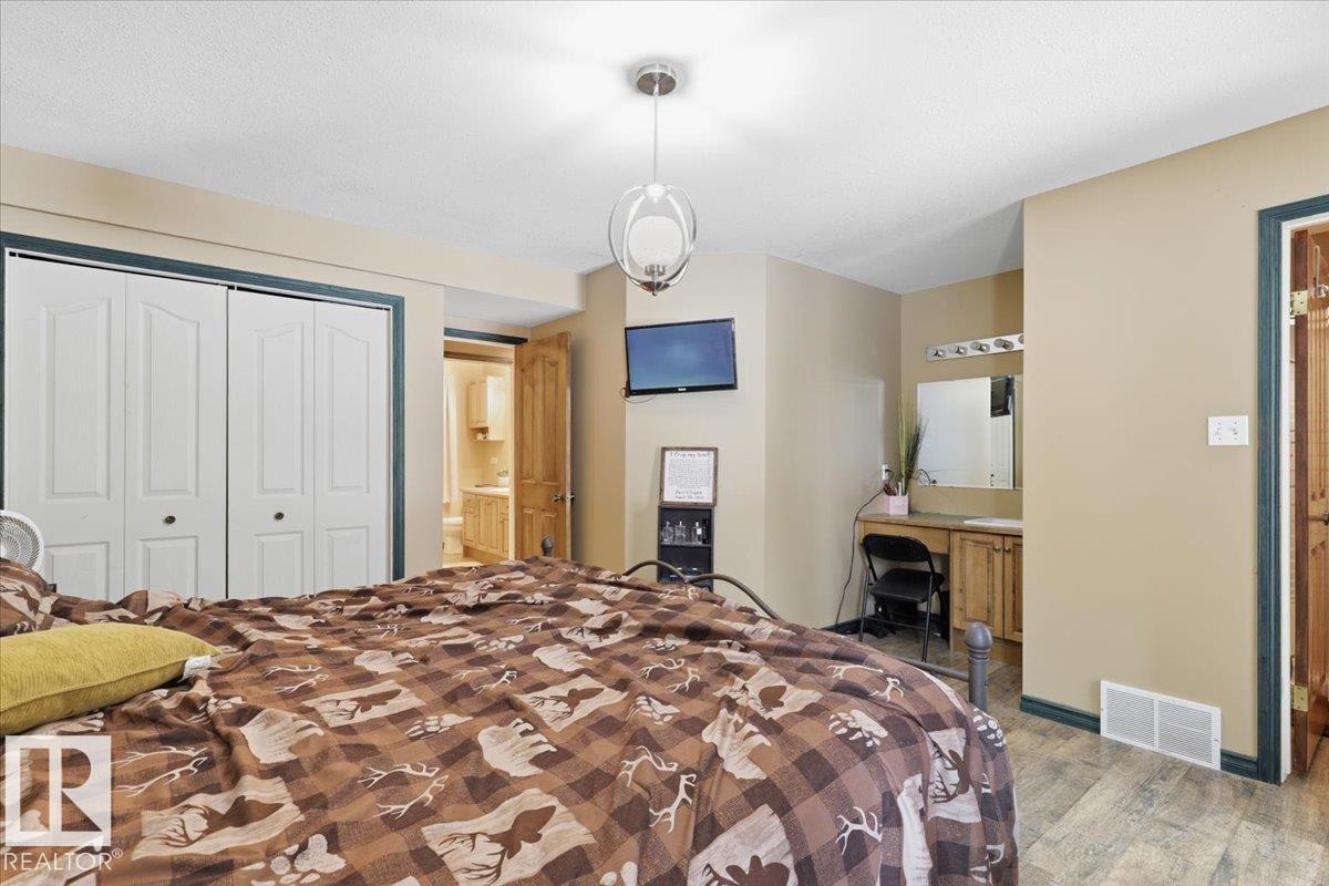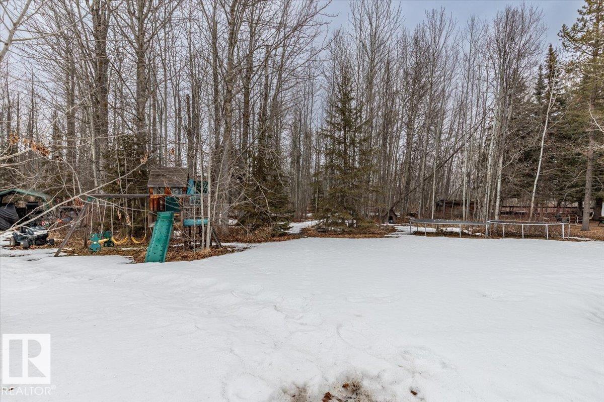 Located within walking distance to the Lake, sits this Country Style 1.5 Storey home with a Triple Detached Garage! Past the front covered deck and inside the home, the spacious living room greets you with large windows, a vaulted ceiling, and a stone fireplace. The kitchen has lots of cabinets, an island, and is open to the dining area. The Primary Bedroom is also situated on the main level with an ensuite bathroom and a make up desk with a sink. Another 2 piece bathroom, and the laundry room conclude the main floor plan. The upper level hosts a loft, office, two more bedrooms, and a 4 piece bathroom. A large deck off the back of the home overlooks the spacious, treed backyard. The large Triple detached garage is heated with a cement floor, power, and has a guest suite off the back. This Property is the perfect blend of country living, and life at the lake! (id:63190)