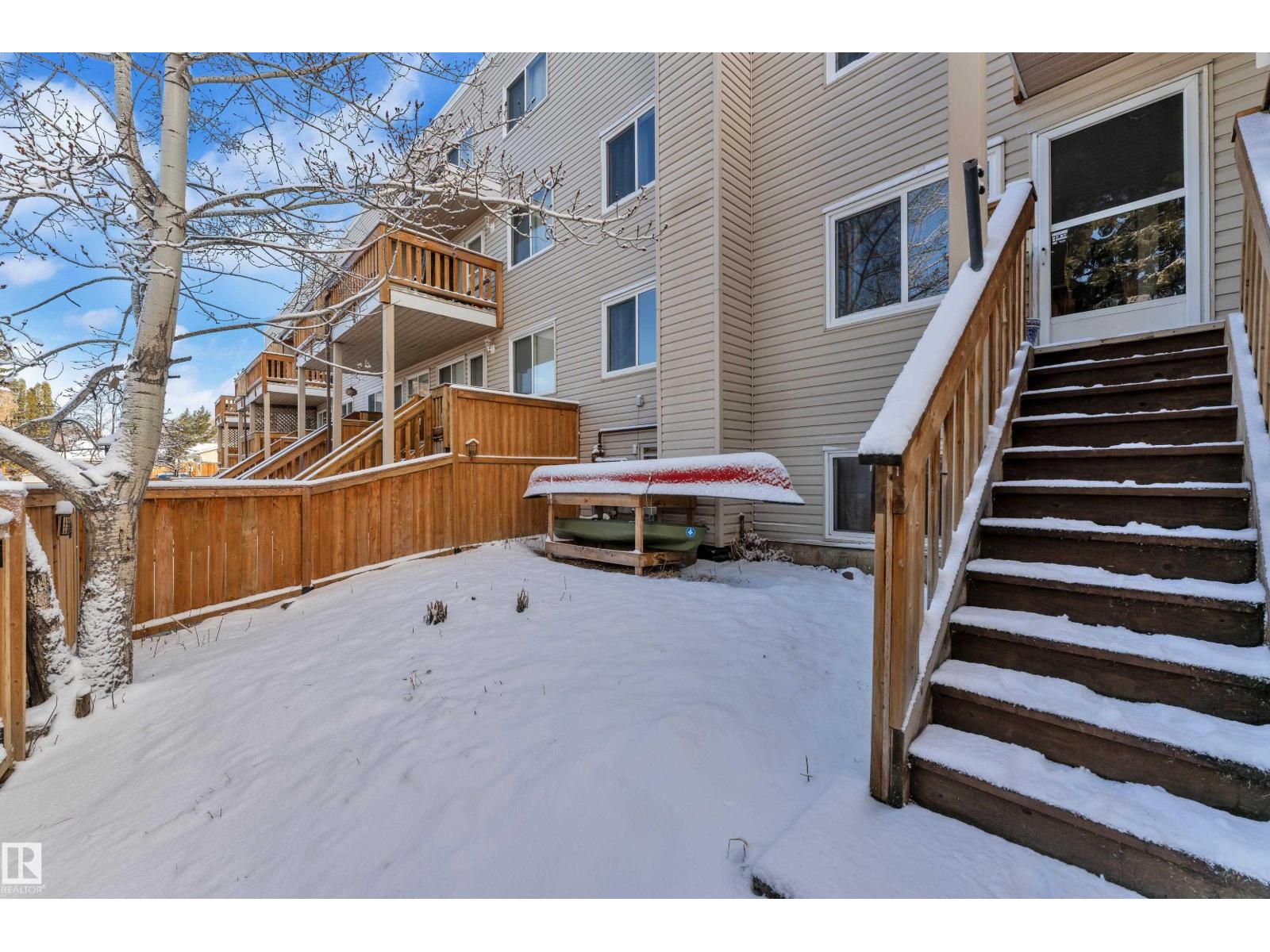 Welcome to Lacombe Estates in St. Albert! This well-maintained multi-level condo, fully rebuilt in 2006, offers a functional and inviting layout perfect for comfortable living. The main floor features a bright living room, dining area, oak kitchen with ample cabinetry, a versatile den, and a convenient 2-piece bath. Step outside to your private deck with stairs leading to a rare personal backyard with direct street access. The lower level includes two spacious bedrooms, a full 4-piece bath, a cozy flex area, and in-suite laundry. Complete with a full set of appliances and a large storage room, this home is move-in ready. Located in a quiet, well-managed complex close to parks, schools, shopping, transit, and easy access to Anthony Henday. Perfect for first-time buyers, investors, or downsizers. A great opportunity in a desirable community—don’t miss out ! (id:63190)