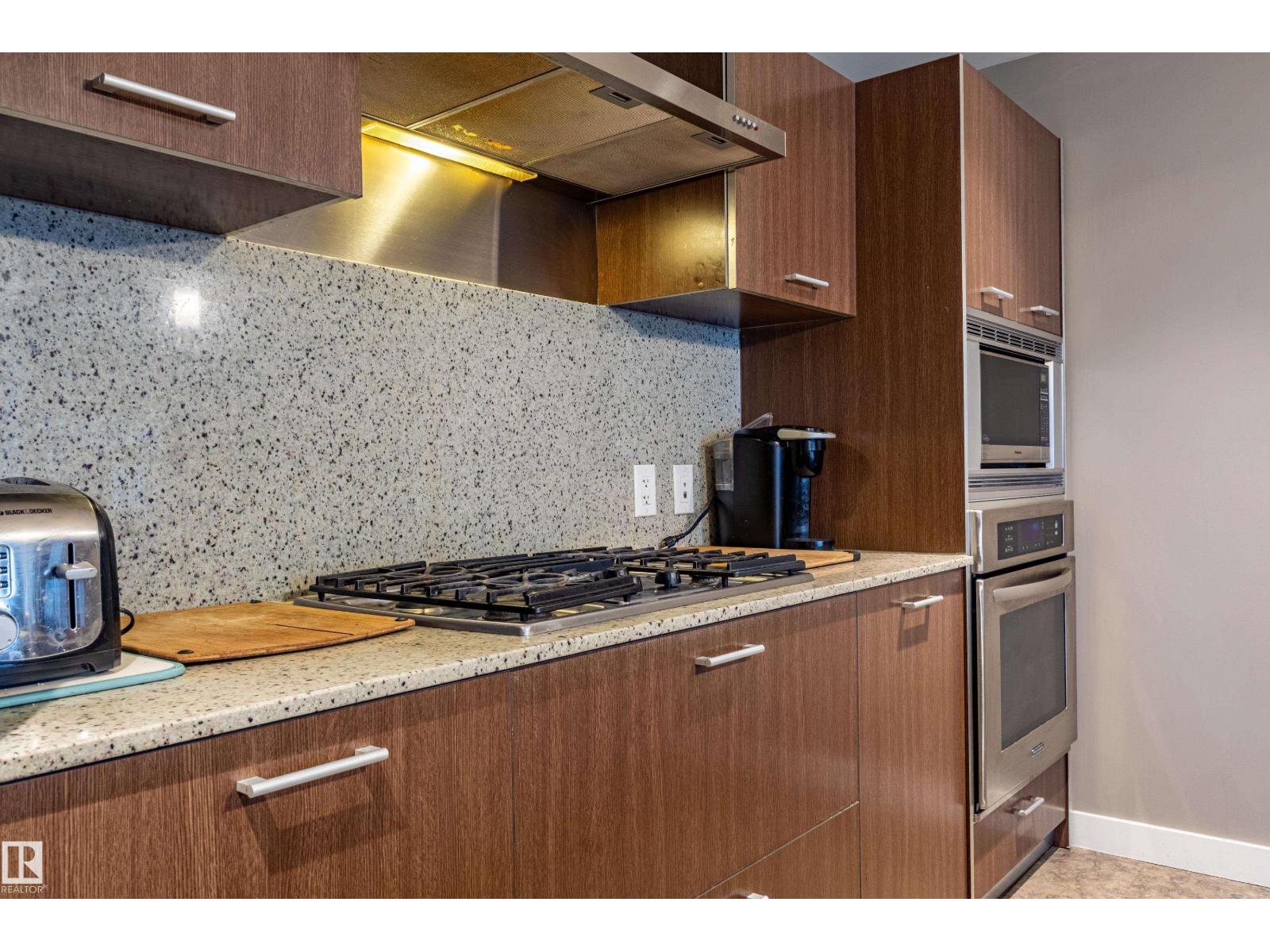 Welcome to this beautifully maintained 970 sq.ft. 2-bedroom, 2 full bathroom unit in One Century Park! This south-facing home offers abundant natural light and a peaceful courtyard view from your private balcony - perfect for relaxing or entertaining. Featuring 9’ ceilings and an open-concept layout, the space is both functional and inviting. The kitchen is thoughtfully designed with granite countertops, under-mount sinks, marble backsplash, stainless steel appliances, and ample cabinetry, flowing seamlessly into the living area with a cozy electric fireplace. The primary bedroom features a well-appointed ensuite with dual sinks and a separate shower. Additional highlights include in-suite laundry, heated underground parking, and a secure storage cage. Condo fees include all utilities plus internet access. Ideally located within walking distance to Century Park LRT, shopping, dining, and everyday amenities - perfect for professionals or investors. (id:63190)
