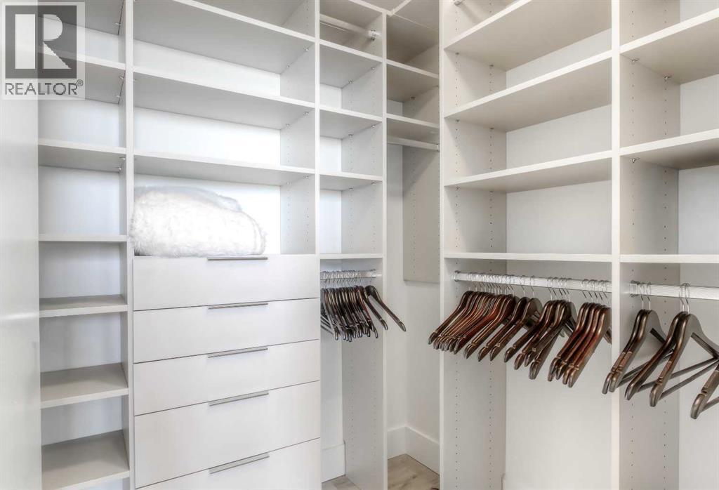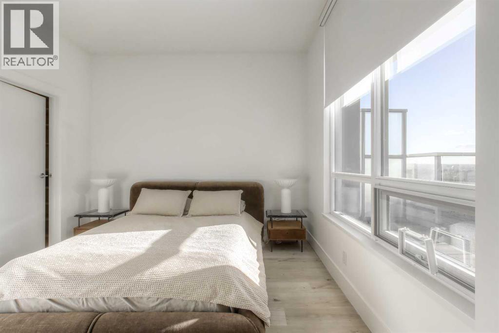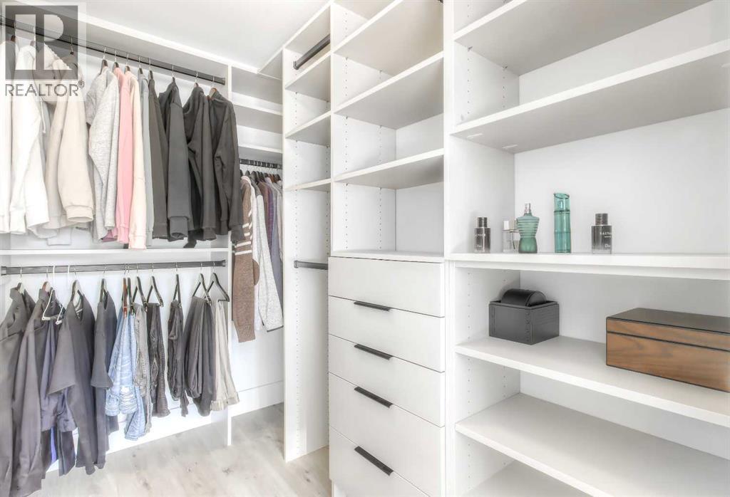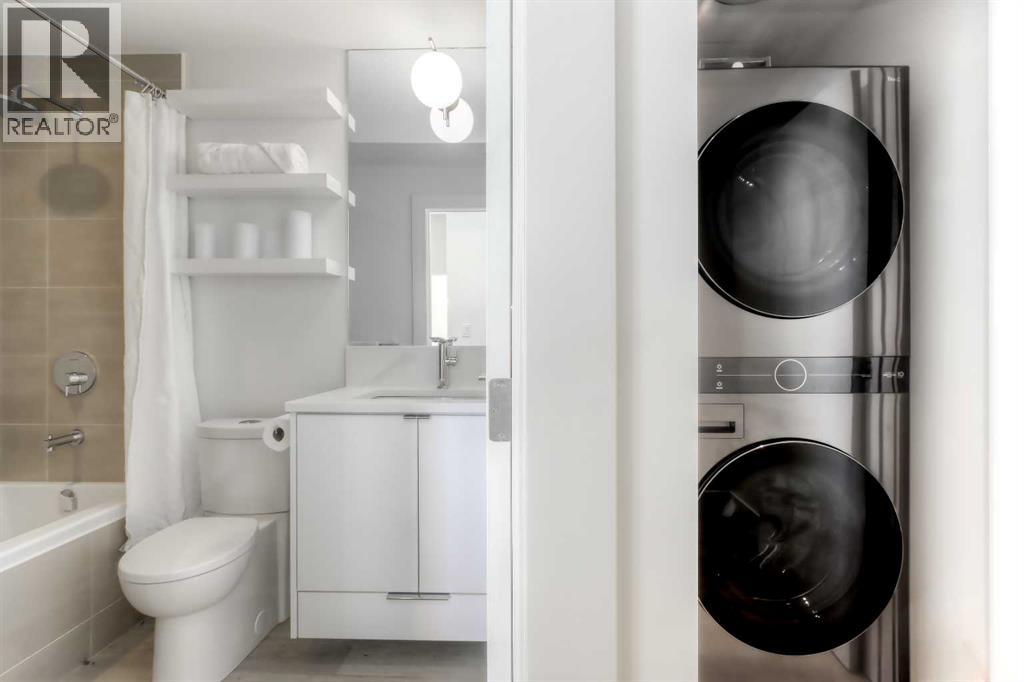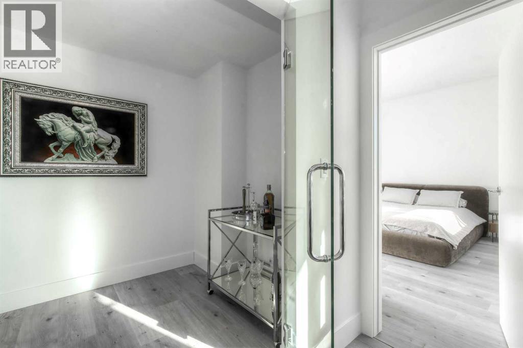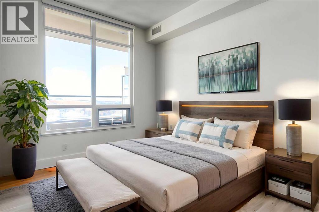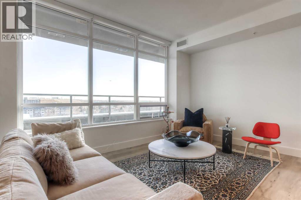 From the moment you walk in, this luxury penthouse in Bridgeland Crossings II will take your breath away, showcasing unobstructed east-facing views of Tom Campbell Hill. One of the largest homes in the complex, this top-floor concrete residence features two bedrooms, three bathrooms, and a den has undergone an extensive, high-end renovation with premium finishes and attention to every detail. The thoughtfully designed open-concept floor plan is ideal for modern living and entertaining, enhanced by soaring 10 feet ceilings, expansive windows, luxury laminate flooring, air conditioning, and solar-powered electronic blinds throughout. Natural light fills the living and dining areas, seamlessly connecting to the oversized balcony—an outdoor retreat complete with a gas line for barbecuing and the perfect spot to enjoy morning coffee or evening sunsets. At the heart of the home is a chef-inspired kitchen featuring custom cabinetry, quartz countertops, and a book matched waterfall Calacatta Suprema brushed quartz island. The premium appliance package includes top-of-the-line Bosch Benchmark Series appliances with an integrated panel-front refrigerator and dishwasher, a built-in microwave drawer, gas cooktop, and an LG 5.2 cu. ft. Black Stainless Steel WashTower. This intelligently designed layout offers two private bedroom suites positioned on opposite sides of the condo, each functional as a primary bedroom with its own ensuite. The main primary suite features a spacious walk-in closet with custom organizers and a luxurious four-piece ensuite appointed with premium satin brass Baril faucets and a Baril shower kit with a 10mm shower glass door. The second bedroom also enjoys its own ensuite bathroom, providing exceptional privacy and comfort. A third full bathroom is conveniently located for guests. Additionally, the den with glass doors provides a flexible space for a home office, study, or possible wine room. Both walk-in closets have been fully upgraded with custom storage solutions for optimal organization. This exceptional penthouse also includes two titled, side-by-side parking stalls (situated best in the complex) and a storage locker. Residents of Bridgeland Crossings II enjoy outstanding amenities, including two fully equipped fitness centers, a yoga studio, sports lounge/movie room, community gardens, an outdoor patio lounge with barbecues, dog wash station, guest suite, and bike storage. Located in one of Calgary’s most vibrant and sought-after communities, this home is steps from parks, pathways, trendy shops, cafés, and restaurants. Enjoy easy access to the Bow River Pathway System, Bridgeland C-Train Station, Murdoch Park, Calgary Zoo, Telus Spark, and the natural beauty of Tom Campbell Hill. This is more than a home—it’s a lifestyle. Don’t miss the opportunity to own this beautifully renovated, high-end penthouse and experience the very best of Bridgeland living. (id:63190)