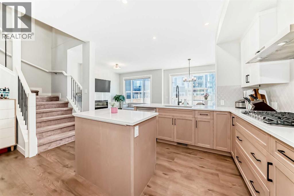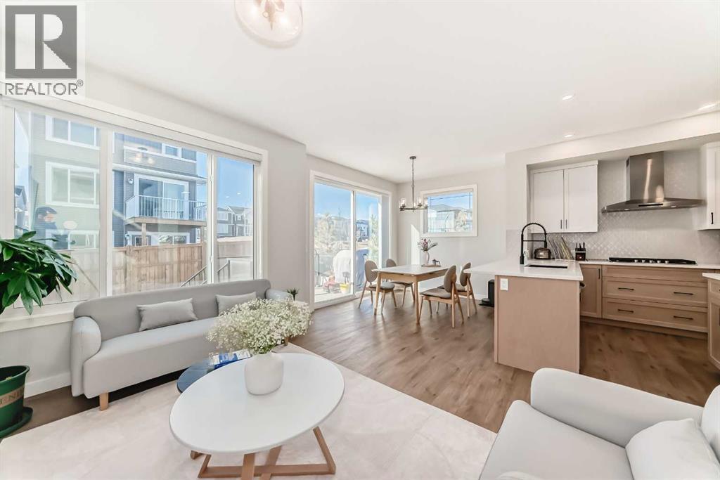 **Open House April 25 Saturday 1-3PM**Welcome to this stunning 3-storey home, perfectly situated on a TRADITIONAL CORNER LOT beside GREEN SPACE. Featuring windows on all four sides, open views, minimum sidewalk maintenance, and a west-facing backyard that bathes in afternoon sunlight, this home combines privacy and natural light. This smart home also includes triple-pane windows and a high-efficiency furnace for enhanced comfort and energy savings. Located within walking distance to future schools and offering easy access to parks, pathways, and major routes, shopping and amenities—including Costco, T&T Supermarket, and a variety of restaurants—are just 12 minutes away. Main floor impresses with 9’ ceilings, expansive windows, and Luxury Vinyl Plank flooring throughout, creating a bright and modern living space. A versatile flex room with a barn door and large window offers the perfect setup for a home office or additional living area. The open-concept great room is centered around an electric fireplace with a floor-to-ceiling tile surround, seamlessly connecting to an executive kitchen designed for both everyday living and entertaining. The kitchen features built-in stainless steel appliances, a chimney hood fan, waterline to fridge, a quartz island counter, and a spacious walk-in pantry. Step outside to the rear deck for effortless indoor–outdoor living. The second floor offers 3 spacious bedrooms, each featuring large walk-in closets, with two walk-in closet enhanced by windows that bring in abundant natural light. A bright bonus room with two windows provides the perfect space for family gatherings or entertainment. The third-level is an absolute standout, offering a vaulted ceiling, windows on all sides, and a private balcony. This top-floor space can serve as a future entertainment area or additional living space, with one side overlooking serene green space and the other offering expansive views stretching as far as the Livingston community. A convenient half bathroom on this level completes the space, making it perfect for family gatherings, relaxation, or entertaining. Don’t miss this exceptional opportunity—experience the perfect blend of style, functionality, and location. Schedule your private tour today and see all this home has to offer. (id:63190)