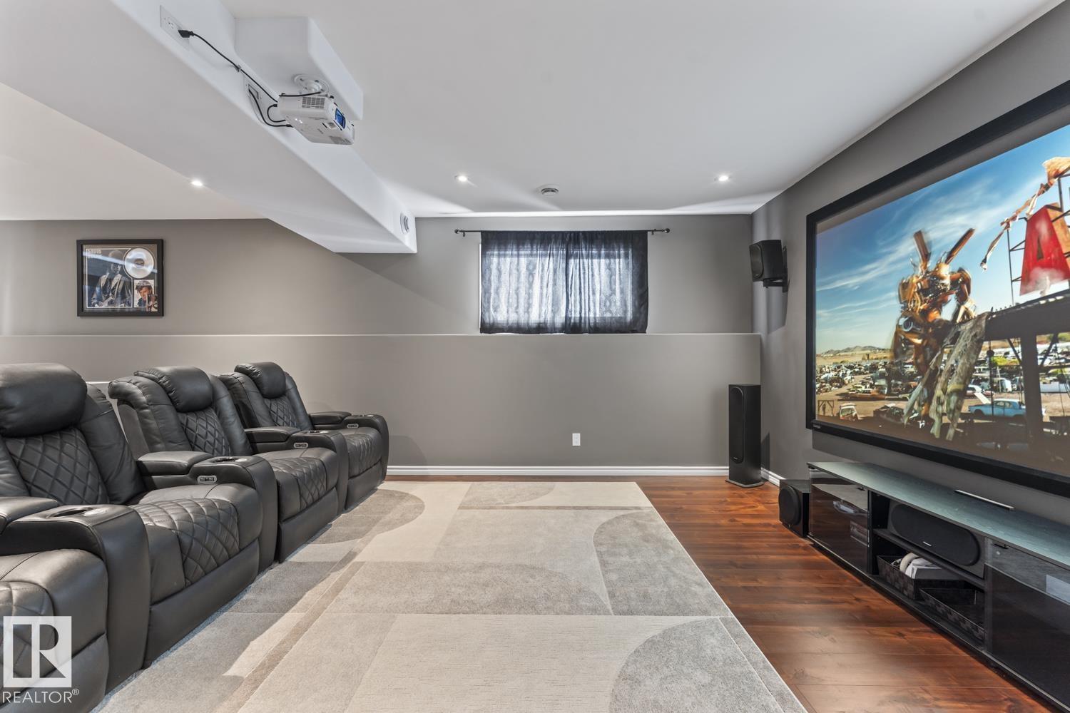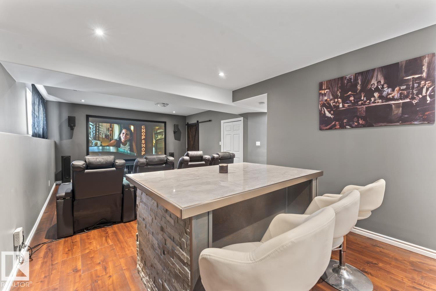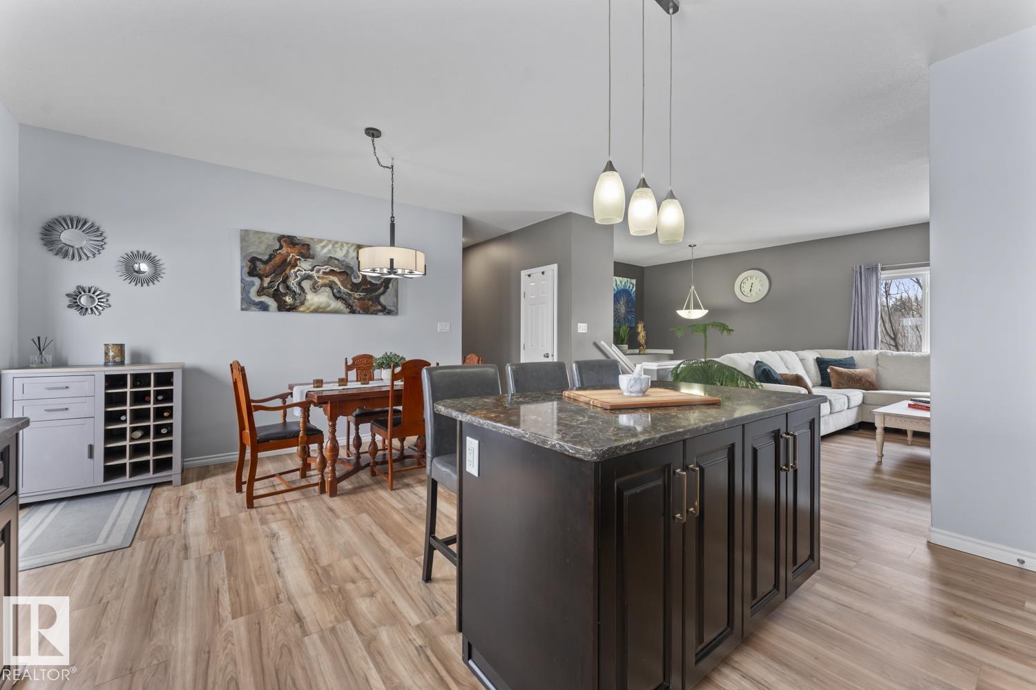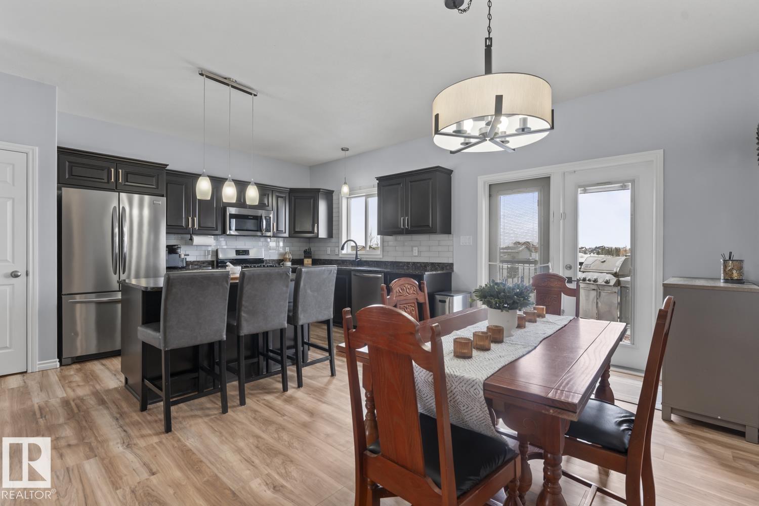 Immaculate family home, located in Countryside Estates, just minutes from Cold Lake North. This home has all the upgrades you need and more! Main floor features NEW quality laminate flooring throughout. Large living room is open to kitchen and dining - ideal for entertaining. Kitchen features NEW tiled backsplash, stainless steel appliances including gas stove and NEW microwave hoodfan. Dining room with access to large deck and backyard. 3 bedrooms on main level including primary with 3pc ensuite and walk-in closet. Basement has been fully finished and is warmed in inslab heat. Large family room with custom bar with island, plus huge theatre area with projection screen. Basement features 3 bedrooms and 4pc bathroom plus access to oversized 28x28 heated double car garage. Outside is an oasis with landscaping, FULLY FENCED yard, loads of mature trees surrounding the entire property, pool with deck area and crushed concrete driveway. This home and property are immaculate and shows 10/10!! (id:63190)