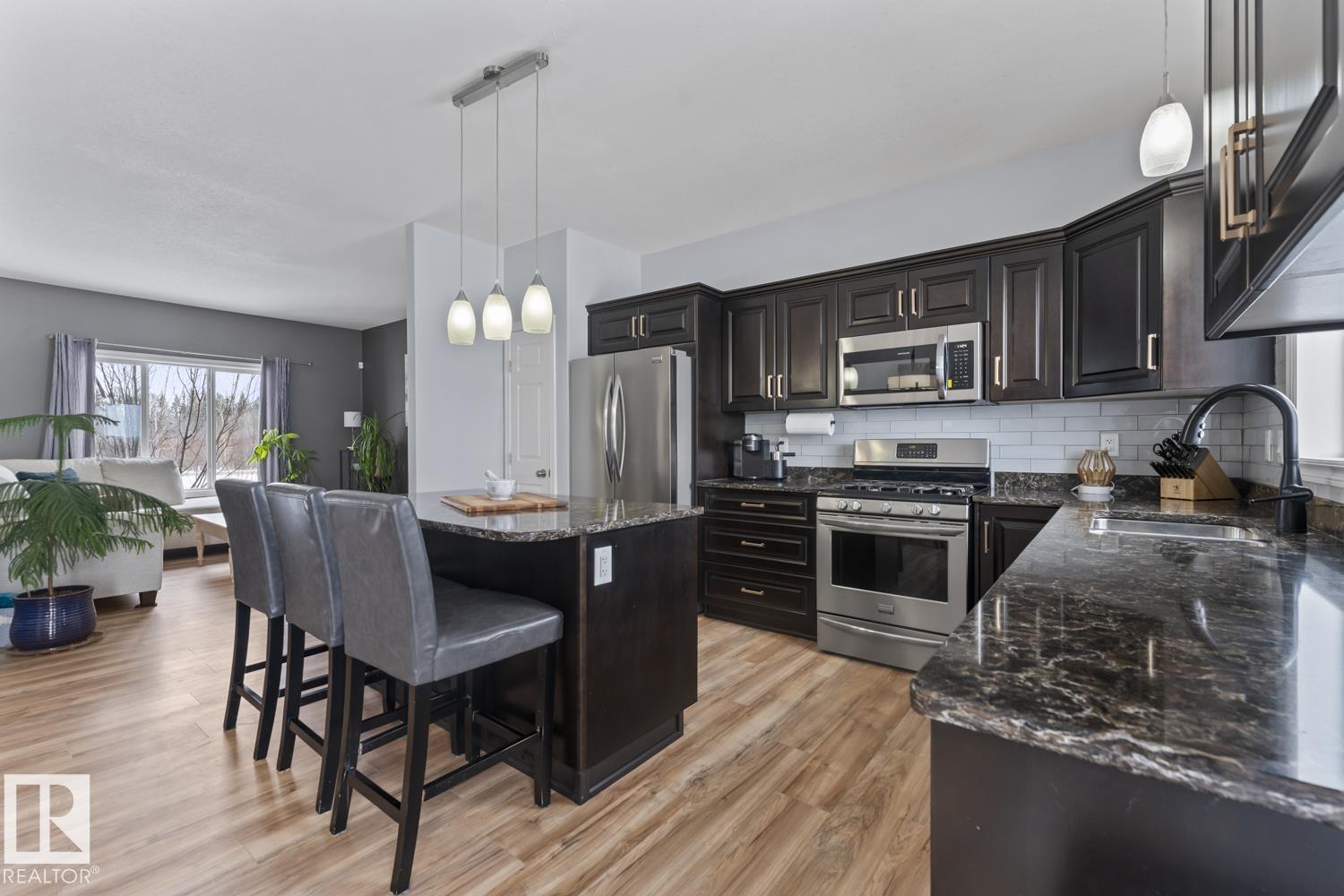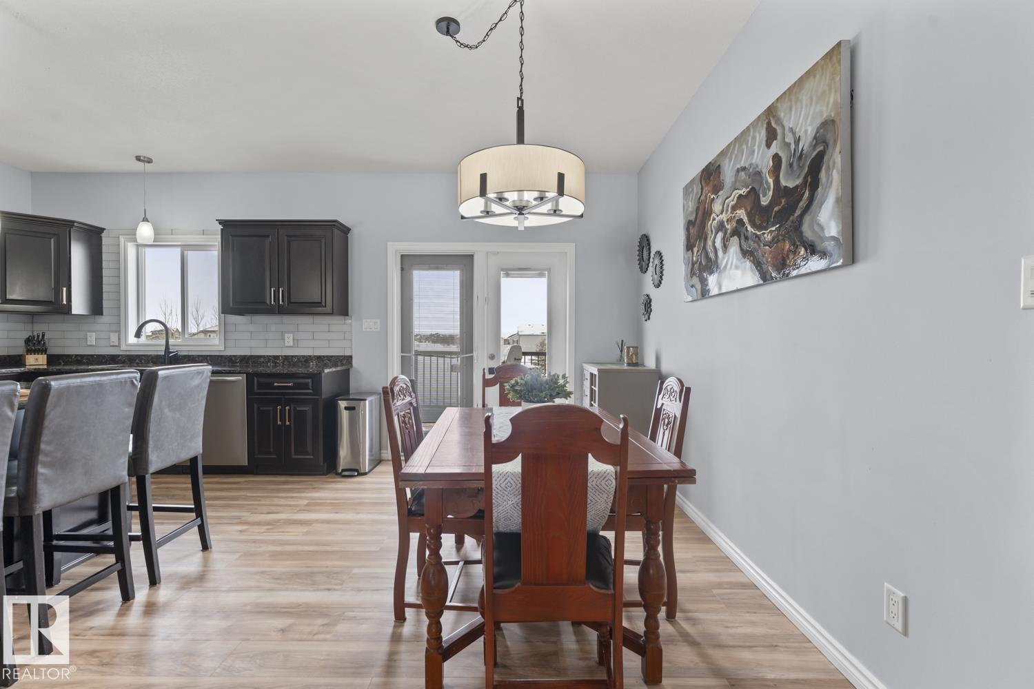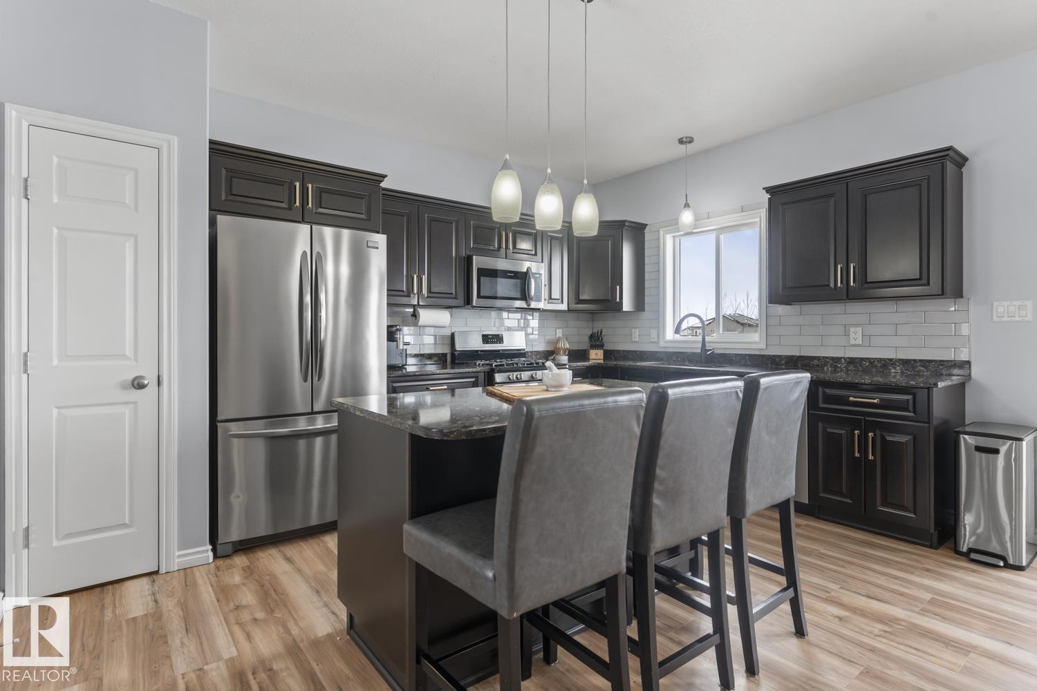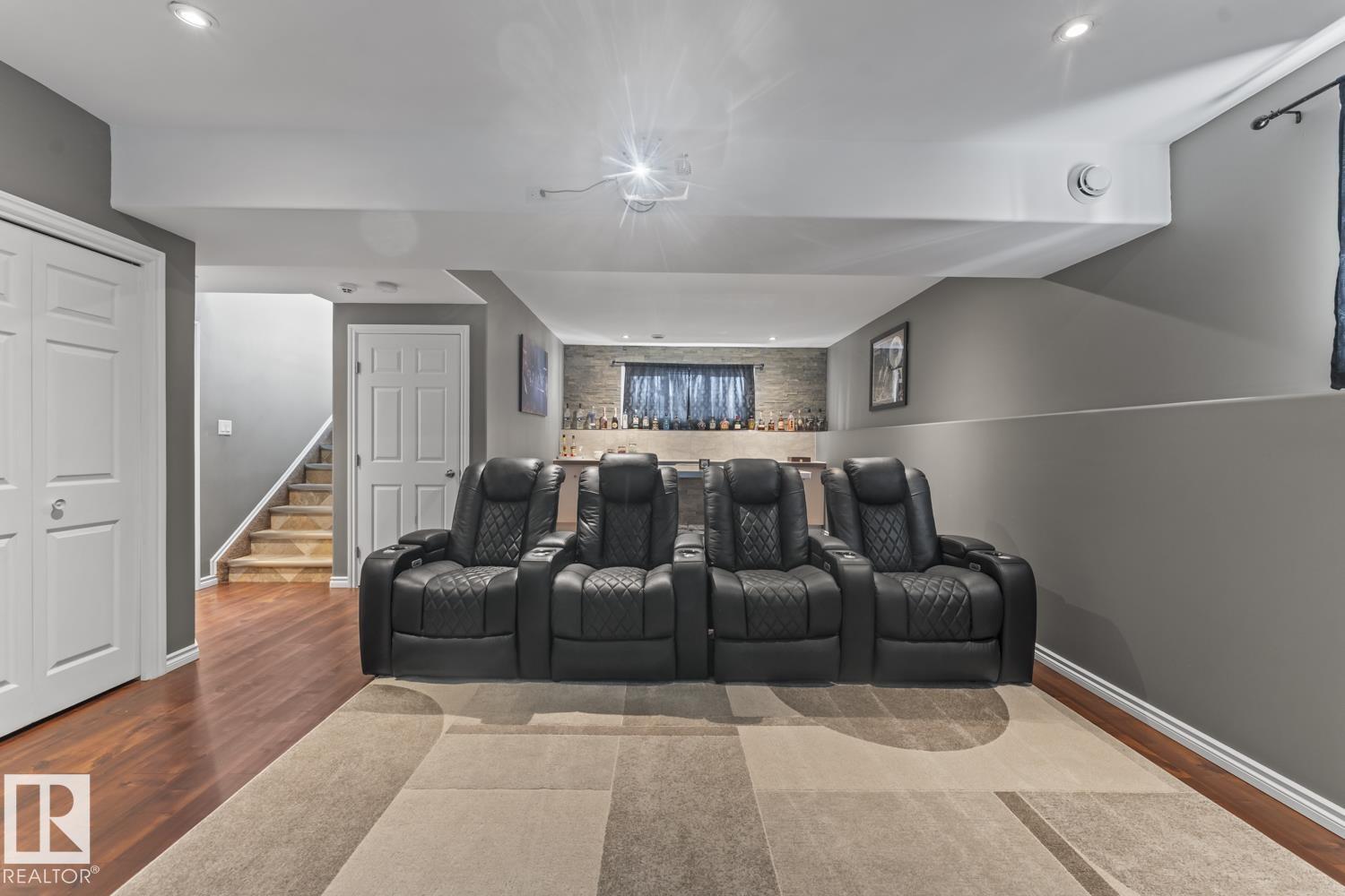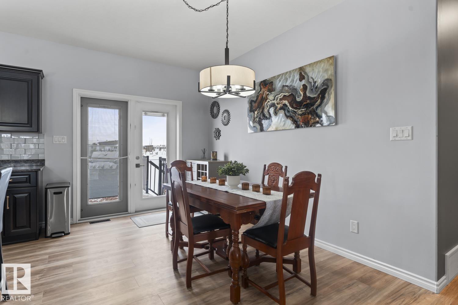 Immaculate family home, located in Countryside Estates, just minutes from Cold Lake North. This home has all the upgrades you need and more! Main floor features NEW quality laminate flooring throughout. Large living room is open to kitchen and dining - ideal for entertaining. Kitchen features NEW tiled backsplash, stainless steel appliances including gas stove and NEW microwave hoodfan. Dining room with access to large deck and backyard. 3 bedrooms on main level including primary with 3pc ensuite and walk-in closet. Basement has been fully finished and is warmed in inslab heat. Large family room with custom bar with island, plus huge theatre area with projection screen. Basement features 3 bedrooms and 4pc bathroom plus access to oversized 28x28 heated double car garage. Outside is an oasis with landscaping, FULLY FENCED yard, loads of mature trees surrounding the entire property, pool with deck area and crushed concrete driveway. This home and property are immaculate and shows 10/10!! (id:63190)