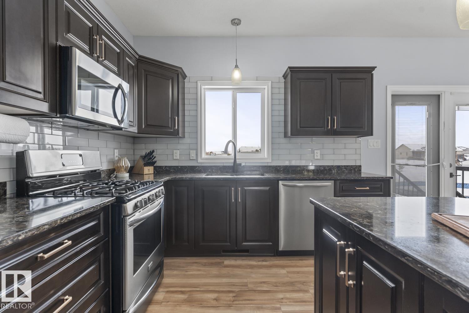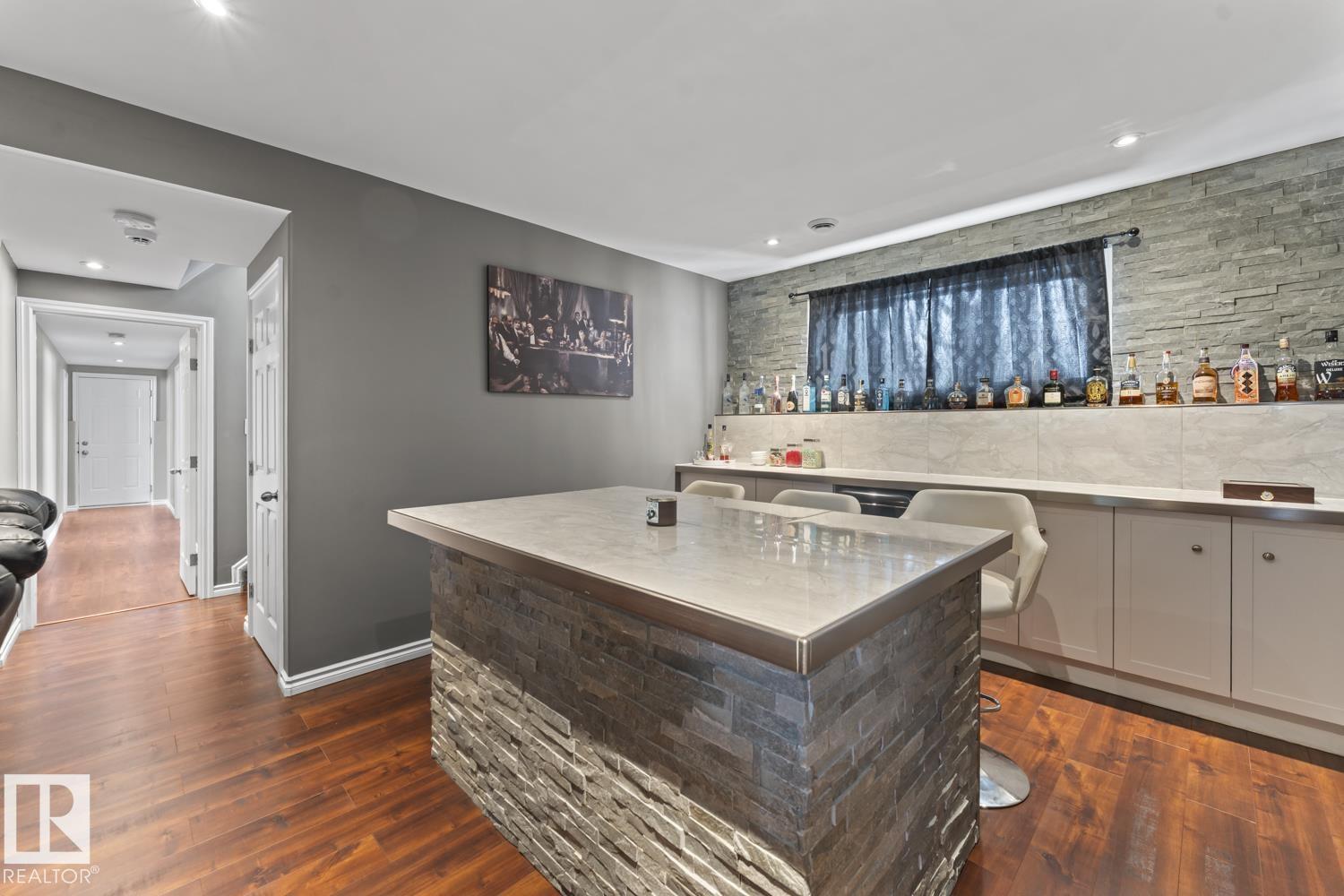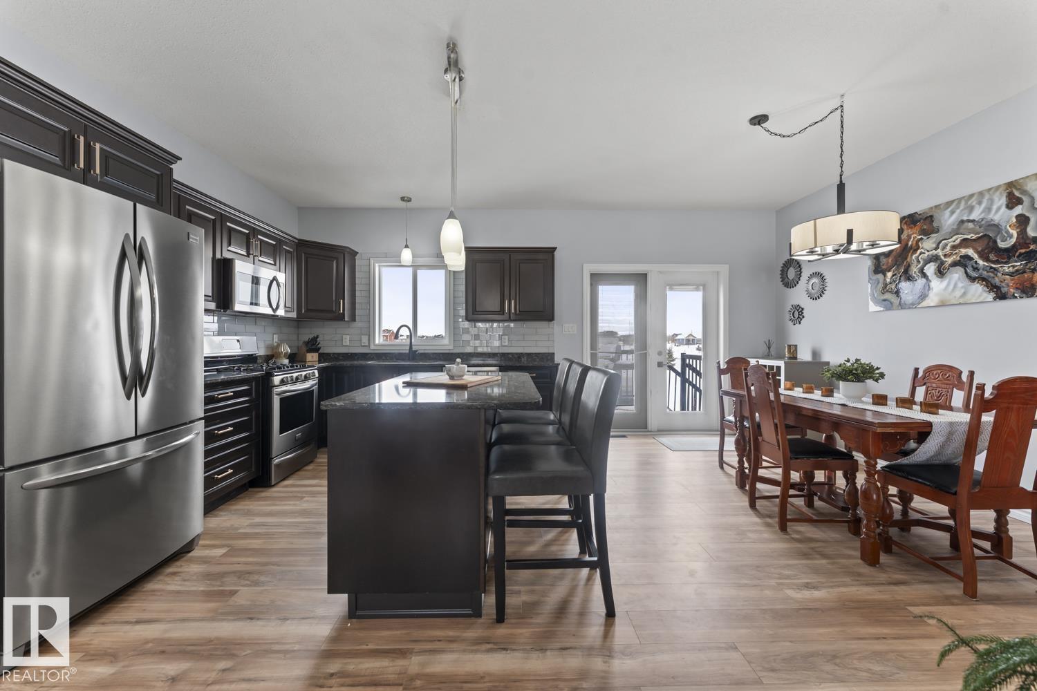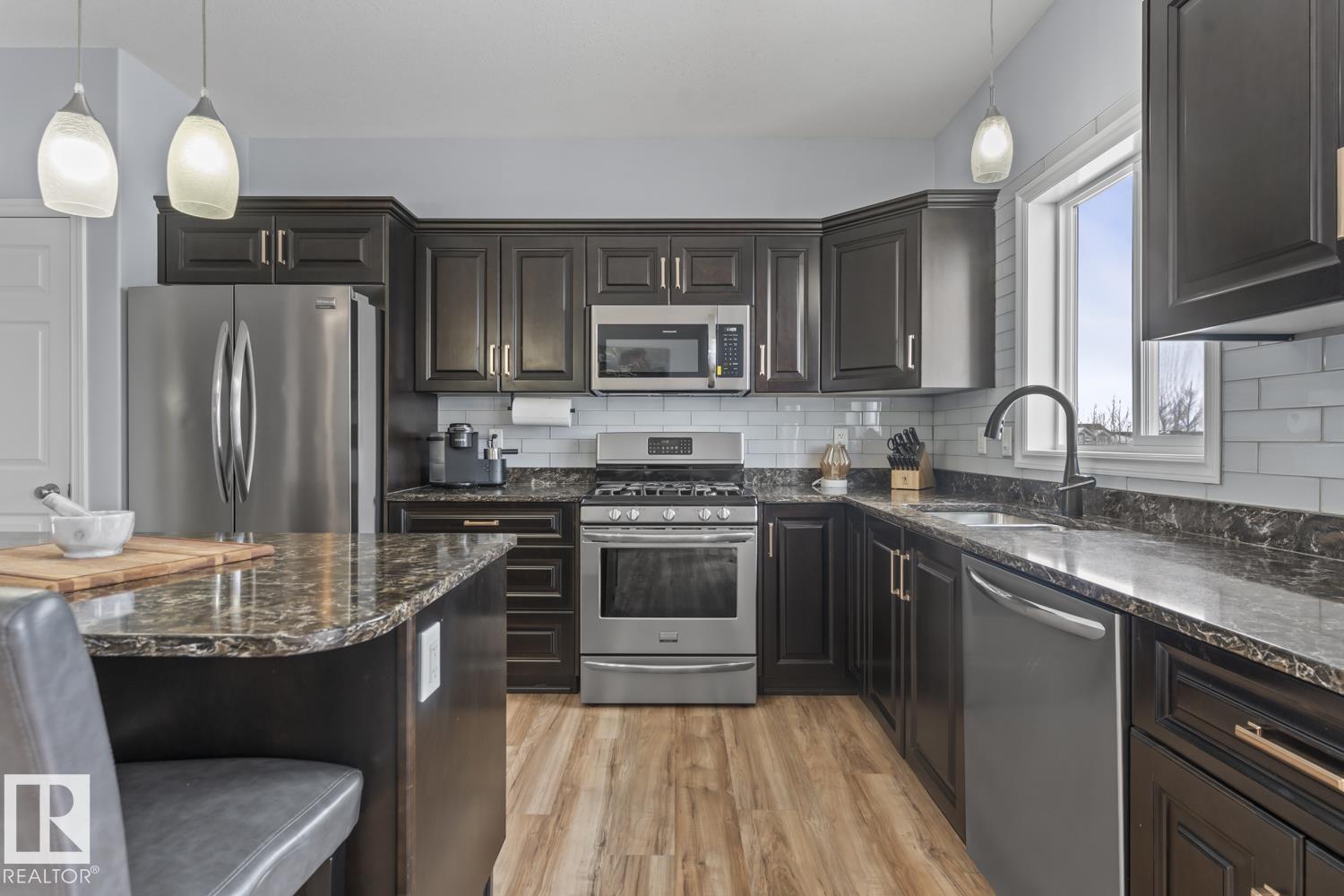 Immaculate family home, located in Countryside Estates, just minutes from Cold Lake North. This home has all the upgrades you need and more! Main floor features NEW quality laminate flooring throughout. Large living room is open to kitchen and dining - ideal for entertaining. Kitchen features NEW tiled backsplash, stainless steel appliances including gas stove and NEW microwave hoodfan. Dining room with access to large deck and backyard. 3 bedrooms on main level including primary with 3pc ensuite and walk-in closet. Basement has been fully finished and is warmed in inslab heat. Large family room with custom bar with island, plus huge theatre area with projection screen. Basement features 3 bedrooms and 4pc bathroom plus access to oversized 28x28 heated double car garage. Outside is an oasis with landscaping, FULLY FENCED yard, loads of mature trees surrounding the entire property, pool with deck area and crushed concrete driveway. This home and property are immaculate and shows 10/10!! (id:63190)