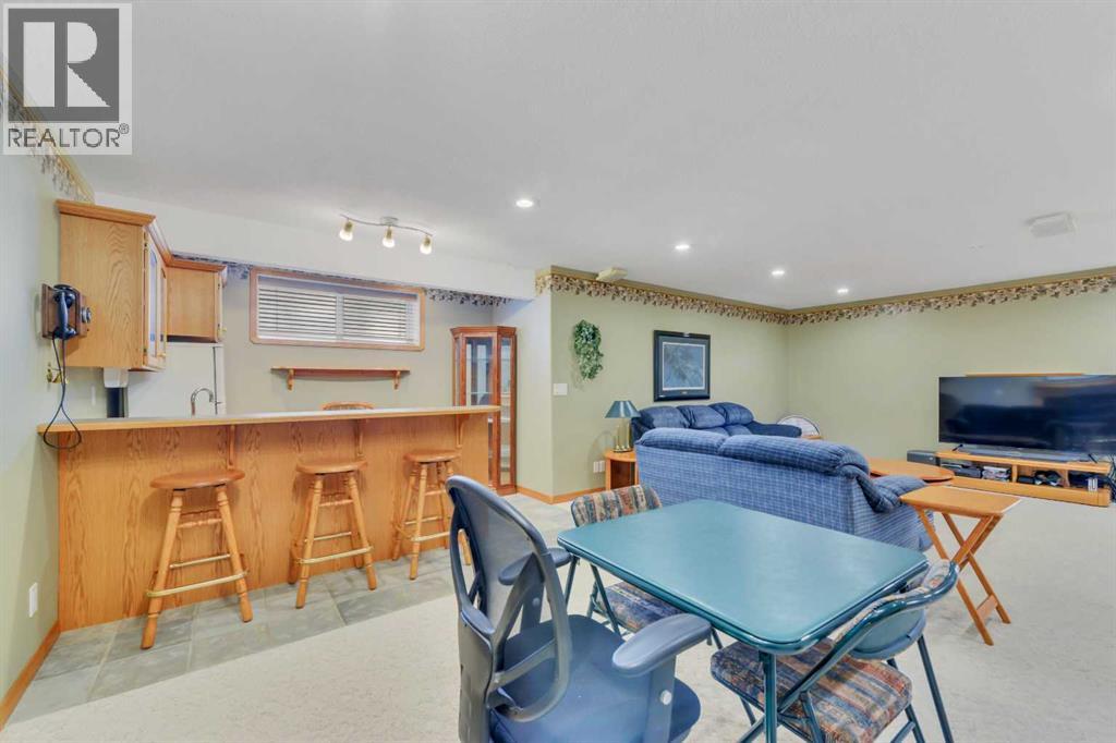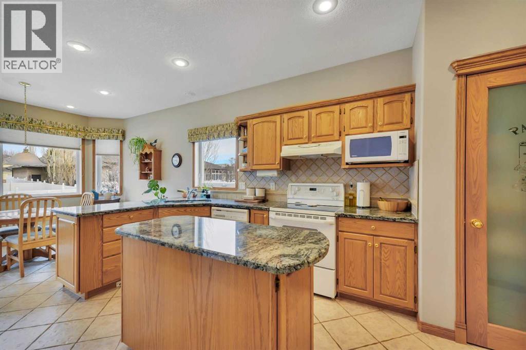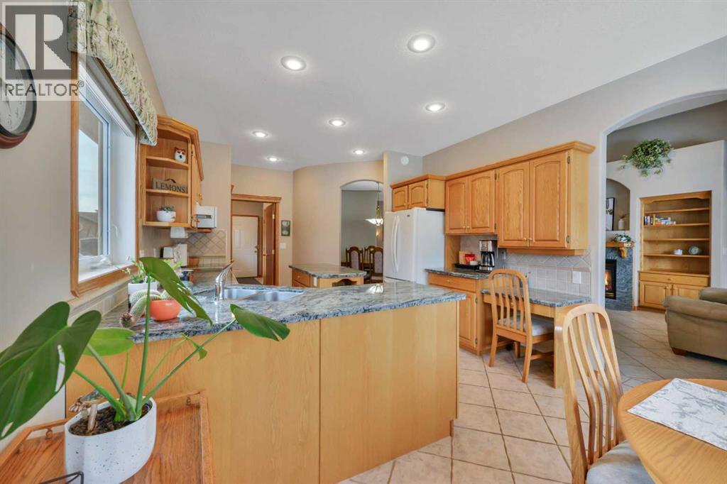 Welcome to this beautifully maintained, fully finished custom built bungalow in the highly sought-after Anders Park East neighbourhood.The stunning great room features 12-foot ceilings, a cozy gas fireplace, and custom built-in bookcases. The open-concept layout seamlessly connects the great room to the dining area, creating the perfect space for both everyday living and entertaining.The kitchen is well-appointed with granite countertops, a central island, coffee bar, built-in desk, and a bright breakfast nook leading to a covered deck—complete with roll-down shades for added privacy and comfort and a gas bbq hook-up.The main floor offers a spacious primary bedroom with hardwood flooring, a large 4-piece ensuite with a jet soaker tub, walk-in shower, and his-and-hers closets. A second bedroom—currently used as an office—features hardwood floors as well and charming bay windows. Convenient main floor laundry/mudroom is located just off the heated double attached garage.Downstairs, the fully finished basement with in-floor heating provides even more living space, including two additional bedrooms, a 4-piece bathroom, a cozy family room with gas fireplace, built-in bar, hobby/craft room, and a unique wine cellar.Outside, enjoy a fully fenced and landscaped yard complete with underground sprinklers, a concrete patio, shed, and RV parking. (id:63190)