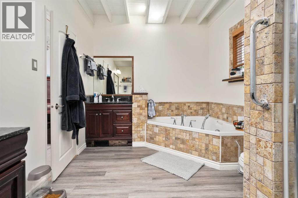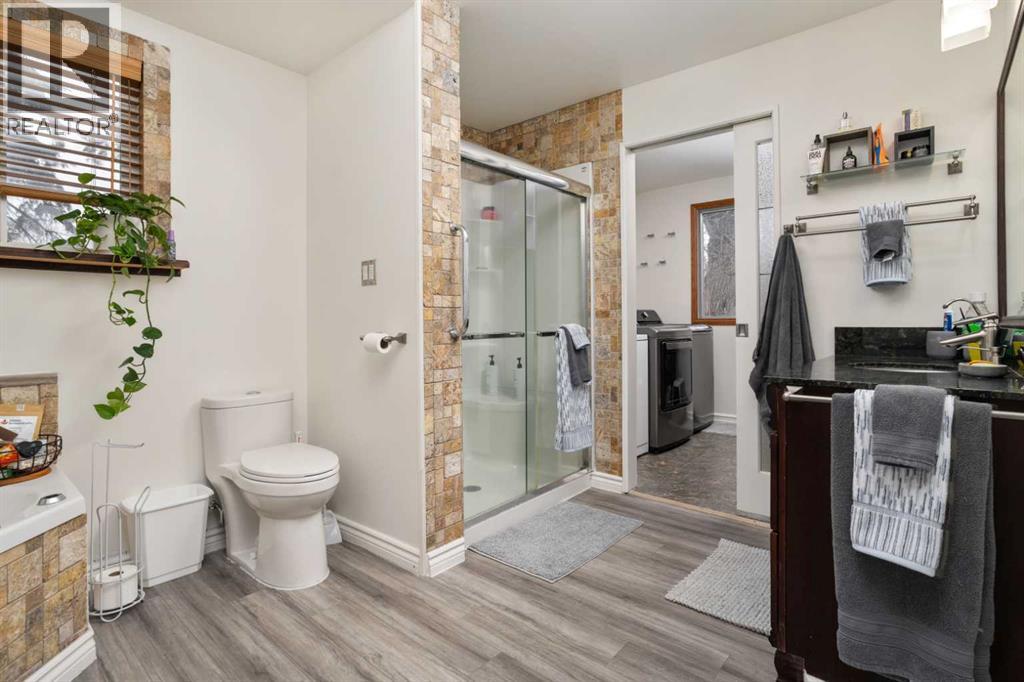 Discover an exceptional blend of convenience and tranquility with this stunning 3.36-acre property, just minutes from the heart of the city. Recently updated and freshly painted throughout, this charming farmhouse boasts chic modern touches and mature landscaping that create an idyllic setting. As you pull into the drive-through lane, the inviting front porch welcomes you to a bright and airy living space filled with natural light. The chef’s kitchen shines with an abundance of windows, featuring a granite countertop island perfect for hosting gatherings, an oversized sink, an industrial Thermador gas stove, sleek stainless steel appliances, and countertops ideal for food preparation. Plus, enjoy your built-in coffee bar, tailored for caffeine lovers! Retreat to the spacious master bedroom with its generous en suite that includes his and her sinks, along with an oversized jetted tub for ultimate relaxation. Convenient main floor laundry is cleverly tucked away in the walk-in closet. The loft area offers even more potential with large windows, an ideal space for a home office, an additional bedroom, and its own 4-piece bathroom. The main floor also features a convenient 2-piece powder room near the entrance. This exceptional property is enhanced by an updated water system and brand-new lighting throughout, ensuring comfort and style. Enjoy the park-like yard, sheltered by tall spruce trees and featuring a small in-ground fish pond (currently not in use). For the outdoor enthusiast, a heated four-car garage/workshop (30x40) provides ample space for projects or hobbies, while the well-constructed and insulated greenhouse, complete with sliding vinyl windows, allows for an early start on growing herbs, flowers, and vegetables. Additionally, an extra-large, chicken coop in the backyard offers the potential to embrace sustainable living.With its serene atmosphere and modern amenities, this property is a rare find so close to Camrose. Don’t miss your chance to make th is updated and sheltered gem your own! (id:63190)