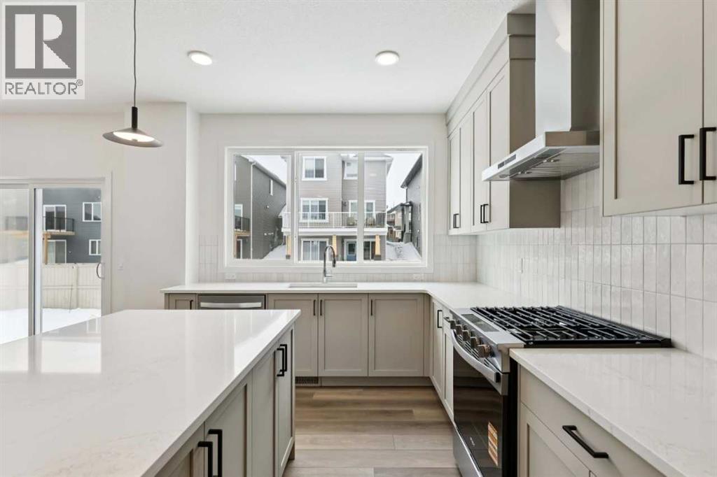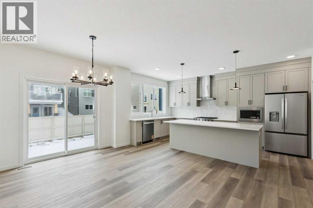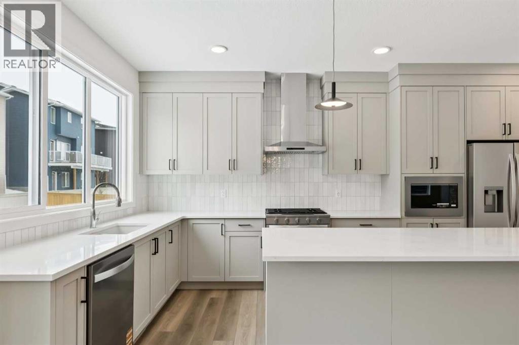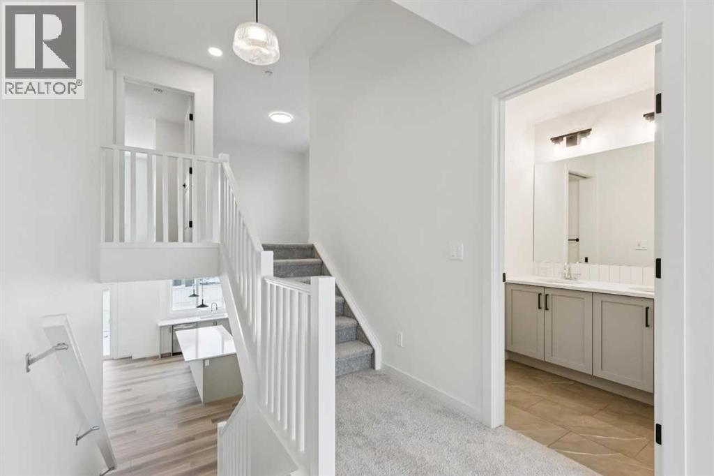 Welcome to the Connor by Calbridge Homes, located at 823 Bayview Terrace in the desirable community of Bayview. Offering 2,106 sq ft of thoughtfully designed living space, this home features 3 bedrooms and 2.5 bathrooms with a unique 3-level split layout, all above grade. The main living area showcases a bright open-concept design with a spacious kitchen featuring an oversized 8 foot island, walk-in pantry, upgraded appliance package, and modern finishes. Upstairs, enjoy a versatile bonus room and additional flex/den space, ideal for work or relaxation. The primary bedroom includes dual sinks in the ensuite, with the same convenience extended to the main bathroom. Additional highlights include railing throughout, an added front foyer window for natural light, washer and dryer, and a 21’ x 22’ double attached garage. Located close to parks, pathways, a future Rocky View County School, and recreation spaces, this home is available for immediate possession. (id:63190)