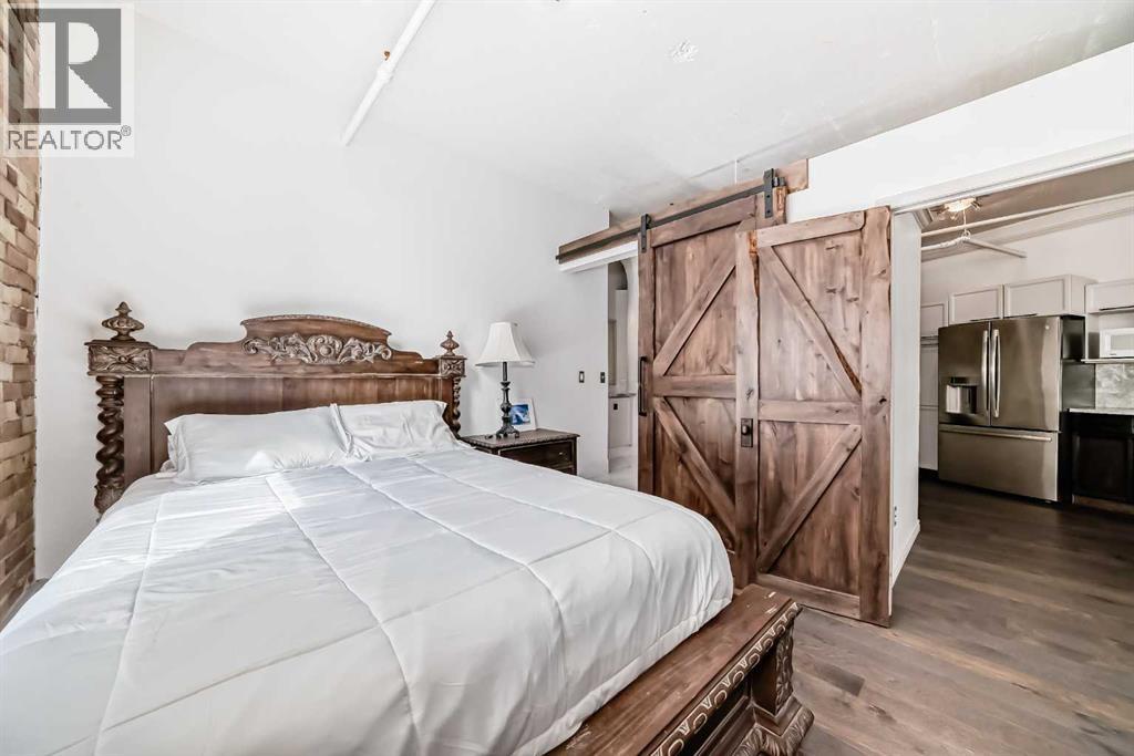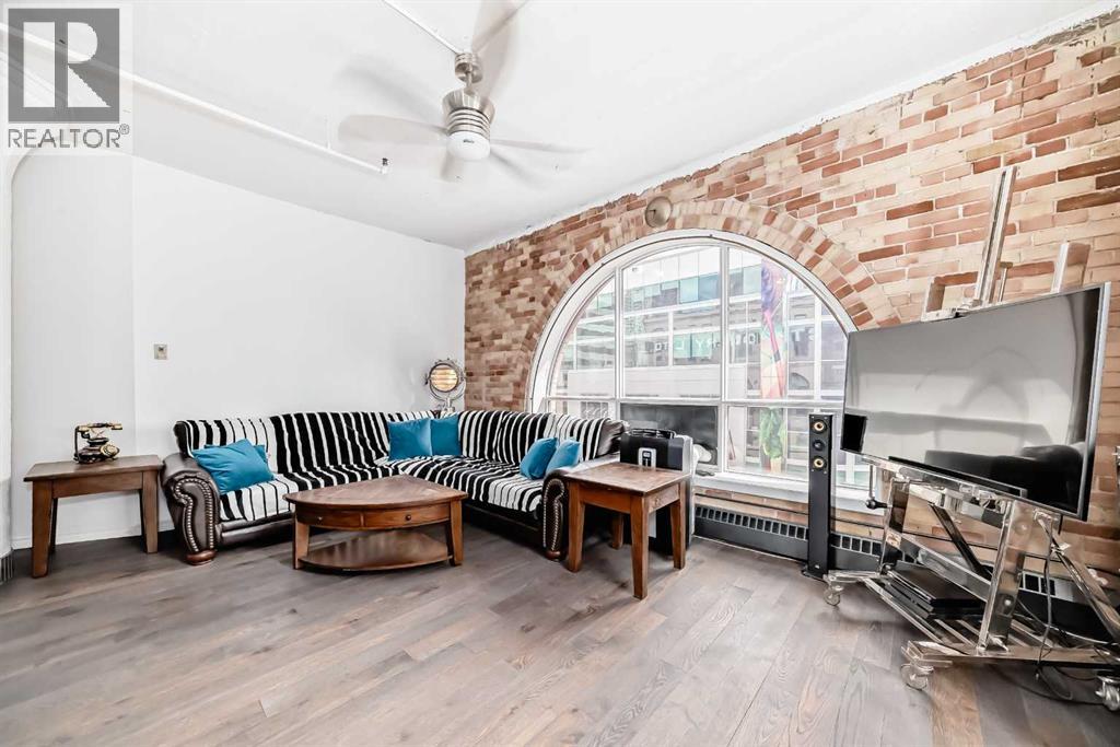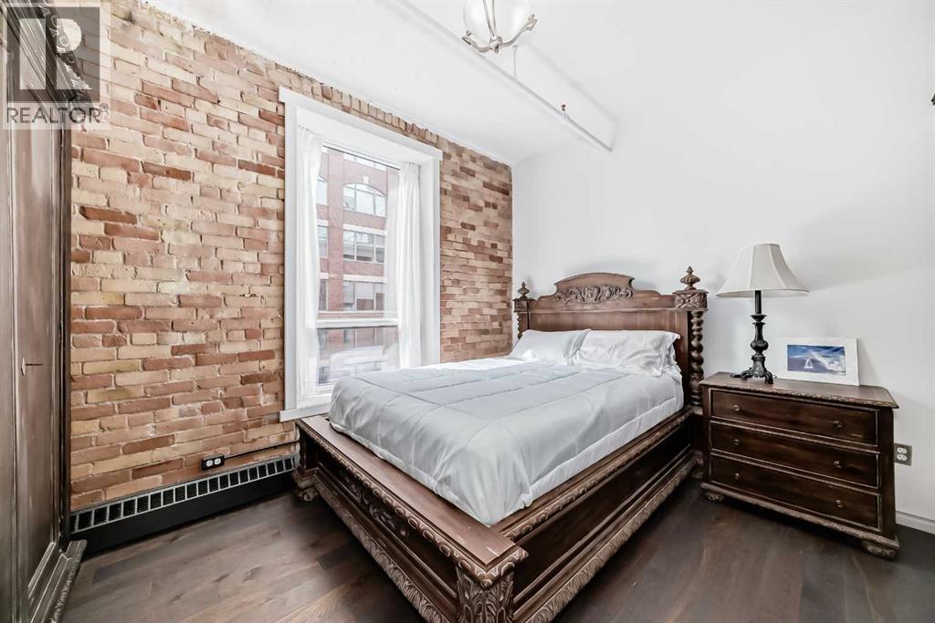 Own a piece of Calgary’s history in this stunning corner unit at Lewis Lofts. Perfectly positioned in the heart of the Beltline, this 4th-floor residence blends timeless architectural charm with modern comfort. High ceilings, exposed brick and concrete, a modern floor plan, and a signature arched window create a bright, open living space full of character. The thoughtfully updated kitchen features stone countertops, stainless steel appliances, and a gas range, flowing seamlessly into the living area complete with hardwood floors, a gas fireplace, and downtown views. Retreat to the private bedroom with a walk-in closet and ensuite. Enjoy your own balcony, plus access to a rooftop garden with gazebo and BBQ. Complete with underground parking, storage, and in-suite laundry, this pet-friendly, adult-only building places you steps from Calgary’s best restaurants, shops, transit, and entertainment. (id:63190)