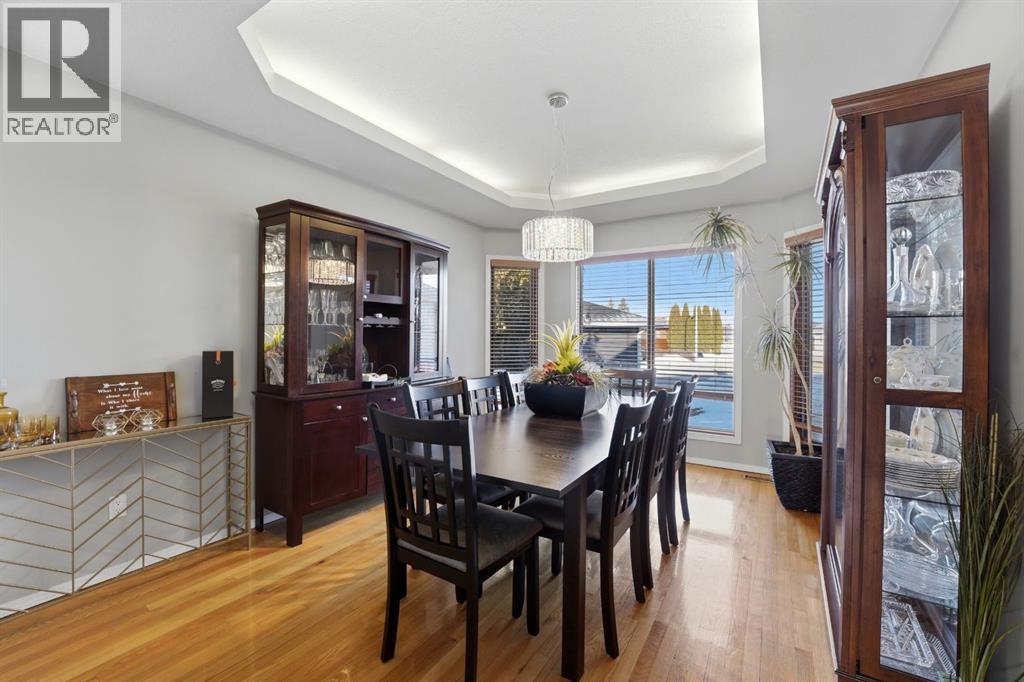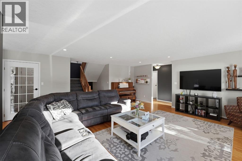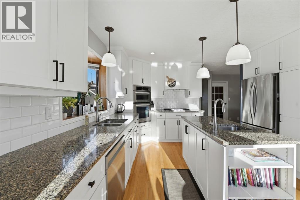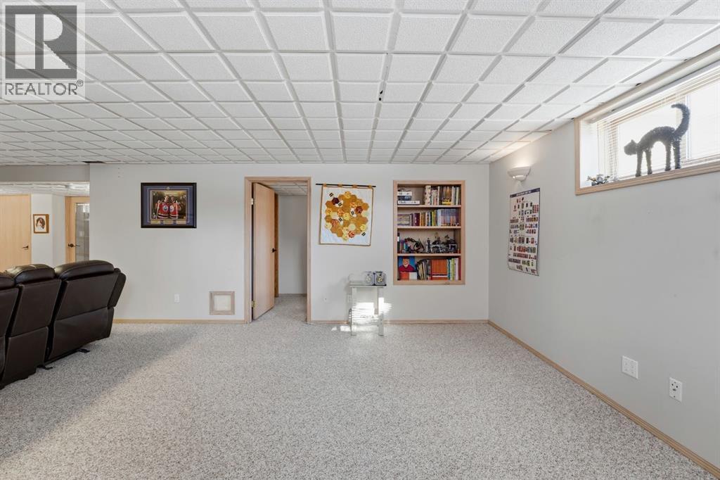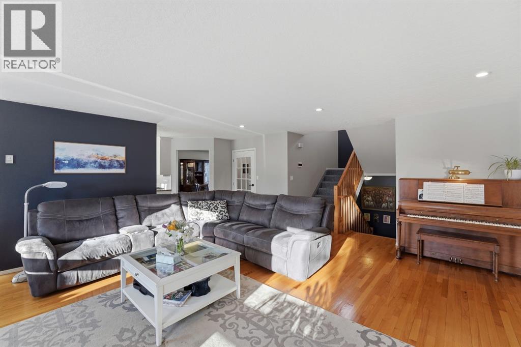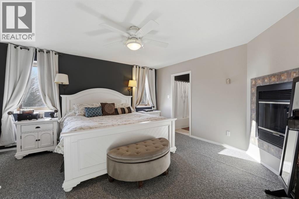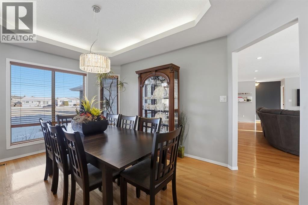 An elevated home offering space without sacrificing design — one of those places that just feels like home. Tucked into a quiet Stettler cul-de-sac, this property features a triple attached garage, 5 bedrooms (with potential for a 6th), and 4 bathrooms, creating the perfect setting to grow into and enjoy for years to come. Step inside to a welcoming foyer that opens into a bright and inviting living room, where large south-facing windows and rich hardwood flooring create a warm and comfortable gathering space. The formal dining room features tray ceilings, offering an ideal setting for family dinners and entertaining. The kitchen is both timeless and highly functional, complete with beautiful cabinetry, granite countertops, a center island with prep sink, gas range, and wall oven/microwave combo - perfect for those who love to cook and host. The adjoining breakfast nook is a standout feature, with a stunning skylight package and surrounding windows that fill the space with natural light, while a garden door leads directly to the tiered deck for easy indoor-outdoor living. The main floor also includes a versatile bedroom or office, a full bathroom, and a practical mudroom with direct access to the garage, which is equipped with an electric vehicle charger. Upstairs, you’ll find three additional bedrooms and a full bathroom, along with a spacious primary suite featuring a cozy gas fireplace, a super-sized walk-in closet, and a full ensuite — creating a comfortable and private retreat. The fully developed lower level expands your living space with a large family and games area, an additional bedroom, generous storage, and the option to create a sixth bedroom if desired. A unique highlight is the 3-piece bathroom complete with a dry cedar sauna. Outside, the private backyard is beautifully landscaped with mature trees, vinyl fencing, and RV parking. The multi-tiered deck with inset hot tub and fire pit area creates a great space for relaxing or entertaining. With centra l air conditioning already in place and exceptional space throughout, this home offers a layout and lifestyle that truly works for everyday family living — a home where you can truly put down roots and grow into for years to come. (id:63190)