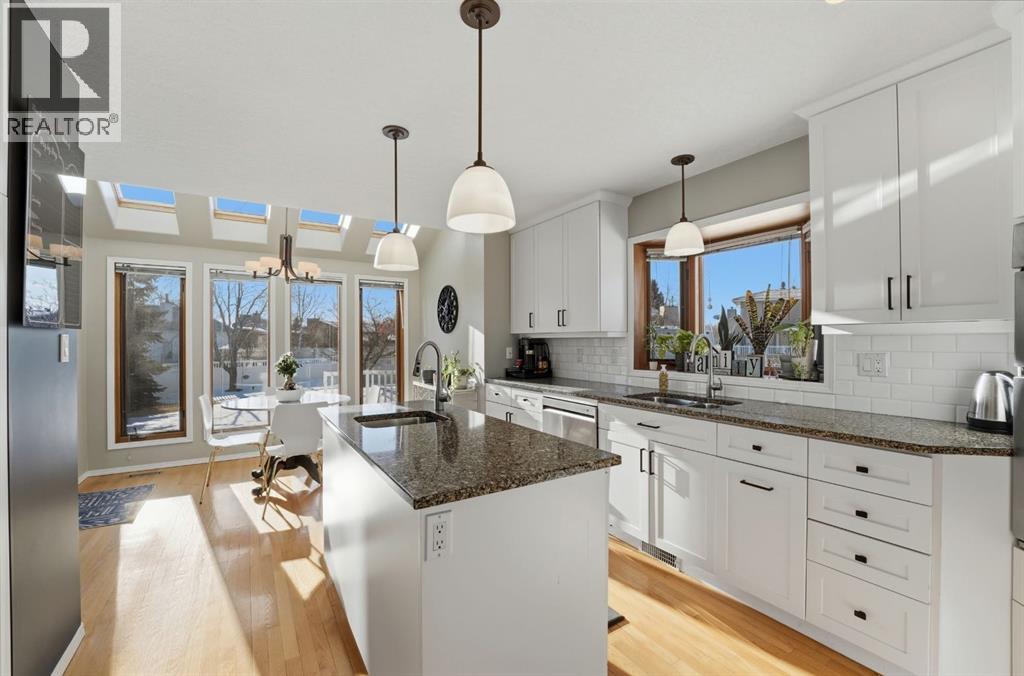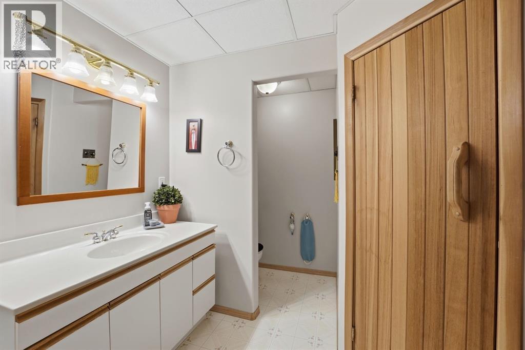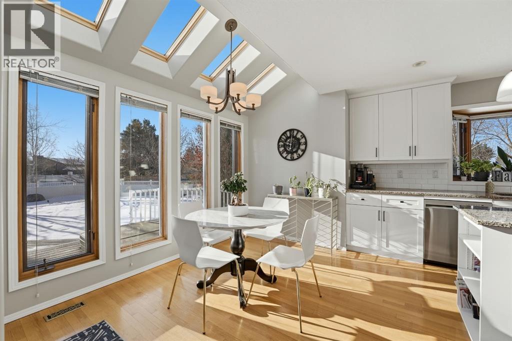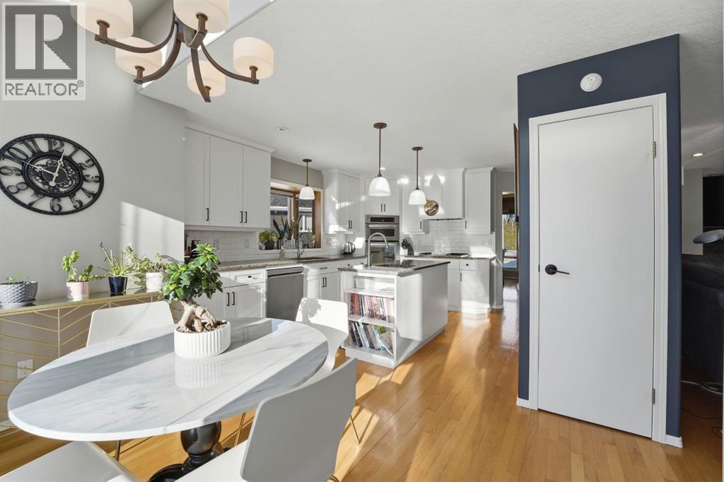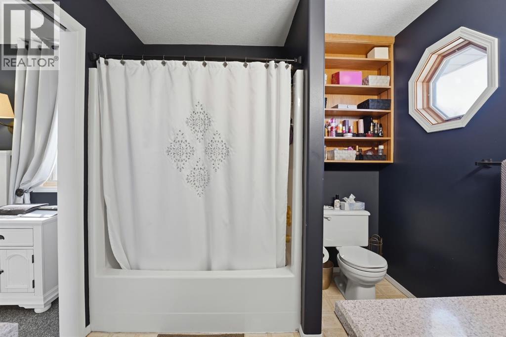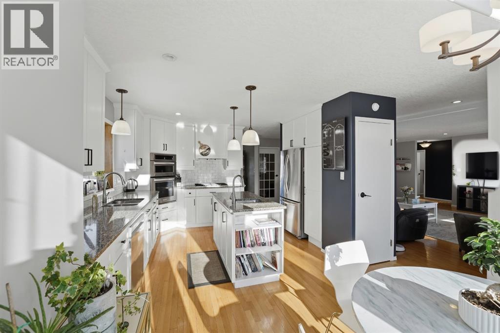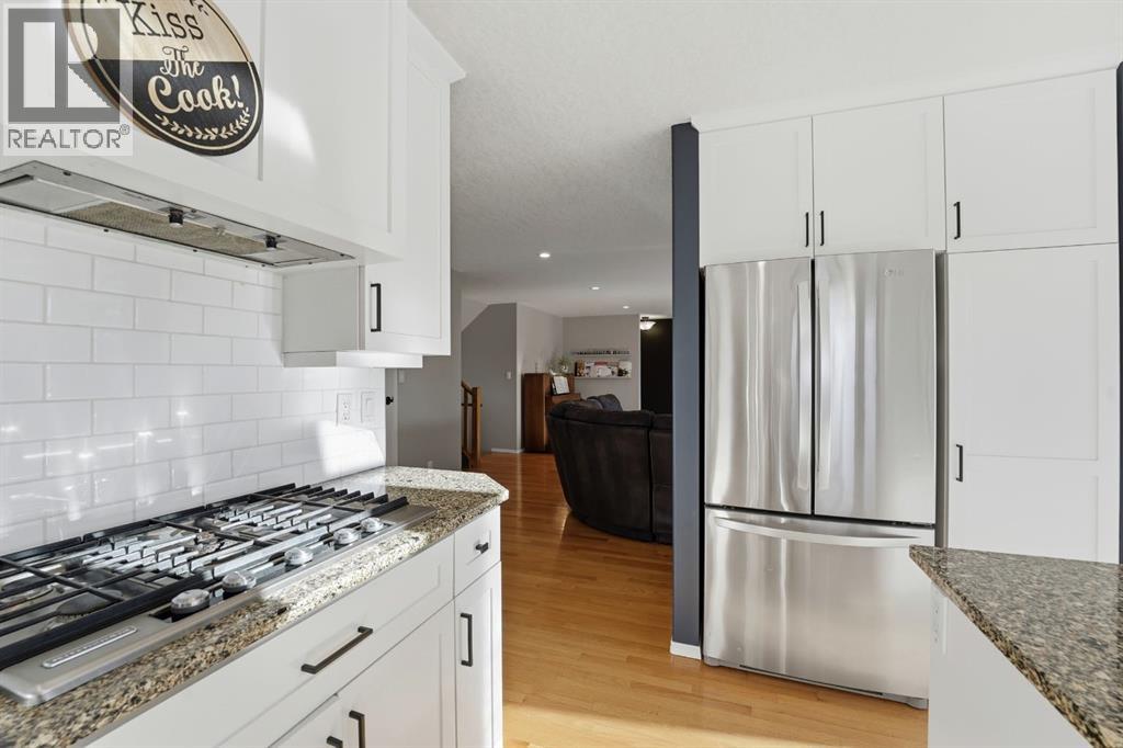 An elevated home offering space without sacrificing design — one of those places that just feels like home. Tucked into a quiet Stettler cul-de-sac, this property features a triple attached garage, 5 bedrooms (with potential for a 6th), and 4 bathrooms, creating the perfect setting to grow into and enjoy for years to come. Step inside to a welcoming foyer that opens into a bright and inviting living room, where large south-facing windows and rich hardwood flooring create a warm and comfortable gathering space. The formal dining room features tray ceilings, offering an ideal setting for family dinners and entertaining. The kitchen is both timeless and highly functional, complete with beautiful cabinetry, granite countertops, a center island with prep sink, gas range, and wall oven/microwave combo - perfect for those who love to cook and host. The adjoining breakfast nook is a standout feature, with a stunning skylight package and surrounding windows that fill the space with natural light, while a garden door leads directly to the tiered deck for easy indoor-outdoor living. The main floor also includes a versatile bedroom or office, a full bathroom, and a practical mudroom with direct access to the garage, which is equipped with an electric vehicle charger. Upstairs, you’ll find three additional bedrooms and a full bathroom, along with a spacious primary suite featuring a cozy gas fireplace, a super-sized walk-in closet, and a full ensuite — creating a comfortable and private retreat. The fully developed lower level expands your living space with a large family and games area, an additional bedroom, generous storage, and the option to create a sixth bedroom if desired. A unique highlight is the 3-piece bathroom complete with a dry cedar sauna. Outside, the private backyard is beautifully landscaped with mature trees, vinyl fencing, and RV parking. The multi-tiered deck with inset hot tub and fire pit area creates a great space for relaxing or entertaining. With centra l air conditioning already in place and exceptional space throughout, this home offers a layout and lifestyle that truly works for everyday family living — a home where you can truly put down roots and grow into for years to come. (id:63190)