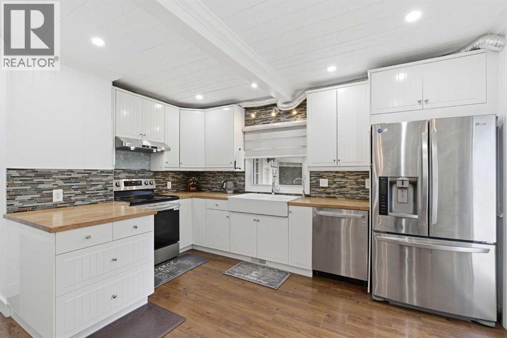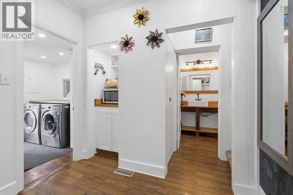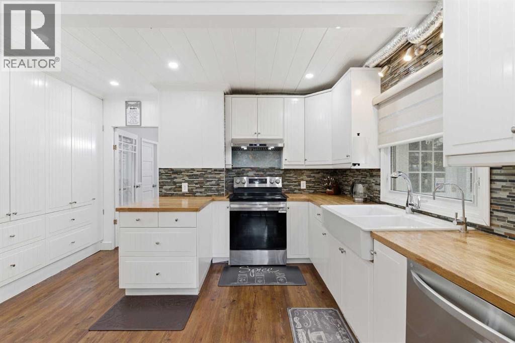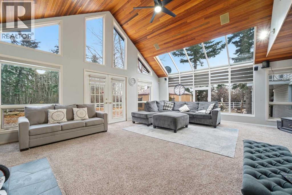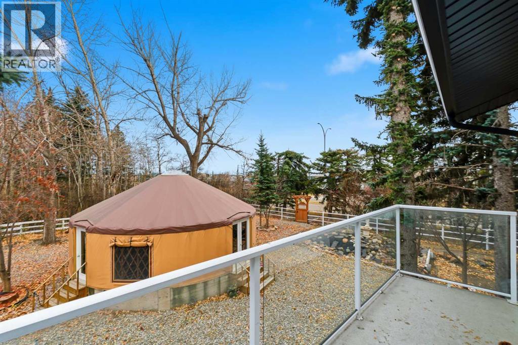 A Private Country Oasis on 5.52 Acres | Steps to Town | 2,231 Sq. Ft. Above Grade | Over 3,000 Sq. Ft. of Total Developed Living SpaceDiscover this exceptional acreage property offering privacy, natural beauty, and timeless country charm — all just minutes from town amenities. Nestled on 5.52 fully treed acres behind a private gated entrance, this uniquely designed residence provides a serene lifestyle while maintaining convenient access to daily necessities and major roadways.The home features thoughtfully selected farmhouse-inspired finishes, including reclaimed elements sourced from historic sites. The well-appointed kitchen includes stainless steel appliances, ample counter space, and extensive cabinetry, providing both functionality and style. The adjoining dining room offers a warm and inviting space for family gatherings and special occasions.A dramatic, light-filled family room showcases vaulted ceilings and expansive windows framing the peaceful natural surroundings. The sunken living room adds an additional cozy retreat, complete with a wood-burning fireplace and bay window — ideal for relaxing on cooler evenings.The upper level hosts a charming primary bedroom with double barn-door closet access, a gas fireplace, and a private balcony overlooking the treed landscape — the perfect spot for morning coffee or quiet reflection. A second bedroom, flex room, and spacious 5-piece bathroom complete this level. The finished lower level offers a large multi-purpose space, an additional bedroom with 2-piece bathroom (macerating toilet), and direct walk-up access to the outdoors.The fully developed lower level offers exceptional additional living space, featuring a bedroom, a 2-piece bathroom (macerating toilet), a large recreation room, storage area, and direct walk-up access to the outdoors, making it ideal for guests, teens, or multi-use living.Outdoor FeaturesThe property offers endless opportunities to explore and enjoy nature with mature trees, walk ing paths, and multiple outdoor activity and relaxation areas. Additional amenities include:• Cottage-style playhouse• Swings and outhouse• Chicken coop and horse shelters• Wood sheds and detached garage• Two firepit areas and water features• Expansive deck space• Pasture and stock waterers — ideal for horse ownersRecent Upgrades• Gas stove• Window blinds• Water filtration system• New hot water tank• New furnaceLocation & Investment AppealConveniently located near Honda Okotoks, this property offers excellent access to shopping, services, and commuter routes. A fantastic opportunity for buyers seeking space, lifestyle, and long-term land value in the Okotoks and surrounding area.This one-of-a-kind property combines character, comfort, and possibility — a rare offering that truly must be experienced. (id:63190)