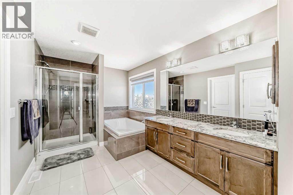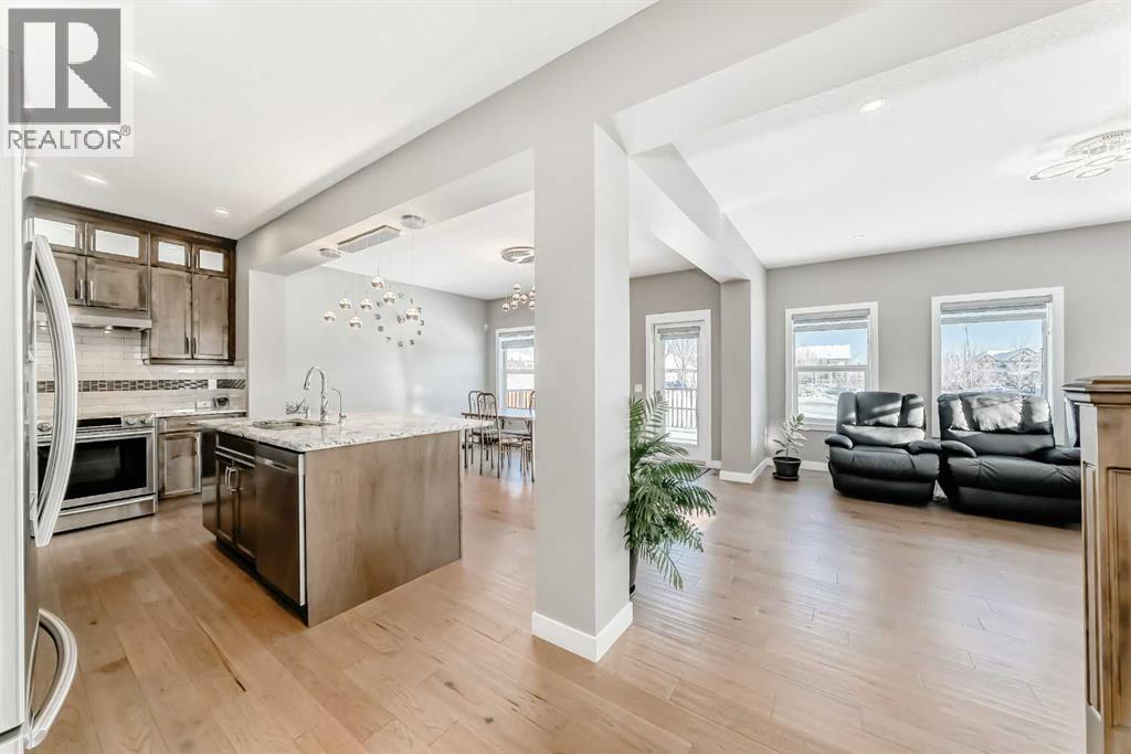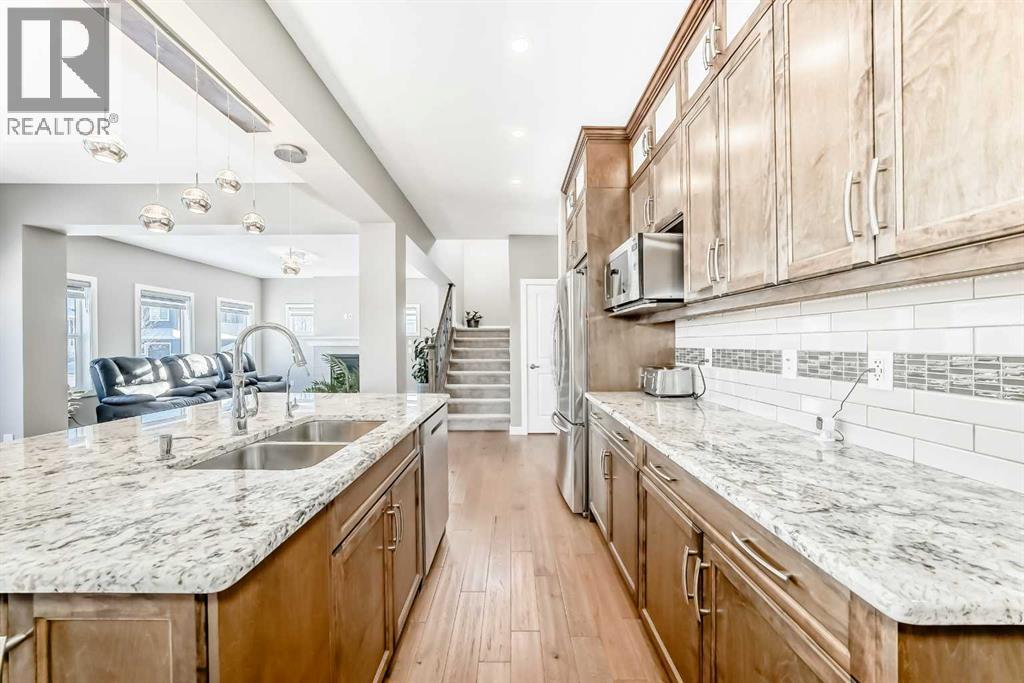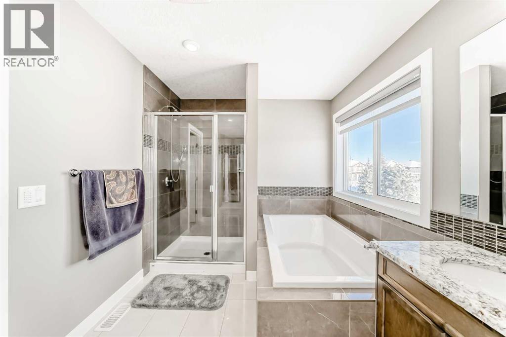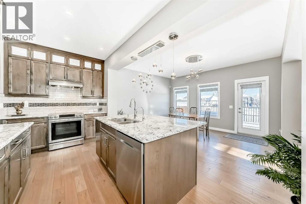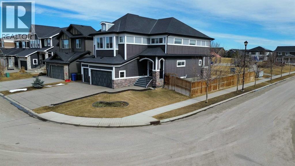Welcome to Westmere, one of the most sought-after communities near Calgary and in Chestermere! This breathtaking corner lot residence adjoins a tranquil park, offering uninterrupted views and a sense of privacy with no neighbors directly behind. With its east/west orientation, enjoy an abundance of natural light all day long, enhanced by central air conditioning for your ultimate comfort.Step inside this remarkable 2-storey home with 9ft main floor and basement ceilings, 3944 SqFt of thoughtfully crafted living space awaits, featuring 6 spacious bedrooms and 5 stylish bathrooms. The main level showcases sound-proofed flooring and includes a convenient bedroom with a closet and a 3-piece bath—ideal for multigenerational living or visiting guests. The gourmet chef's kitchen is truly a culinary delight, boasting stainless steel appliances, elegant full-height cabinets, stunning granite countertops, and a generous center island perfect for casual meals. Plus, a separate spice kitchen equipped with an electric stove and walk-in pantry ensures you're ready for any cooking challenge.The open-concept design flows effortlessly from the kitchen to the dining and family areas, where abundant windows create a bright and inviting atmosphere. A cozy gas fireplace in the family room provides warmth and charm, and the main-level laundry adds an extra layer of convenience. Step outside to your expansive deck, overlooking a fully fenced backyard with direct access to Aspenmere Park—ideal for alfresco entertaining and family fun!Venture upstairs to find not one, but two luxurious primary bedrooms with their own ensuite bathrooms, along with two additional bedrooms and a versatile bonus room perfect for cozy family gatherings. The first primary bedroom offers stunning park views, a spacious walk-in closet, and a lavish 5-piece ensuite complete with a deep soaking tub and double vanity.The finished basement, featuring its own private covered entry, reveals a vast rec room adorne d with an electric fireplace, alongside a wet bar for entertaining guests, an extra bedroom, and a 3-piece bath. The basement has been roughed in to easily be converted to a LEGAL SUITE! Suite would be subject to approvals and permitting by the municipality.Additional perks include a front-facing triple garage with a car charging station, a water softener, a central vacuum system, solar rough-ins, and structural warranty coverage until September 2027. With parking space for up to 6 vehicles and plenty of street parking available, this home is an extraordinary find. Don't let this opportunity slip away—schedule your showing today! (id:63190)