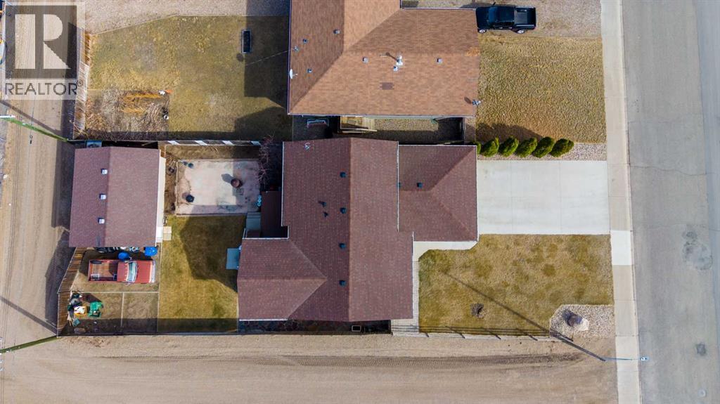 Welcome to this 2013-built home located in Taber! Featuring attractive stucco and stone exterior, this property offers fantastic curb appeal with a concrete driveway, attached double garage, and a fully landscaped, fully fenced yard.Step inside to an inviting open-concept main floor, complete with a spacious kitchen featuring a central island, perfect for entertaining and everyday living. The vaulted ceilings and modern pot lighting create a bright atmosphere throughout the living space. The home includes a comfortable primary bedroom with a private 4-piece ensuite, along with a combination of stylish vinyl plank and cozy carpet flooring.The fully finished basement expands your living space with a rough-in for a wet bar—ideal for future customization. You’ll also enjoy modern comforts like hot water on demand and central air conditioning.Out back, relax or entertain on the covered deck, and take advantage of the additional double detached garage, RV parking, and a unique enclosed hot tub area for year-round enjoyment.This property truly has it all—space, style, and functionality—perfect for families or anyone looking for a move-in-ready home with exceptional features. (id:63190)