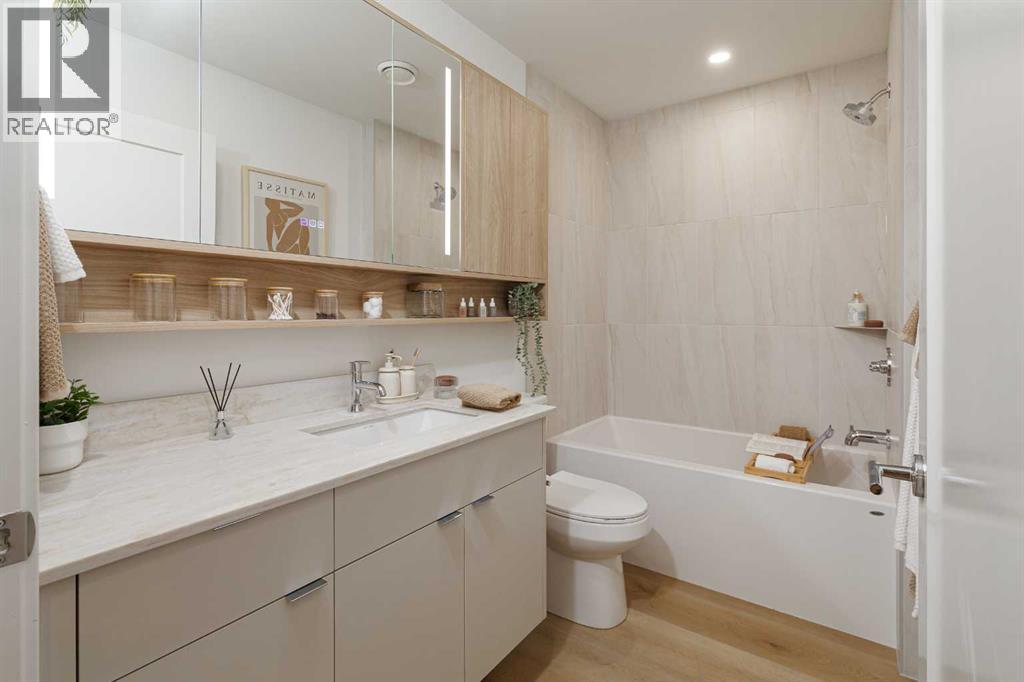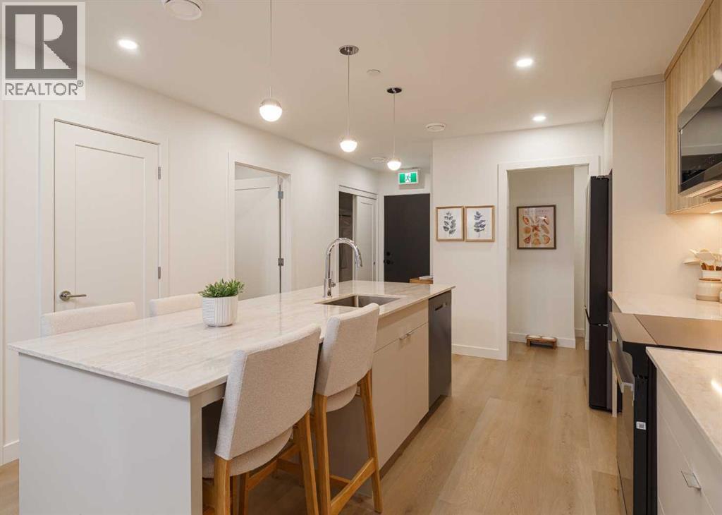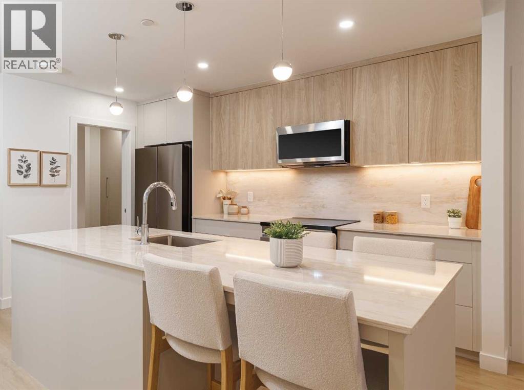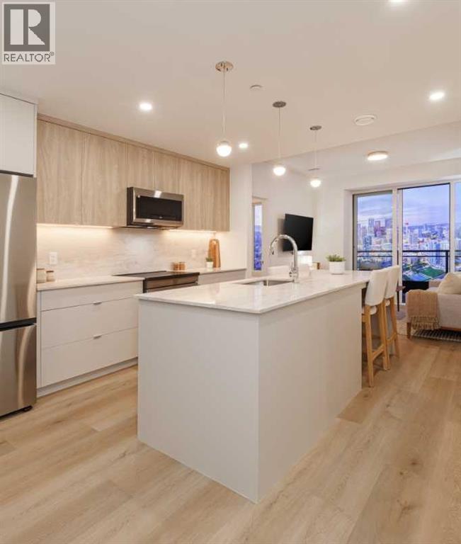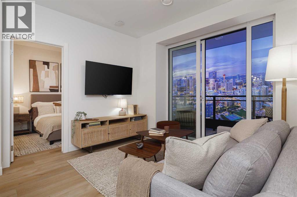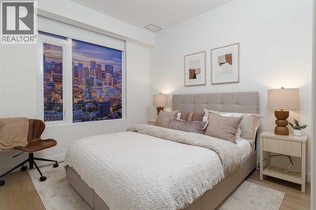 ** OCTOBER 2030 COMPLETION ** Unit Photographed is Display Suite & Amenities are Renderings || Welcome to Broadway on 17th, a landmark new development redefining urban living in the heart of Calgary. This architecturally striking community offers a rare opportunity to secure a home in one of the city's most vibrant and evolving corridors.The C4 model on the 29th floor showcases the perfect blend of sophistication and functionality, featuring thoughtfully designed interiors, premium appliances, and contemporary finishes curated for elevated everyday living. Spacious and efficient, this home reflects modern design principles while offering comfort, style, and flexibility.Residents will enjoy an unmatched collection of resort-style amenities, including a full spa and sauna, state-of-the-art fitness studio, co-working spaces, games lounge, arcade, sports simulator, and beautifully designed social lounges. Pet-friendly areas and collaborative workspaces further enhance the lifestyle experience.A true highlight is the Level 46 Fireside Sky Lounge—an exclusive retreat featuring a bar, indoor fireplace, and private dining areas, set against breathtaking panoramic views of downtown Calgary and the Rocky Mountains.At ground level, the vibrant Broadway Plaza brings daily convenience to your doorstep with curated retail, restaurants, cafés, daycare, and office spaces—creating a dynamic, walkable urban village. Thoughtful tower placement maximizes natural light, privacy, and sightlines, ensuring each residence benefits from optimal sunshine and stunning views.Offering studios, one-bedroom, two-bedroom, junior three-bedroom residences, and exclusive sub-penthouse and penthouse homes, Broadway on 17th delivers options for every lifestyle and stage of life.Located just minutes from Calgary's best shopping, dining, entertainment, and cultural destinations, this is urban living at its finest. Scheduled for completion in October 2030.CALL FOR MORE DETAILS AND A PRIVATE PREVIEW .Live above the energy at Broadway on 17th by Vesta Properties. (id:63190)