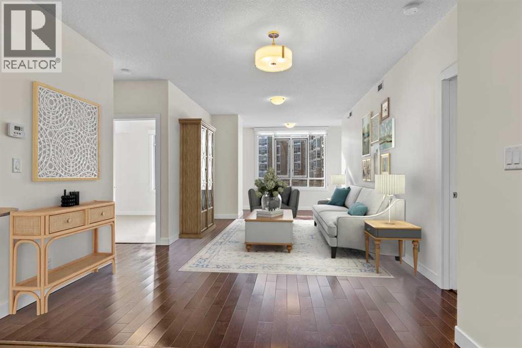 Welcome to The Groves of Varsity, where solid concrete construction, polished common areas, and standout amenities come together in one of northwest Calgary’s most established communities.This 2-bedroom, 2-bathroom condo offers 993.37 square feet of thoughtfully planned living space with a bright, comfortable layout and a clean, move-in-ready feel. The entire unit has been freshly painted, giving the home a crisp, refreshed look. The kitchen blends function and style with dark full-height cabinetry, stone countertops, stainless steel appliances, a tile backsplash, and a raised eating bar that connects easily to the dining area.Beyond that, the spacious living room offers plenty of flexibility for furniture placement, rich dark flooring, and large windows that fill the space with natural light while framing an open outlook over the surrounding trees. The layout feels practical and well balanced, with defined rooms, a welcoming foyer, and smart separation between the main living areas and the bedrooms.The primary bedroom is generously sized and features a true 5-piece ensuite with a double vanity, soaker tub, and separate glass shower. The second bedroom sits near a full 4-piece bathroom, which works well for guests, roommates, or a home office setup.In-suite laundry adds everyday convenience, while the included underground parking stall and separate storage locker make day-to-day living even easier.Residents of The Groves of Varsity also enjoy access to impressive amenities, including a fitness room, stylish lobby, social lounge, outdoor terrace, and beautifully landscaped courtyard spaces.Set in Varsity, this home puts you in a well-established northwest Calgary neighbourhood known for its mature setting and excellent access to major routes like Crowchild Trail and 32 Avenue NW. The community sits next to the University of Calgary, includes Market Mall within Varsity Village, and offers access to green space like Bowmont Natural Park, along with nearby C -Train service.Well appointed and well located, this condo offers comfort, convenience, and access to a full-service complex in one of Calgary’s most desirable established communities. Book your private showing today. (id:63190)