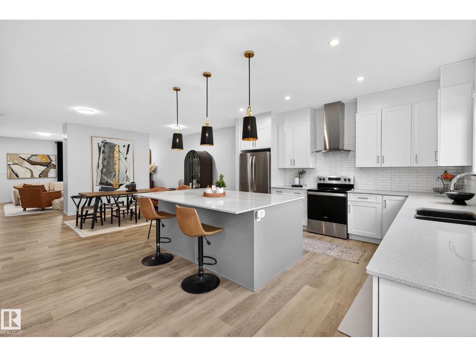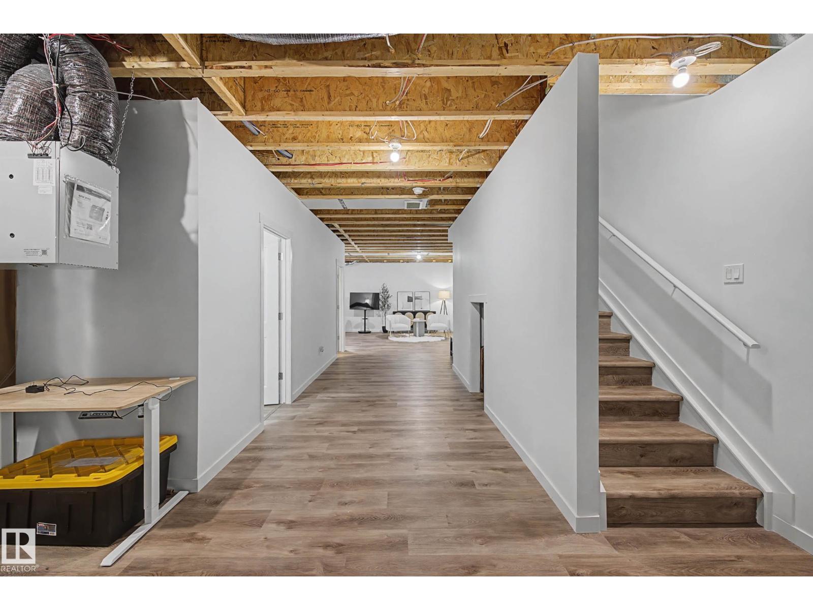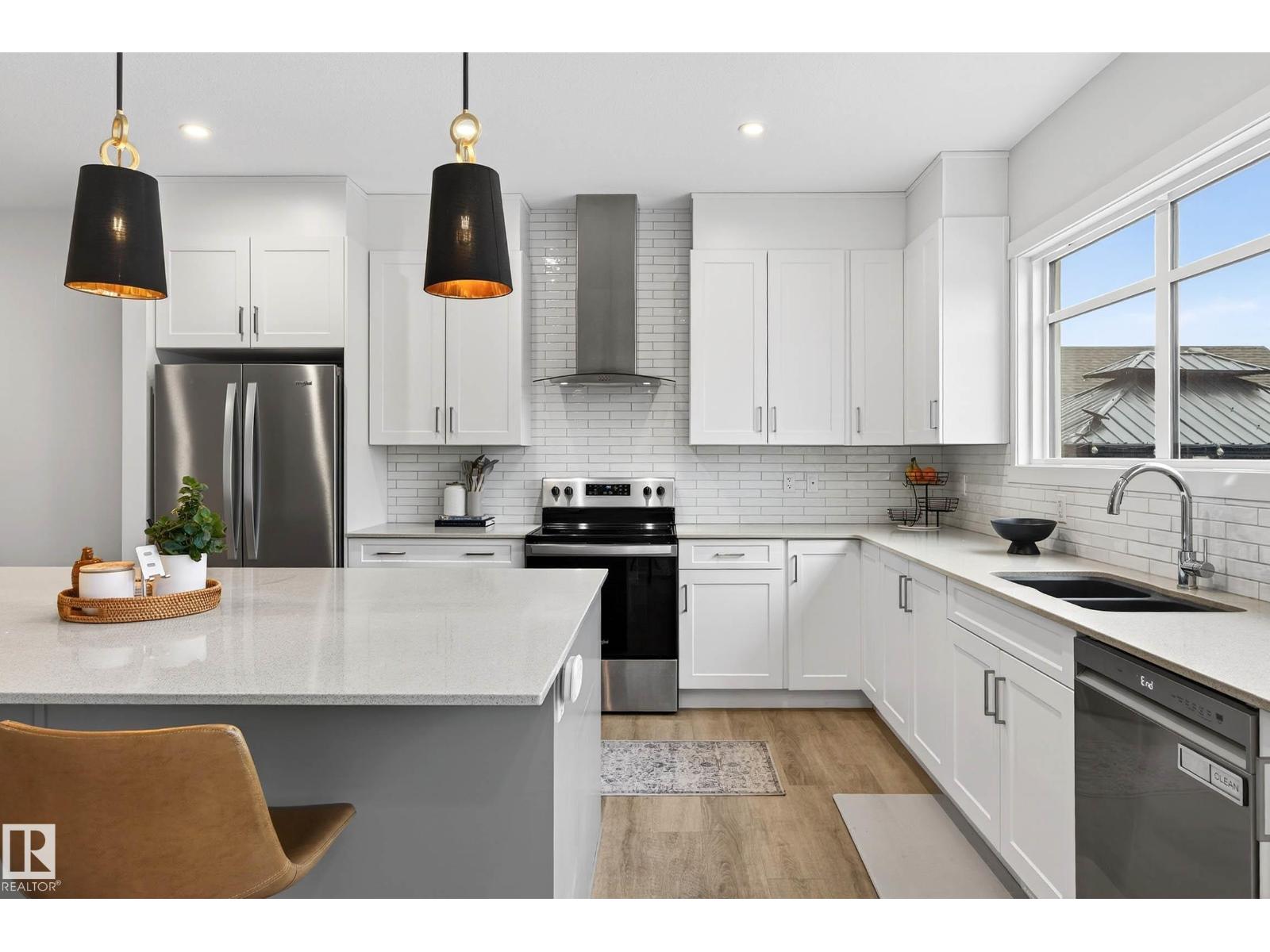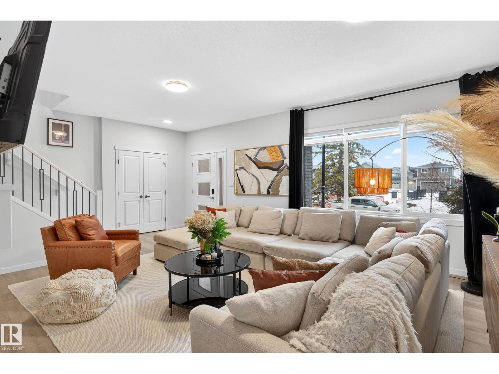 Welcome to this 2021 Coventry build in the award-winning community of Griesbach. This 2-storey home offers over 3,275 sq ft of total living space, 4 bedrooms, 3.5 bathrooms, a side entrance & upper bonus room. The partially finished basement is almost suite-ready with kitchen & laundry plumbing roughed in, plus a built-out bedroom, bathroom & living area, ideal as a mortgage helper or additional family space. The kitchen features a massive island with quartz countertops, plenty of cabinet space & SS appliances. The kitchen & living room are separated by a fireplace, providing an open-concept flow while adding privacy. Upstairs, the primary suite offers a 5pc ensuite & walk-in closet with direct access to the laundry room, plus 2 other bedrooms, a 4pc bath & bonus room. Additional features include a double detached garage, 9-ft basement walls, professional landscaping, composite deck & fully fenced south-facing backyard. Griesbach offers parks, trails, shopping, schools, transit & easy commute access. (id:63190)