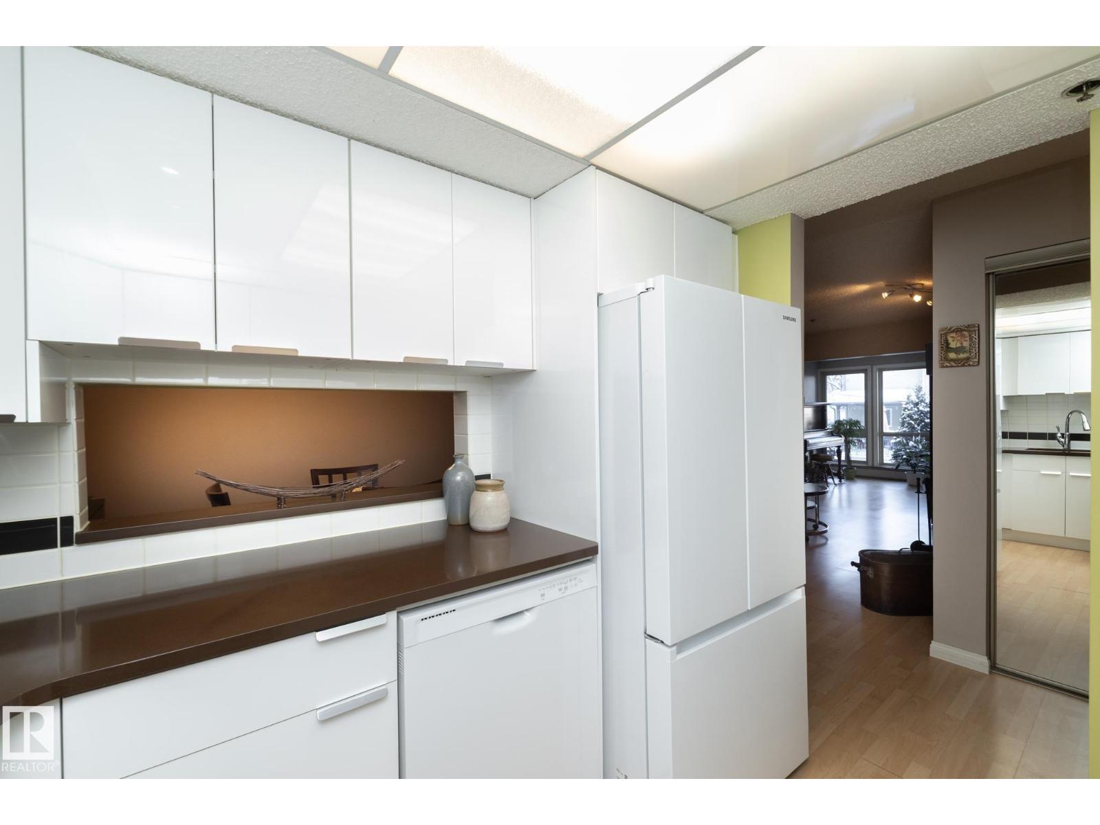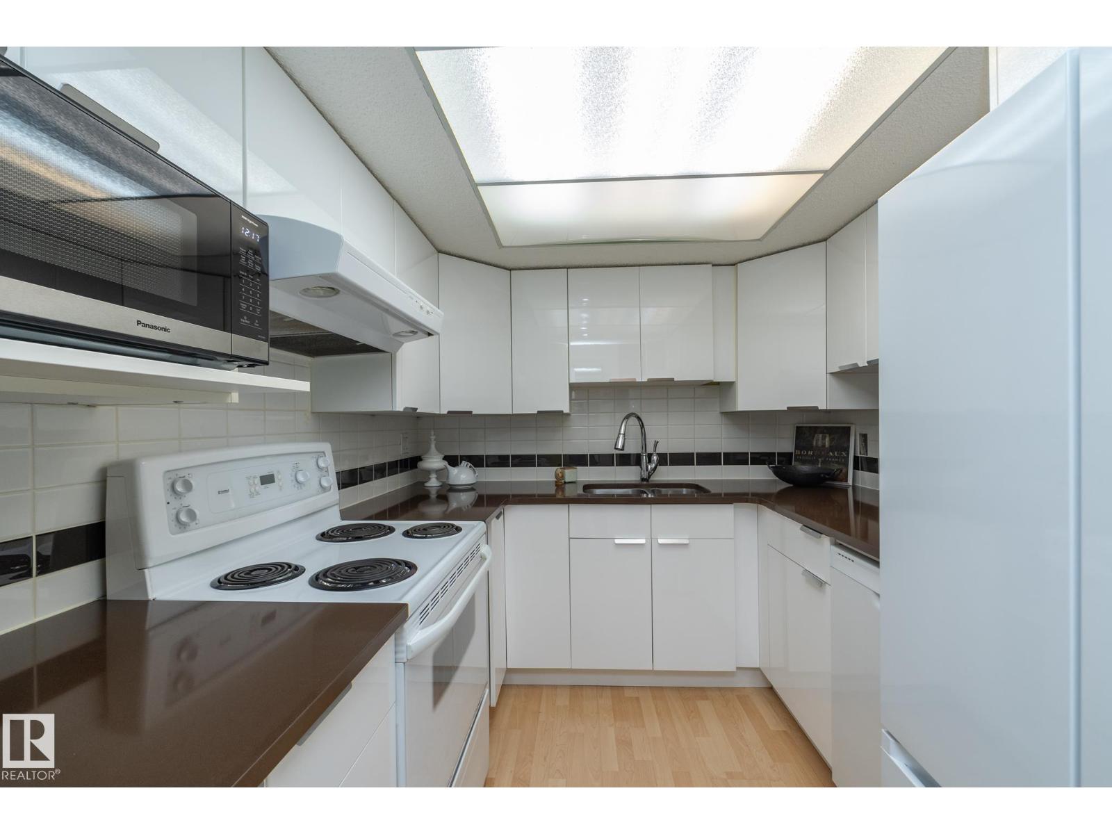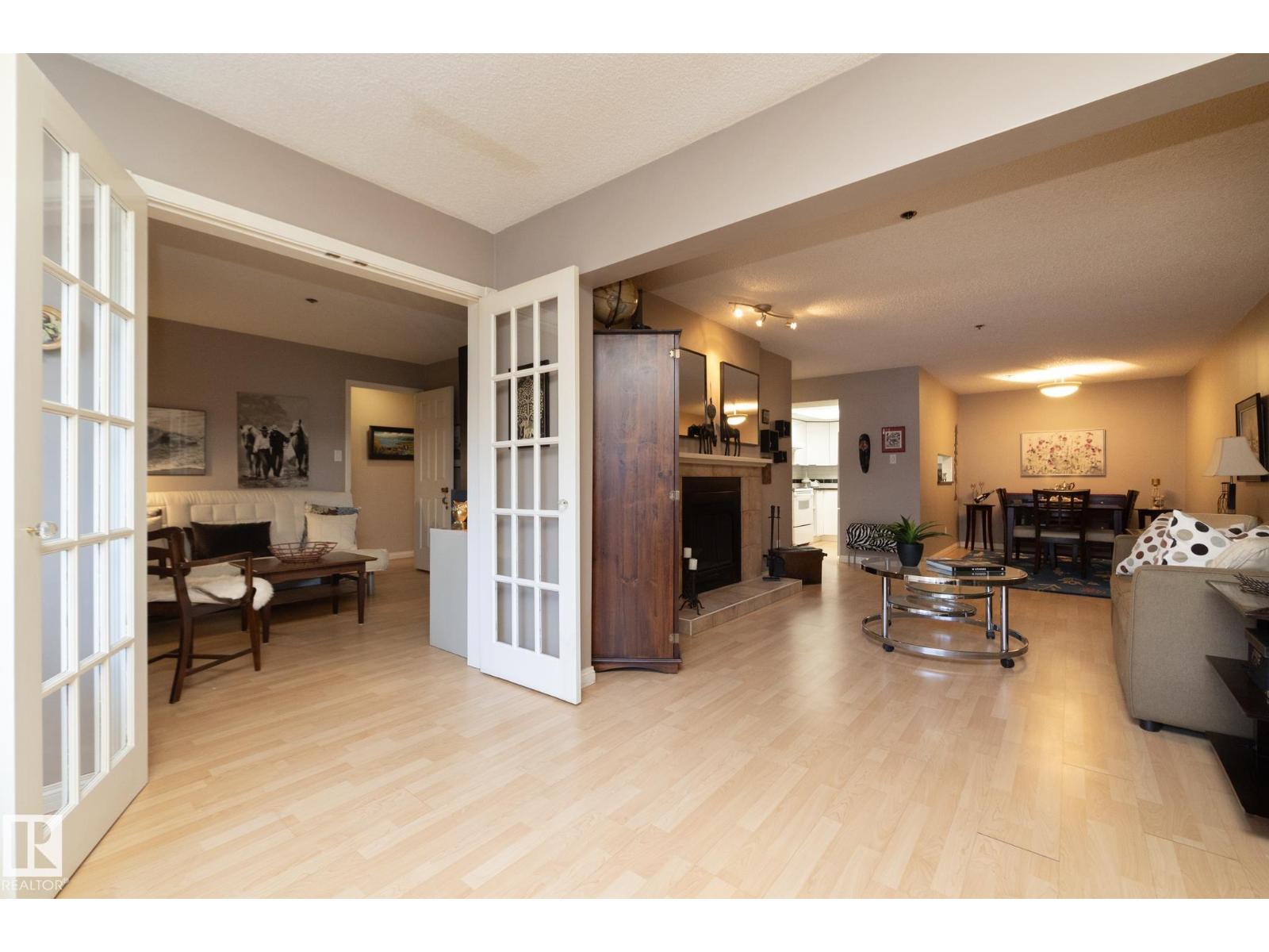 Upgraded and Attractive, 1,179 Sq Ft Two Bedroom, Two full bath condo on a quiet tree lined street just one block north of Earl's Restaurant at 119 Street & Jasper Ave. This ideal location is within walking distance to a wide range of amenities. Various educational institutions are also in the area and accessible by public transit. The floor plan is exceptional with great flow,no wasted space and all rooms generous in size. Some of the key upgrades include kitchen cabinets, counter tops, plank flooring and some newer appliances. Another nice feature not often seen in apartment style condos is the wood burning fireplace. A combination insuite laundry & storage room is well positioned just inside the front entry. Having the convenience of heated underground parking and closely situated to the elevator makes transporting goods to your suite a breeze. Show with confidence! (id:63190)